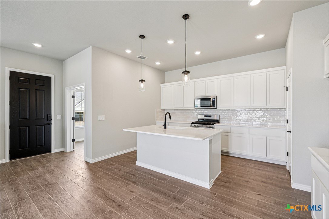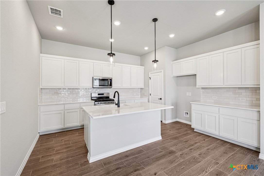 Mitchell plan with upgraded PEBBLE flooring, quartz countertops, optional study with double doors, Express cordless blinds
