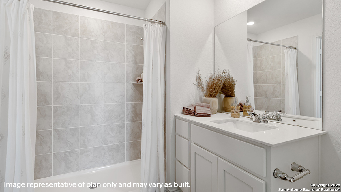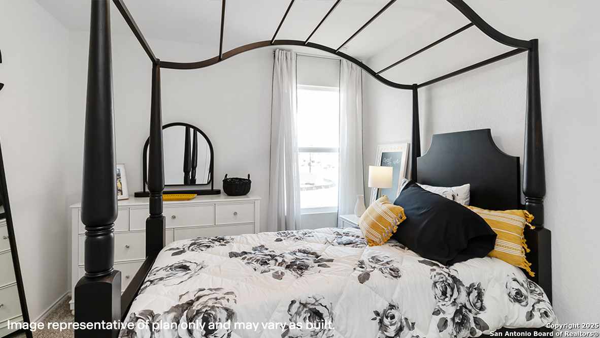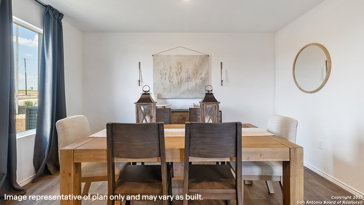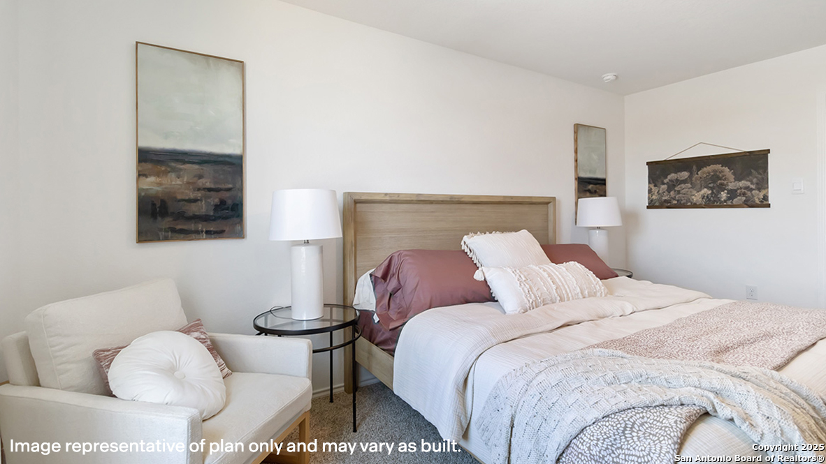 The Franklin plan is one of our two-story homes featured in Sereno Springs in Converse, TX. This new home layout offers 2 classic front exteriors, 5 bedrooms, 2.5 baths, 2 car-garage and 1891 square feet of comfortable living. Step inside The Franklin to find an elongated foyer opening to an open concept living room, kitchen, and dining area. The gourmet kitchen faces the living area so you don't miss a thing while cooking and includes quartz counter tops, stainless steel appliances and shaker style cabinetry. The main bedroom is located toward the front of the home on the second story and features an attractive attached bathroom with a walk-in shower, quartz countertops, a grand walk-in closet and plenty of storage space. The second story includes all secondary bedrooms, and two full bathrooms. You'll have carpeted floors in every bedroom and sheet vinyl flooring in your bathrooms and utility room. Additional features include sheet vinyl flooring in entry, living room, and all wet areas, quartz counter tops in all bathrooms and HOME IS CONNECTED base package. Using one central hub that talks to all the devices in your home, you can control the lights, thermostat and locks, all from your cellular device.