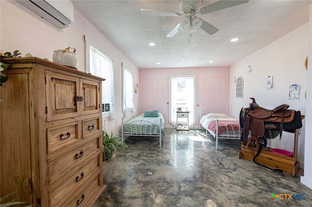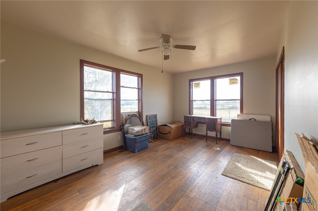 45.83+- acre property located just south of Hallettsville in the small community of Ezzell. The property consists of two homes: one a barndominium style home built in 2022 and an older home, 1970, with tremendous potential. The primary home (bardominium) is 1800 square feet (total 2850sf including loft space). The home is a 2 bedroom 2 bath home with two additional loft areas, one being currently used as a bedroom and the other a flex space with multiple uses such as a workout area, study or extra storage space. The home’s main area is an open concept between the kitchen, dining and living spaces. The kitchen boasts beautiful custom cabinetry and counter tops. Eye catching, stained concrete floors lead you throughout the lower level. The large master bedroom features a double vanity ensuite. On the opposite side of the home from the master bedroom is another large bedroom which spans the width of the home as well as a sizable utility room and common full bath. The home has two covered porches with awesome country views. The second home is a 1204 square foot, 3 bedroom 1 bath, with 1 car garage which would be a phenomenal fixer upper for anyone needing the extra space. The land is mostly open but still hosts a variety of wildlife. Best suited for grazing or hay production this property is a blank slate. The property also shares a stock tank with the neighboring property and direct access to CR 1 is being worked on by the sellers. Don’t miss out on your opportunity to own this country oasis.