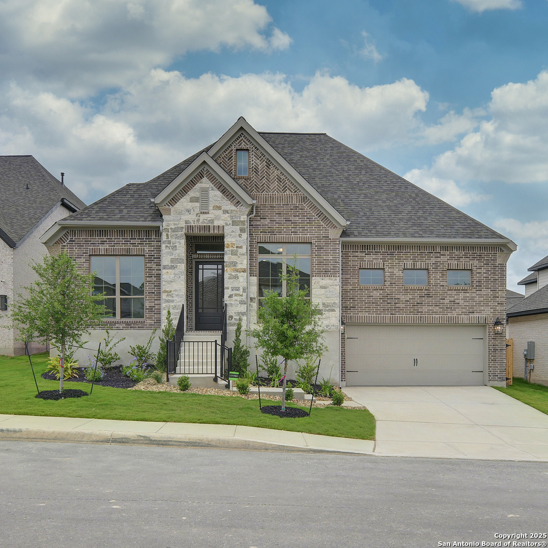 READY FOR MOVE-IN! Step off the front porch into the extended entryway with a 12-foot rotunda ceiling. Off of the main hallway are two secondary bedrooms which offer full bathrooms and walk-in closets. Adjacent is a private guest suite featuring a full bathroom, walk-in closet and linen closet. As you enter into the vast family room you are greeted by a wood mantel fireplace and a sliding glass door. French doors open into the game room which is located off of the dining area. The kitchen hosts an island with built-in seating, 5-burner gas cooktop, ample counterspace, and a walk-in pantry. The primary bedroom offers three large windows. The primary bathroom hosts dual vanities, a freestanding tub, large glass enclosed shower, and two walk-in closets. Covered backyard patio and 6-zone sprinkler system. The mud room and utility closet are off of the three-car garage.
