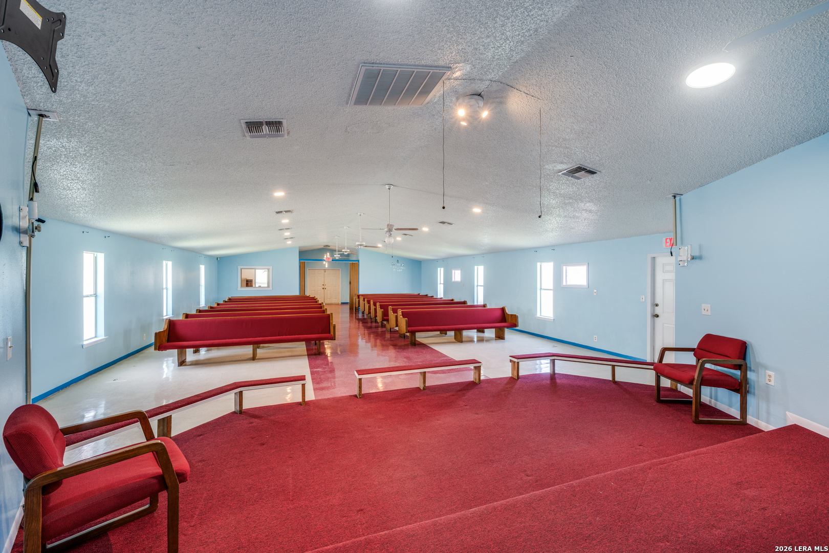 Church property located at 10311 Lee Roy Ln in Adkins, Bexar County, TX, currently operating as Iglesia Cristiana La Esposa del Cordero. This 3,680 SF, single-story building, built in 1988, sits on a 0.18-acre lot and offers a sanctuary with seating capacity for approximately 120 people. The property is available and well suited for continued religious use or community-oriented purposes. Located outside city limits (OCL), providing added flexibility with no zoning restrictions. Property Highlights Property Type: Church / religious facility Building Size: 3,680 SF (GLA) Lot Size: 0.18 acres Capacity: Approximately 120 people Year Built: 1988 Stories: 1 Occupancy: 100% Zoning: OCL (outside city limits, no zoning) Current Use: Iglesia Cristiana La Esposa del Cordero