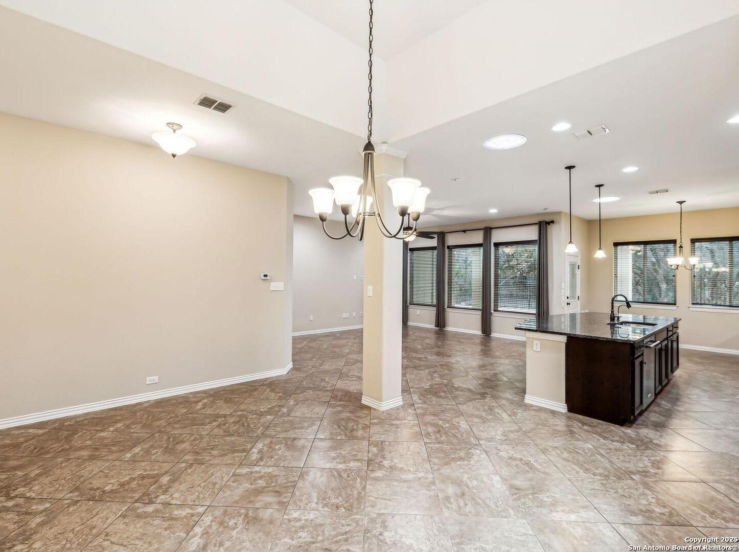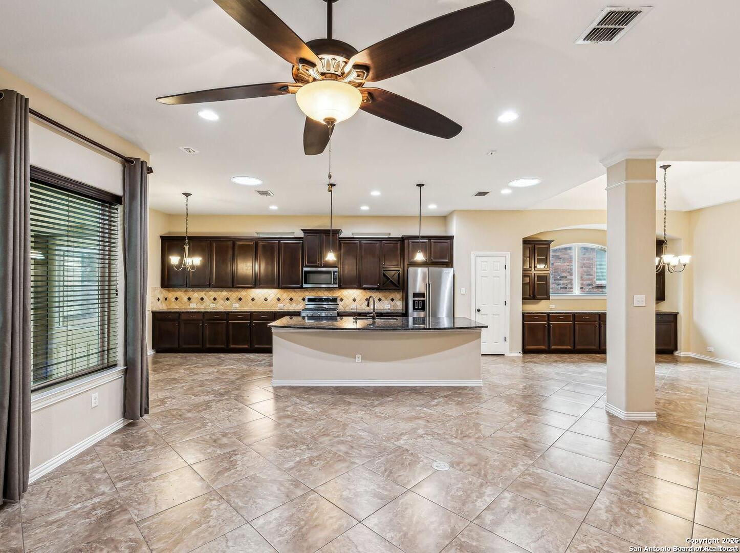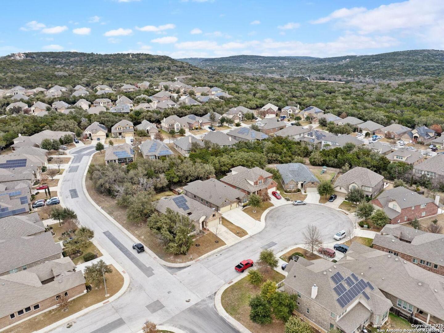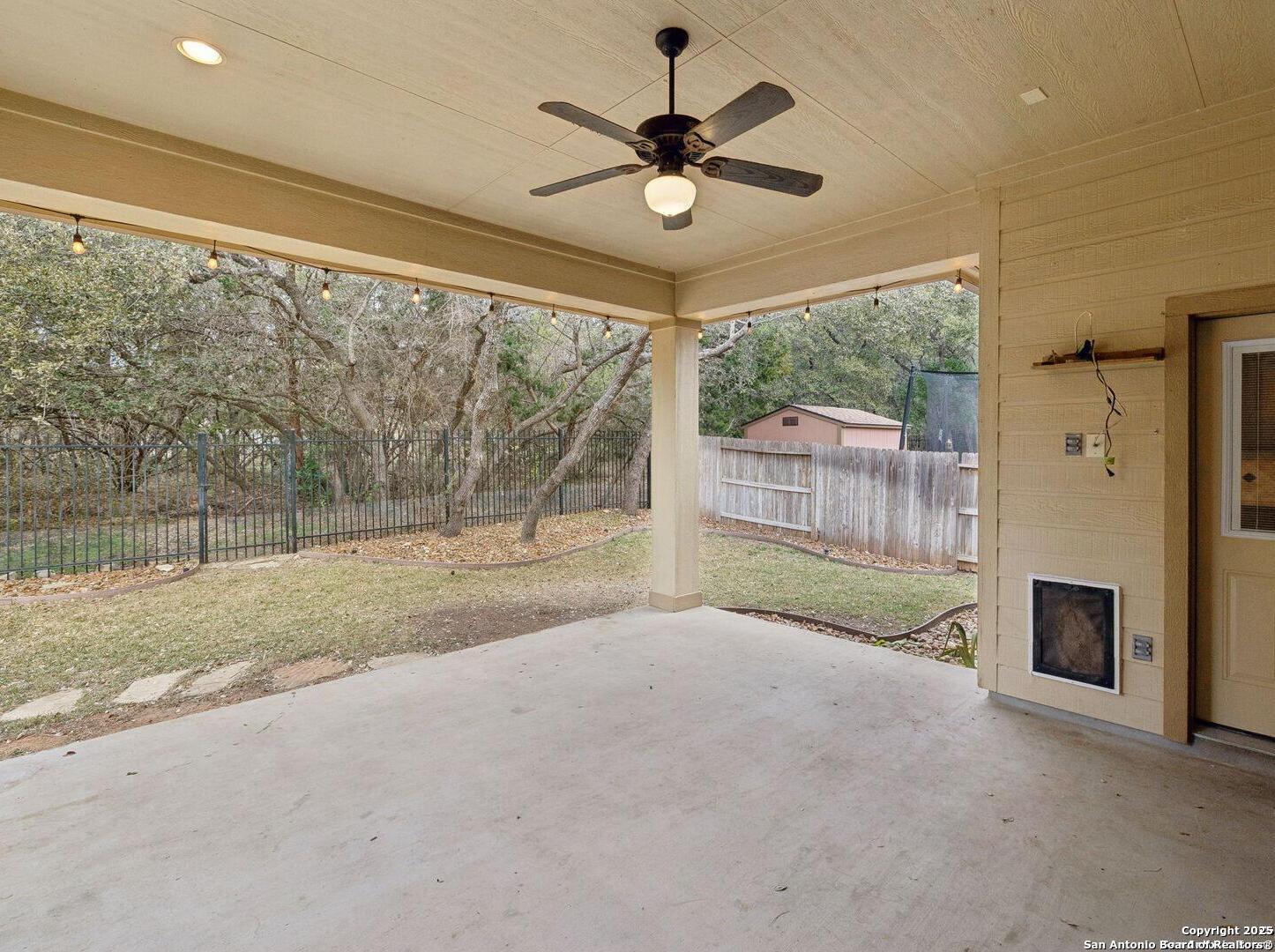 Welcome to 10315 Cima Vista, a stunning single-family home located in the desirable Triana subdivision of Helotes, TX. This exquisite property, built in 2014, offers a perfect blend of modern amenities and timeless elegance. As you step inside, you'll be greeted by a spacious and inviting living area with ceramic tile flooring and large windows that fill the space with natural light. The open-concept layout seamlessly connects the living room, dining area, and kitchen, making it ideal for both entertaining and everyday living. The entire house has been freshly painted, and the bedrooms feature brand new carpet, adding to the home's pristine condition. The kitchen is a chef's dream, featuring magnificent 42' staggered cabinets, exotic granite countertops, a gas cooktop, and a massive workspace. The kitchen also boasts brand new appliances, ensuring you have the latest and best tools for your culinary creations. The owner's retreat is a true sanctuary, accented with a bay window and a spa-like bath. The luxurious bathroom includes a garden tub, a separate shower, and a double vanity, providing a perfect place to unwind after a long day. This home boasts four spacious bedrooms and three full bathrooms, offering plenty of space for family and guests. Step outside to the large, covered patio, which backs to a greenbelt for extra privacy. The backyard is beautifully landscaped and includes a fire pit and a gas line, making it an ideal spot for outdoor gatherings and relaxation. The property also features media connections on the patio and in the family room, perfect for entertainment. Additionally, there are two sprinkler systems to keep the lawn lush and green. Additional features of this home include a recently replaced roof, a unique floor plan for the subdivision, an air exchanger unit attached to the HVAC system, and solar tube lighting. This home is extremely energy efficient, resulting in low energy bills. The property also includes a three-car garage with overhead storage and epoxy flooring, providing ample space for vehicles and storage. The property is situated on a 7,760 sq ft lot in a cul-de-sac and offers a total interior livable area of 2,689 sq ft. Located in the highly rated Northside Independent School District, this home is close to Los Reyes Elementary School, Garcia Middle School, and O'Connor High School. With its prime location, exceptional features, and beautiful design, 10315 Cima Vista is the perfect choice for your next home.