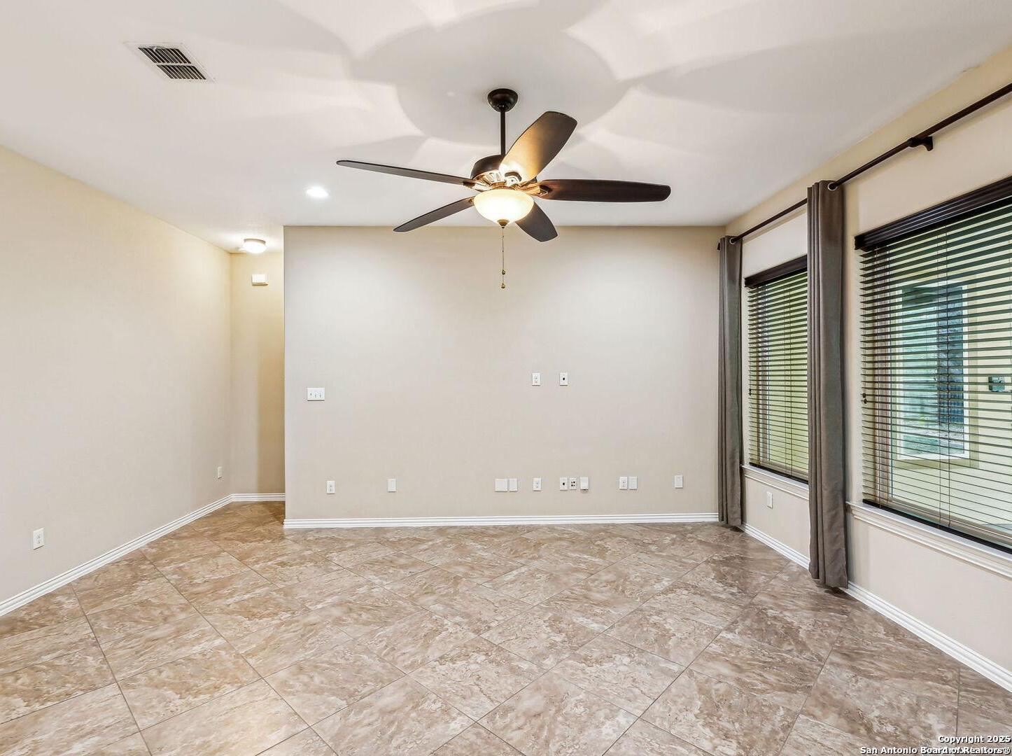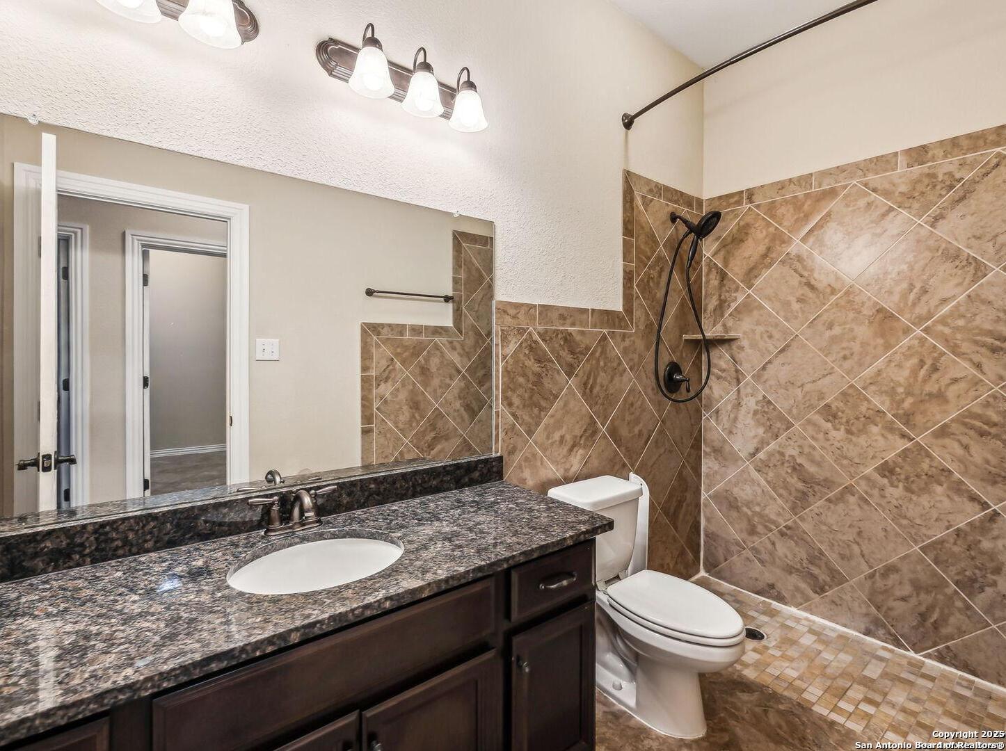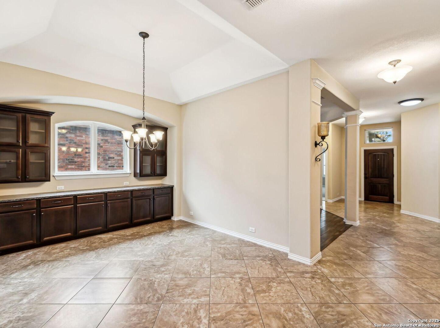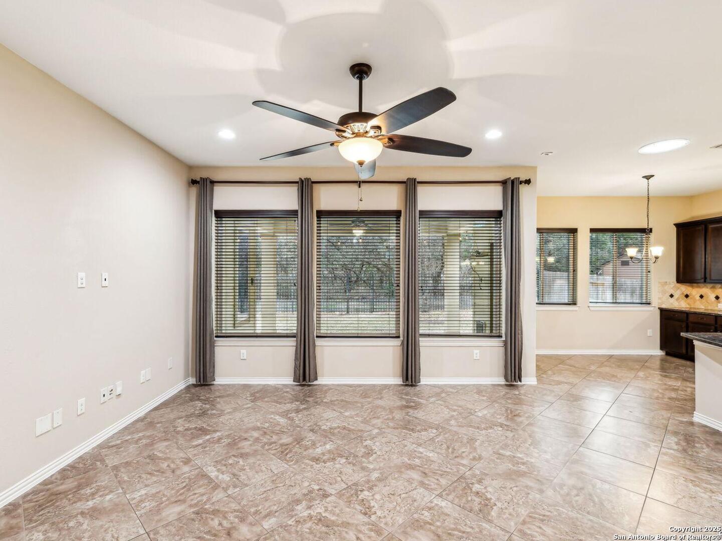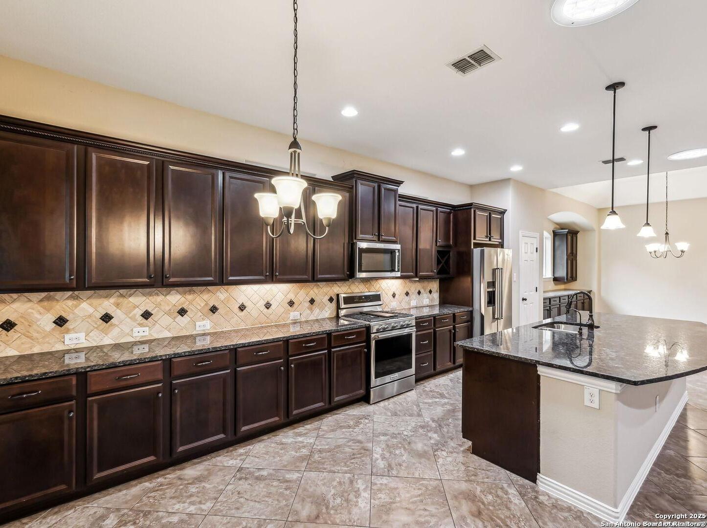 Welcome to 10315 Cima Vista, a stunning single-family home located in the desirable Triana subdivision of Helotes, TX. This exquisite property, built in 2014, offers a perfect blend of modern amenities and timeless elegance. As you step inside, you'll be greeted by a spacious and inviting living area with ceramic tile flooring and large windows that fill the space with natural light. The open-concept layout seamlessly connects the living room, dining area, and kitchen, making it ideal for both entertaining and everyday living. The entire house has been freshly painted, and the bedrooms feature brand new carpet, adding to the home's pristine condition. The kitchen is a chef's dream, featuring magnificent 42' staggered cabinets, exotic granite countertops, a gas cooktop, and a massive workspace. The kitchen also boasts brand new appliances, ensuring you have the latest and best tools for your culinary creations. The owner's retreat is a true sanctuary, accented with a bay window and a spa-like bath. The luxurious bathroom includes a garden tub, a separate shower, and a double vanity, providing a perfect place to unwind after a long day. This home boasts four spacious bedrooms and three full bathrooms, offering plenty of space for family and guests. Step outside to the large, covered patio, which backs to a greenbelt for extra privacy. The backyard is beautifully landscaped and includes a fire pit and a gas line, making it an ideal spot for outdoor gatherings and relaxation. The property also features media connections on the patio and in the family room, perfect for entertainment. Additionally, there are two sprinkler systems to keep the lawn lush and green. Additional features of this home include a recently replaced roof, a unique floor plan for the subdivision, an air exchanger unit attached to the HVAC system, and solar tube lighting. This home is extremely energy efficient, resulting in low energy bills. The property also includes a three-car garage with overhead storage and epoxy flooring, providing ample space for vehicles and storage. The property is situated on a 7,760 sq ft lot in a cul-de-sac and offers a total interior livable area of 2,689 sq ft. Located in the highly rated Northside Independent School District, this home is close to Los Reyes Elementary School, Garcia Middle School, and O'Connor High School. With its prime location, exceptional features, and beautiful design, 10315 Cima Vista is the perfect choice for your next home.