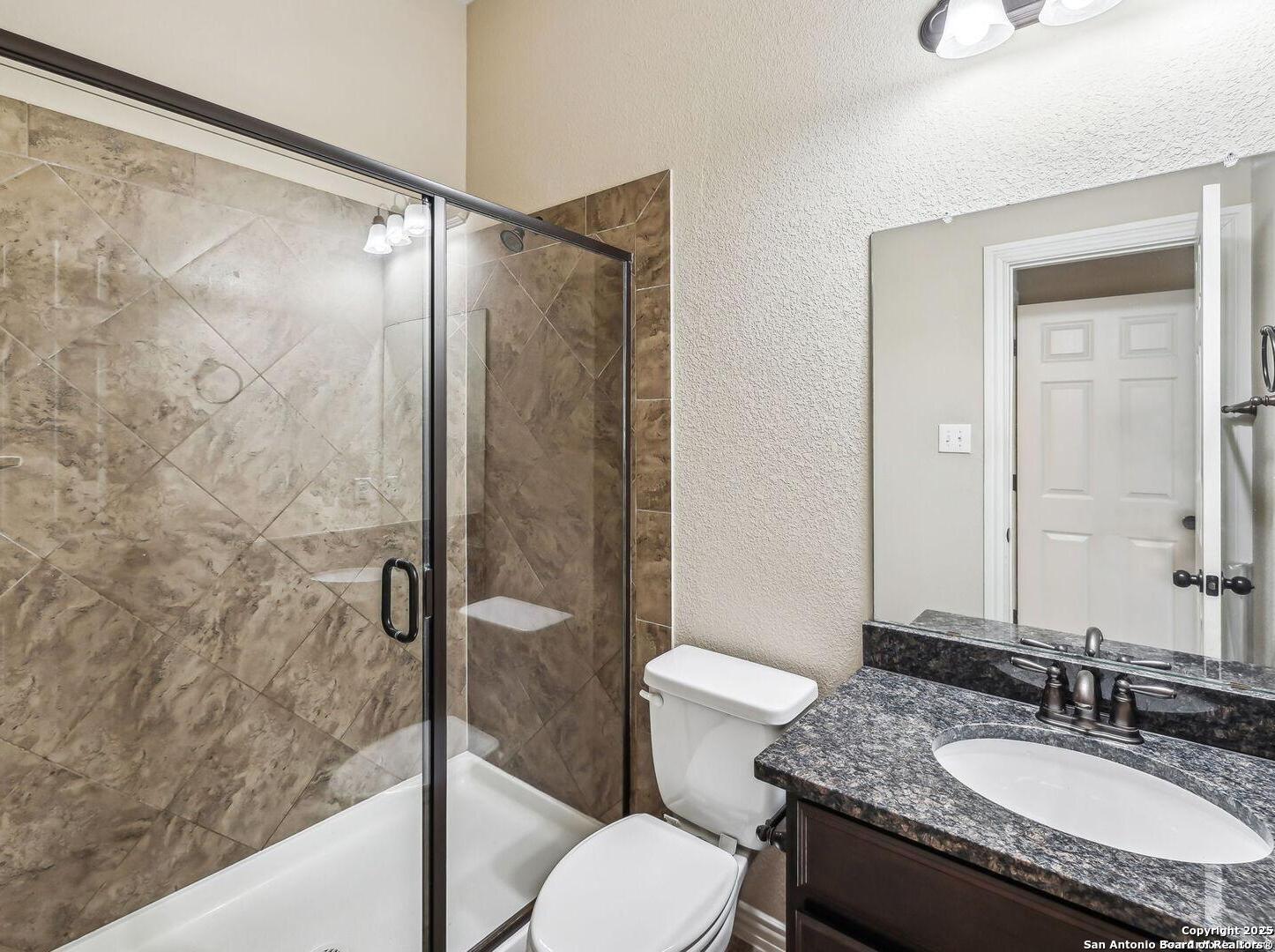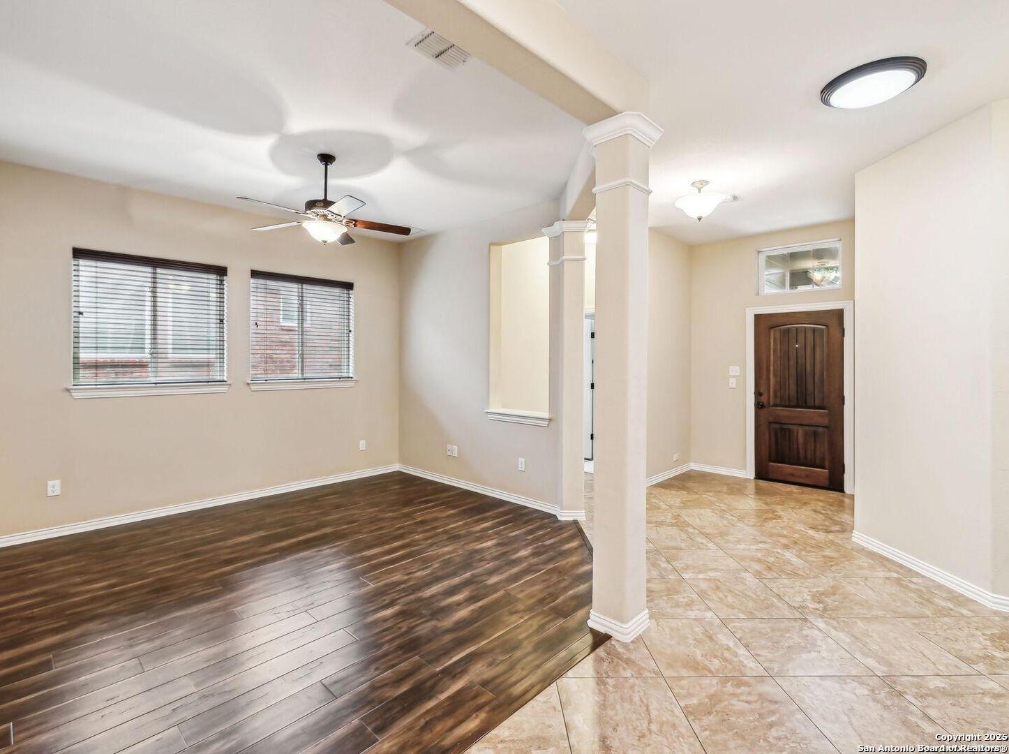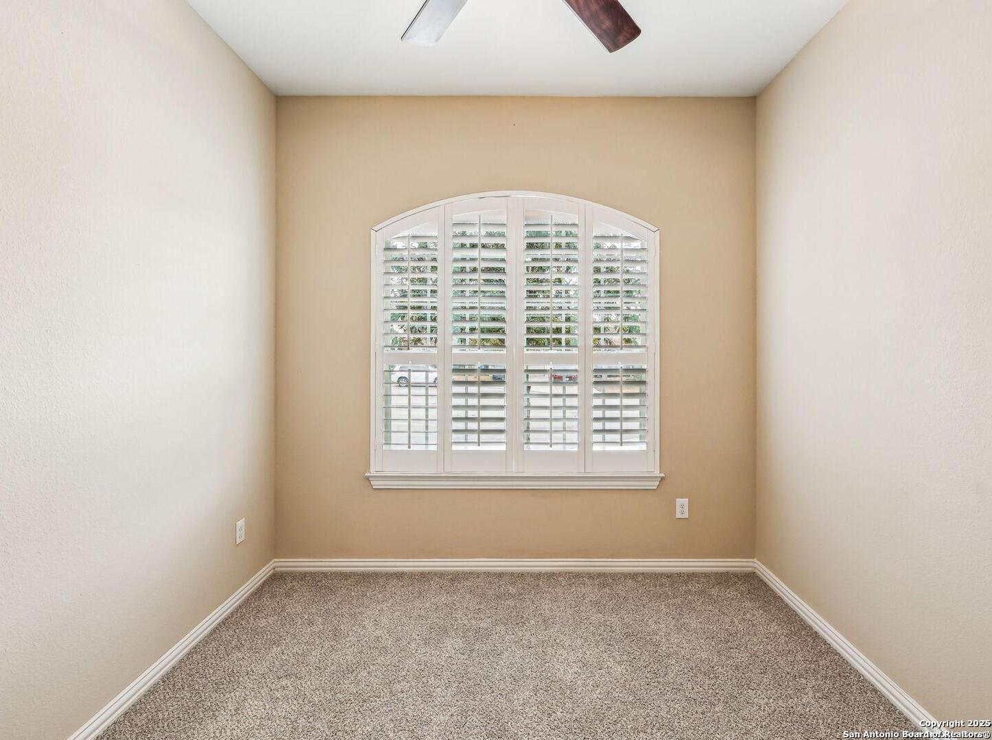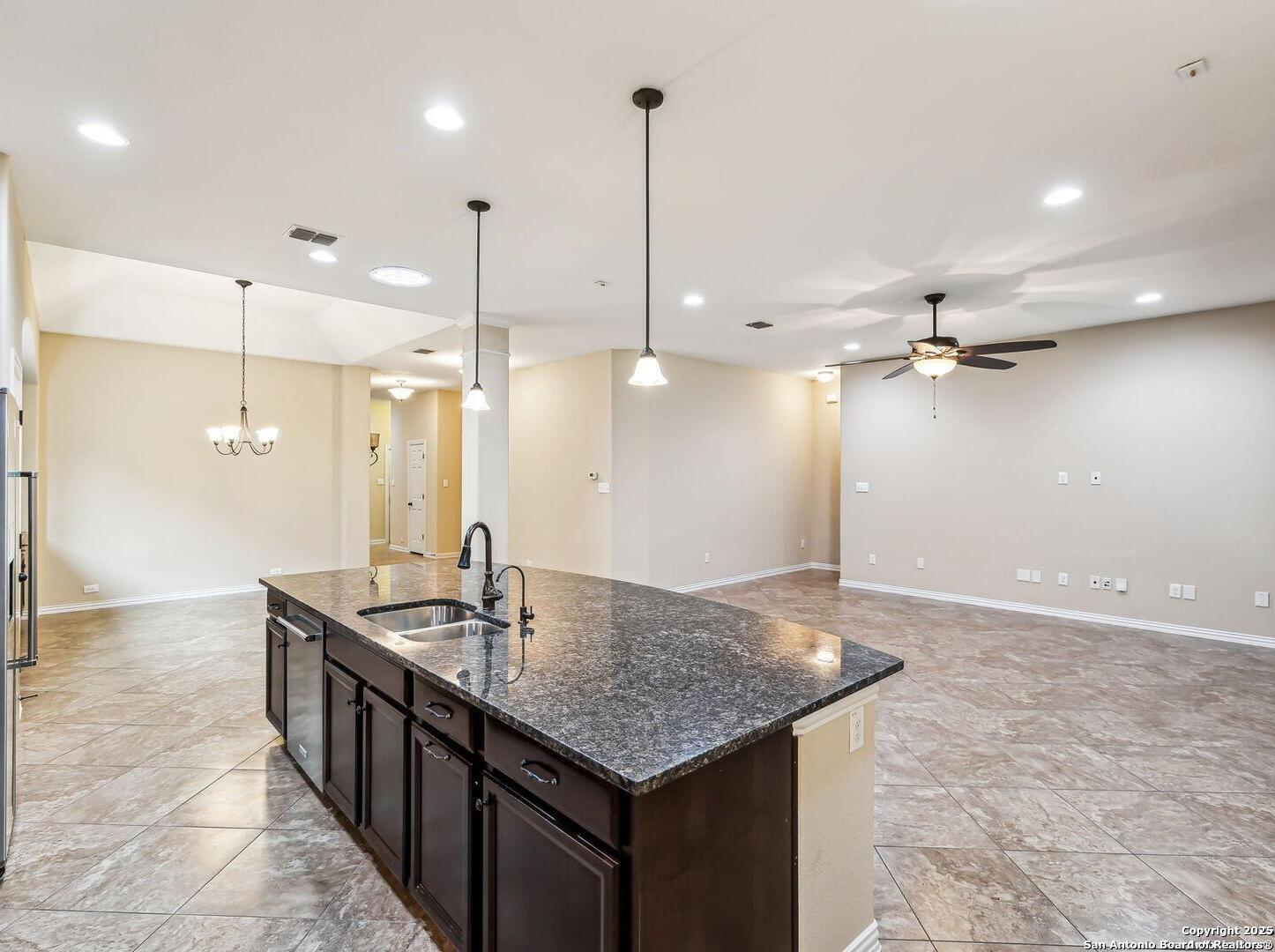 Welcome to 10315 Cima Vista, a stunning single-family home located in the desirable Triana subdivision of Helotes, TX. This exquisite property, built in 2014, offers a perfect blend of modern amenities and timeless elegance. As you step inside, you'll be greeted by a spacious and inviting living area with ceramic tile flooring and large windows that fill the space with natural light. The open-concept layout seamlessly connects the living room, dining area, and kitchen, making it ideal for both entertaining and everyday living. The entire house has been freshly painted, and the bedrooms feature brand new carpet, adding to the home's pristine condition. The kitchen is a chef's dream, featuring magnificent 42' staggered cabinets, exotic granite countertops, a gas cooktop, and a massive workspace. The kitchen also boasts brand new appliances, ensuring you have the latest and best tools for your culinary creations. The owner's retreat is a true sanctuary, accented with a bay window and a spa-like bath. The luxurious bathroom includes a garden tub, a separate shower, and a double vanity, providing a perfect place to unwind after a long day. This home boasts four spacious bedrooms and three full bathrooms, offering plenty of space for family and guests. Step outside to the large, covered patio, which backs to a greenbelt for extra privacy. The backyard is beautifully landscaped and includes a fire pit and a gas line, making it an ideal spot for outdoor gatherings and relaxation. The property also features media connections on the patio and in the family room, perfect for entertainment. Additionally, there are two sprinkler systems to keep the lawn lush and green. Additional features of this home include a recently replaced roof, a unique floor plan for the subdivision, an air exchanger unit attached to the HVAC system, and solar tube lighting. This home is extremely energy efficient, resulting in low energy bills. The property also includes a three-car garage with overhead storage and epoxy flooring, providing ample space for vehicles and storage. The property is situated on a 7,760 sq ft lot in a cul-de-sac and offers a total interior livable area of 2,689 sq ft. Located in the highly rated Northside Independent School District, this home is close to Los Reyes Elementary School, Garcia Middle School, and O'Connor High School. With its prime location, exceptional features, and beautiful design, 10315 Cima Vista is the perfect choice for your next home.