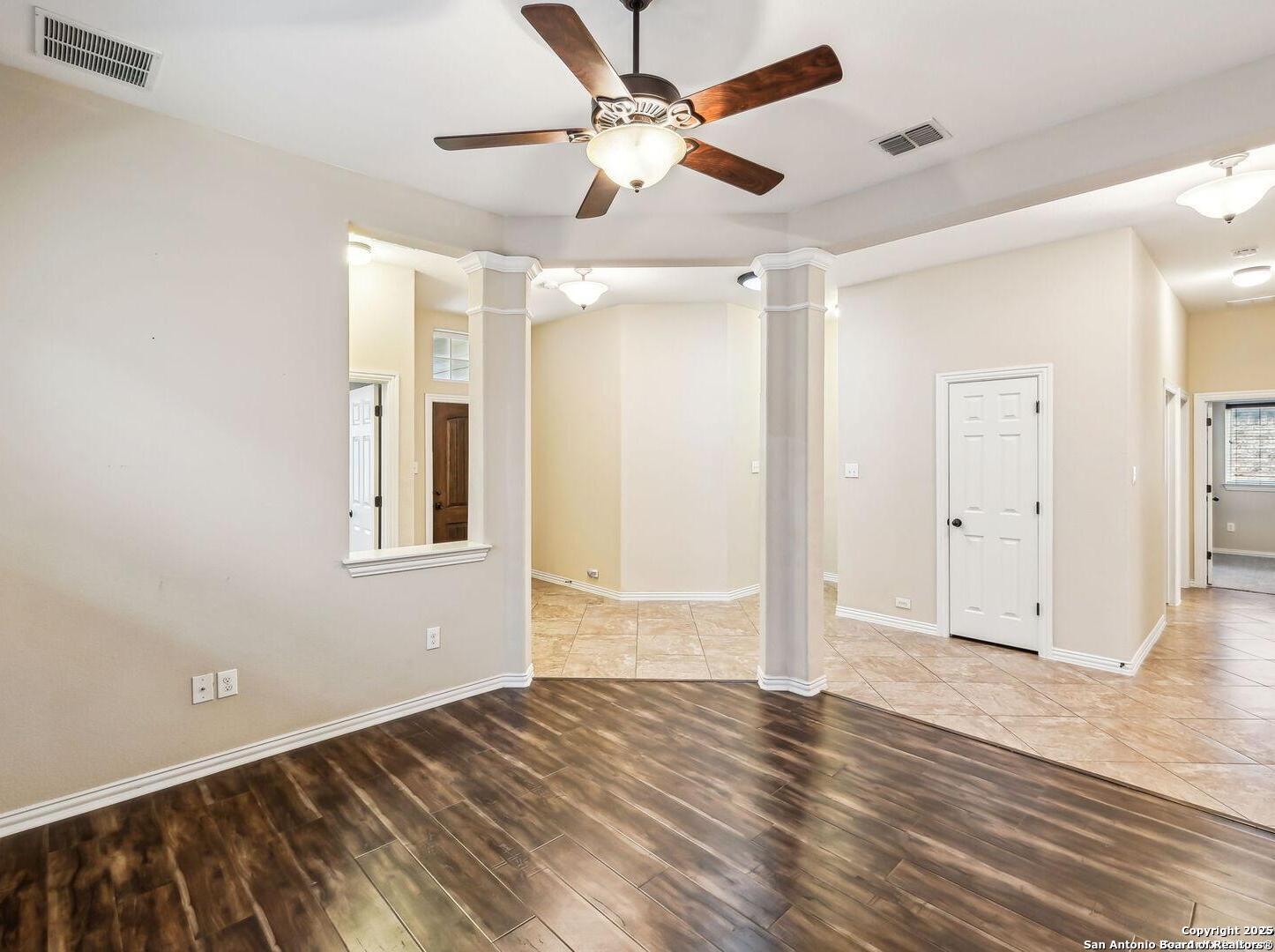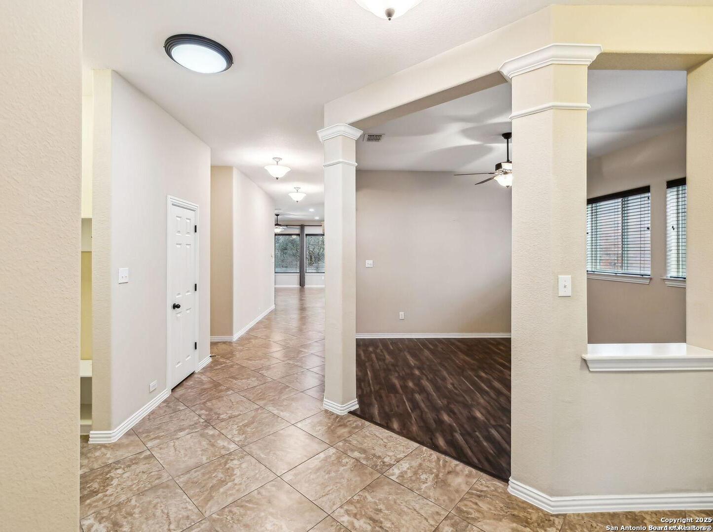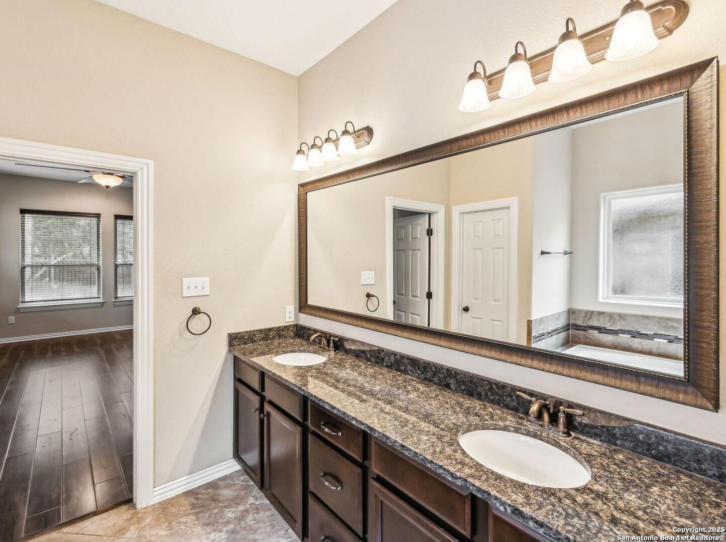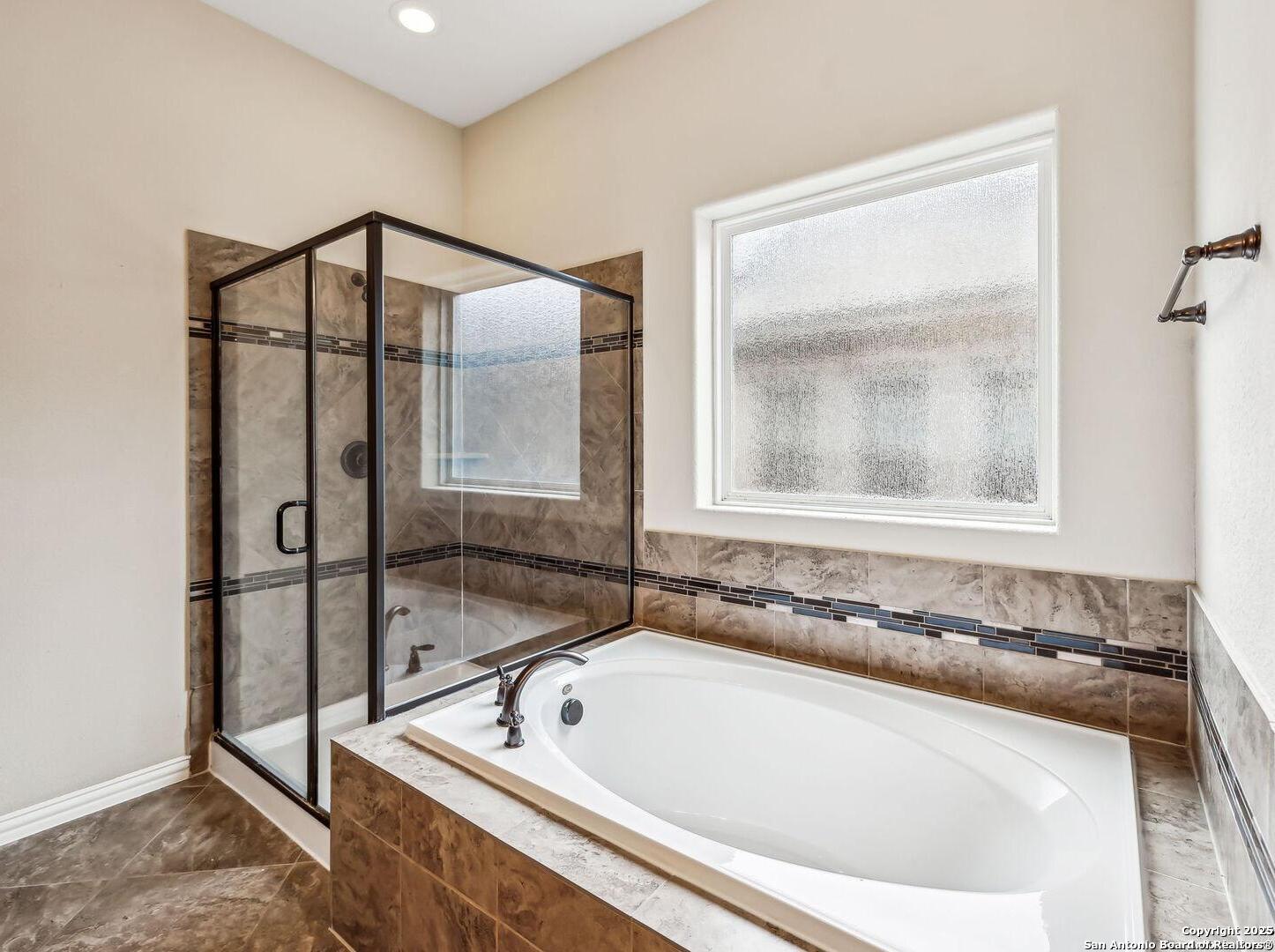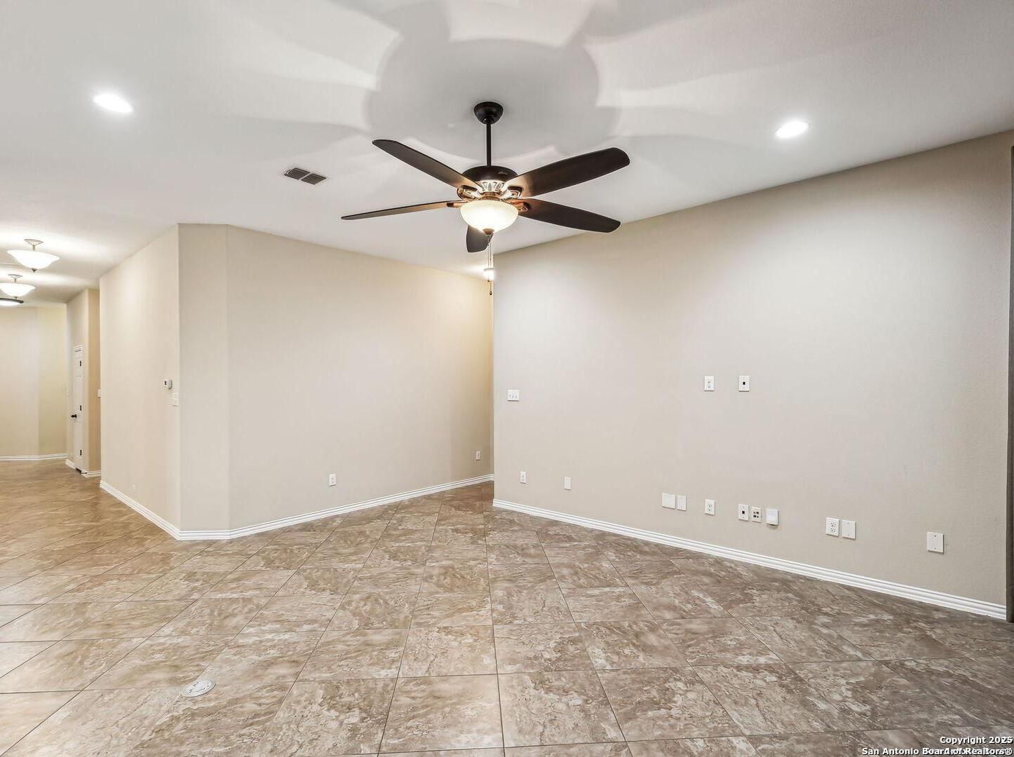 Welcome to 10315 Cima Vista, a stunning single-family home located in the desirable Triana subdivision of Helotes, TX. This exquisite property, built in 2014, offers a perfect blend of modern amenities and timeless elegance. As you step inside, you'll be greeted by a spacious and inviting living area with ceramic tile flooring and large windows that fill the space with natural light. The open-concept layout seamlessly connects the living room, dining area, and kitchen, making it ideal for both entertaining and everyday living. The entire house has been freshly painted, and the bedrooms feature brand new carpet, adding to the home's pristine condition. The kitchen is a chef's dream, featuring magnificent 42' staggered cabinets, exotic granite countertops, a gas cooktop, and a massive workspace. The kitchen also boasts brand new appliances, ensuring you have the latest and best tools for your culinary creations. The owner's retreat is a true sanctuary, accented with a bay window and a spa-like bath. The luxurious bathroom includes a garden tub, a separate shower, and a double vanity, providing a perfect place to unwind after a long day. This home boasts four spacious bedrooms and three full bathrooms, offering plenty of space for family and guests. Step outside to the large, covered patio, which backs to a greenbelt for extra privacy. The backyard is beautifully landscaped and includes a fire pit and a gas line, making it an ideal spot for outdoor gatherings and relaxation. The property also features media connections on the patio and in the family room, perfect for entertainment. Additionally, there are two sprinkler systems to keep the lawn lush and green. Additional features of this home include a recently replaced roof, a unique floor plan for the subdivision, an air exchanger unit attached to the HVAC system, and solar tube lighting. This home is extremely energy efficient, resulting in low energy bills. The property also includes a three-car garage with overhead storage and epoxy flooring, providing ample space for vehicles and storage. The property is situated on a 7,760 sq ft lot in a cul-de-sac and offers a total interior livable area of 2,689 sq ft. Located in the highly rated Northside Independent School District, this home is close to Los Reyes Elementary School, Garcia Middle School, and O'Connor High School. With its prime location, exceptional features, and beautiful design, 10315 Cima Vista is the perfect choice for your next home.
