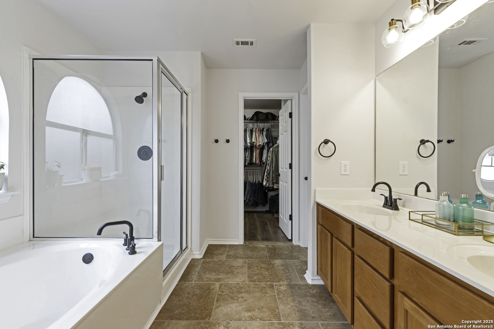 Welcome to this lovely 4-bedroom, 2.5-bathroom home offering 2,360 square feet of living space in the desirable Wildhorse community! This two-story home features an open and functional floor plan, with Main Bedrooms located downstairs for added privacy and separation from the other bedrooms. The bright and spacious eat-in kitchen serves as the heart of the home, complete with a large pantry and ample cabinet space to meet all your storage needs. Upstairs, the 3 additional bedrooms are a generous size with walk-in closets. The Loft area provides an additional space for entertaining friends and family. Enjoy the private backyard, complete with a covered patio and an extended patio as well with mature trees. Located within a short distance to neighborhood amenities, including a pool, playground, and walking paths, you'll have everything you need for relaxation and recreation right at your doorstep. Home is in the Exemplary NISD, close to shopping, dining, and major highways, this home offers easy access to everything you need. You'll love the recent updates and accents the owners have made, making this home stand out from the others. Don't miss out on making this beautiful home yours.