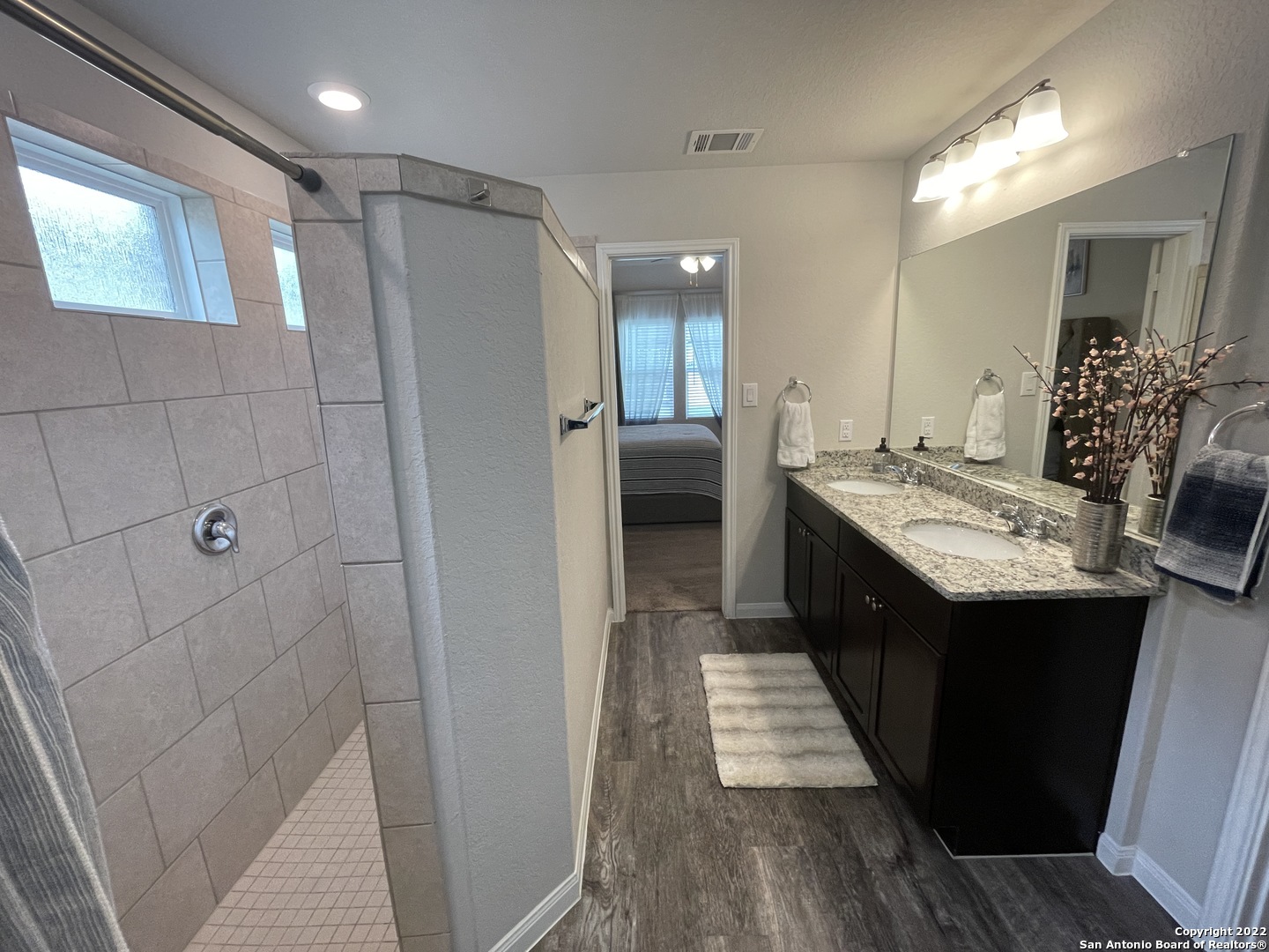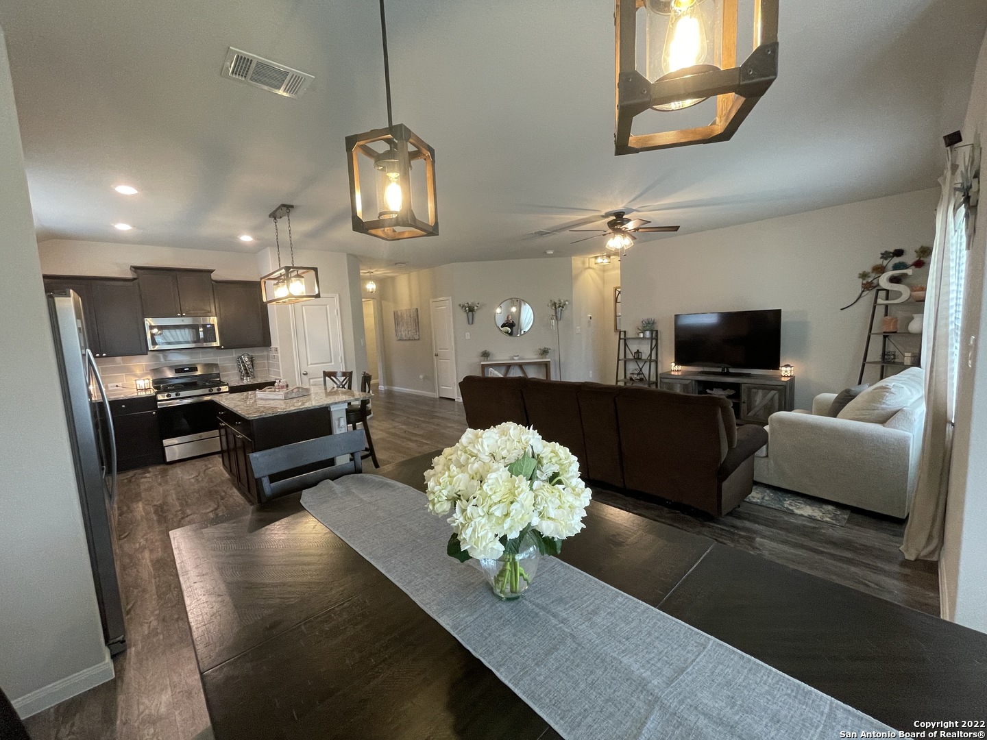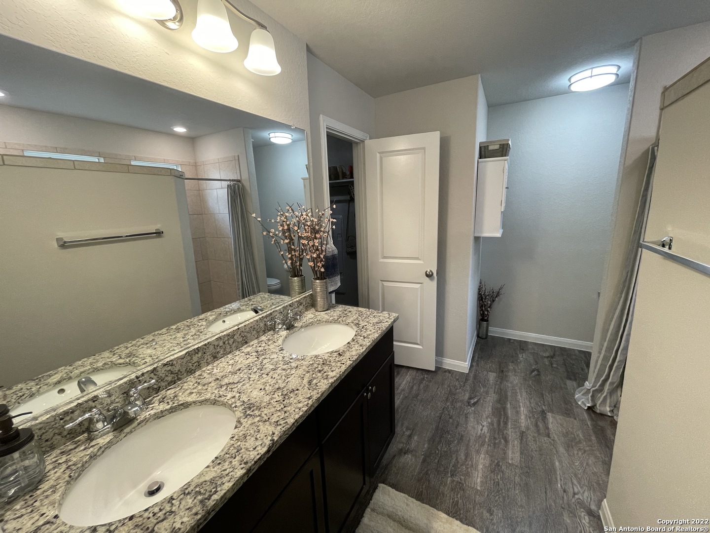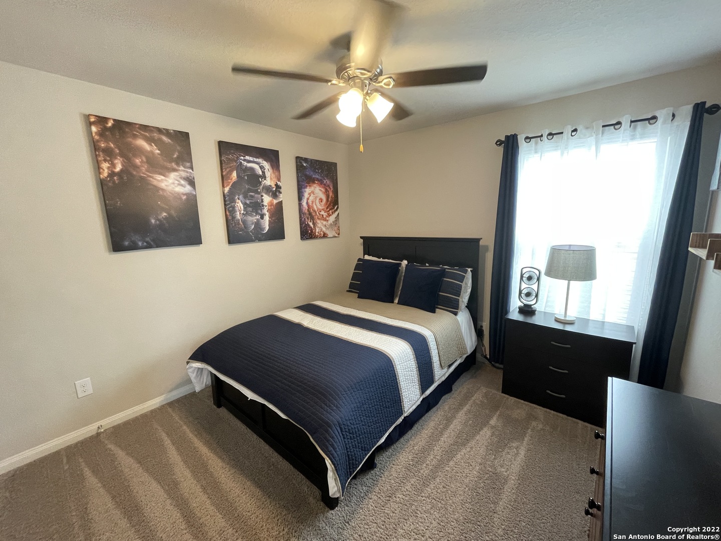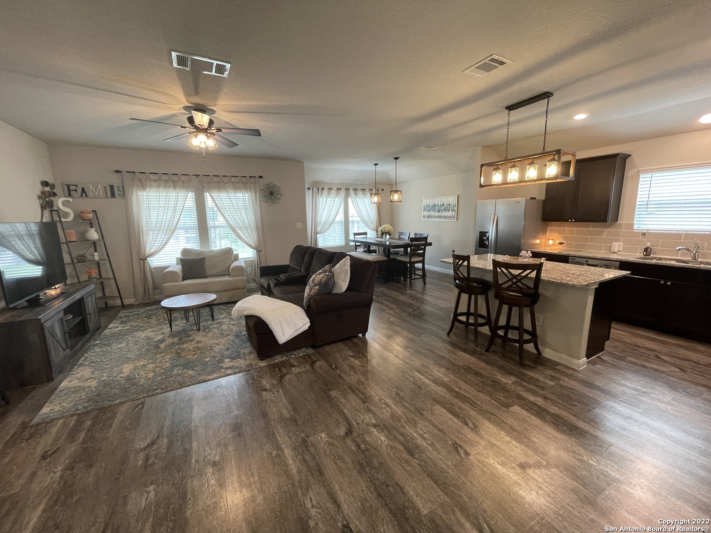 Beautiful like new single-story home located in the highly desirable, gated community of Potranco Run. This 4 bedroom, 2 bath home features an open floor plan, high ceilings, spacious living area and upgraded light fixtures throughout. The kitchen comes complete with 42" cabinets, a kitchen island, stainless steel appliances, gas cooking stove, and granite countertops. The master suite is split from the other bedrooms for privacy and boasts a large walk-in closet, walk-in shower, and double vanities. The secondary bedrooms are of ample size. This home comes equipped with a tankless water heater, sprinkler system, and pre plumbed for a water softener. The sizeable backyard features a covered patio making it ideal for gatherings with friends and loved ones. Conveniently located near schools, brand new HEB, Hwy 211, shopping, and Lackland Air Force Base. Neighborhood amenities include a pool, park/playground, and walking/jogging trails. Schedule your showing today!