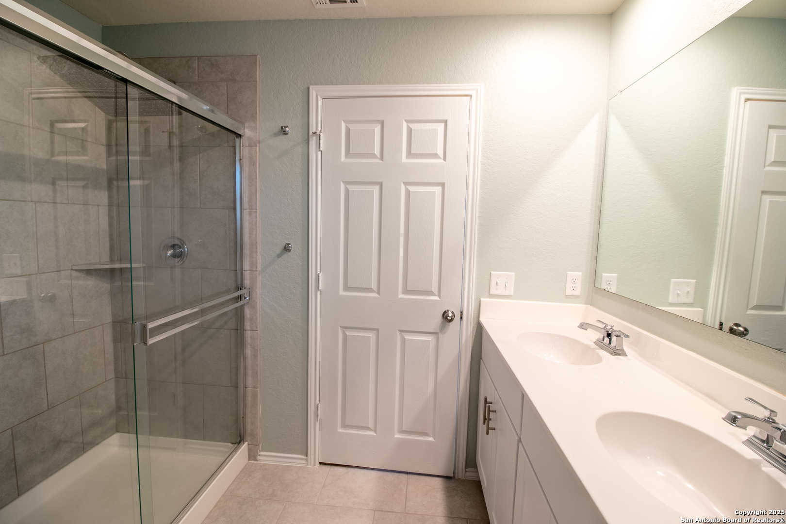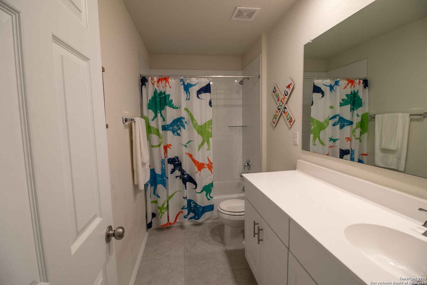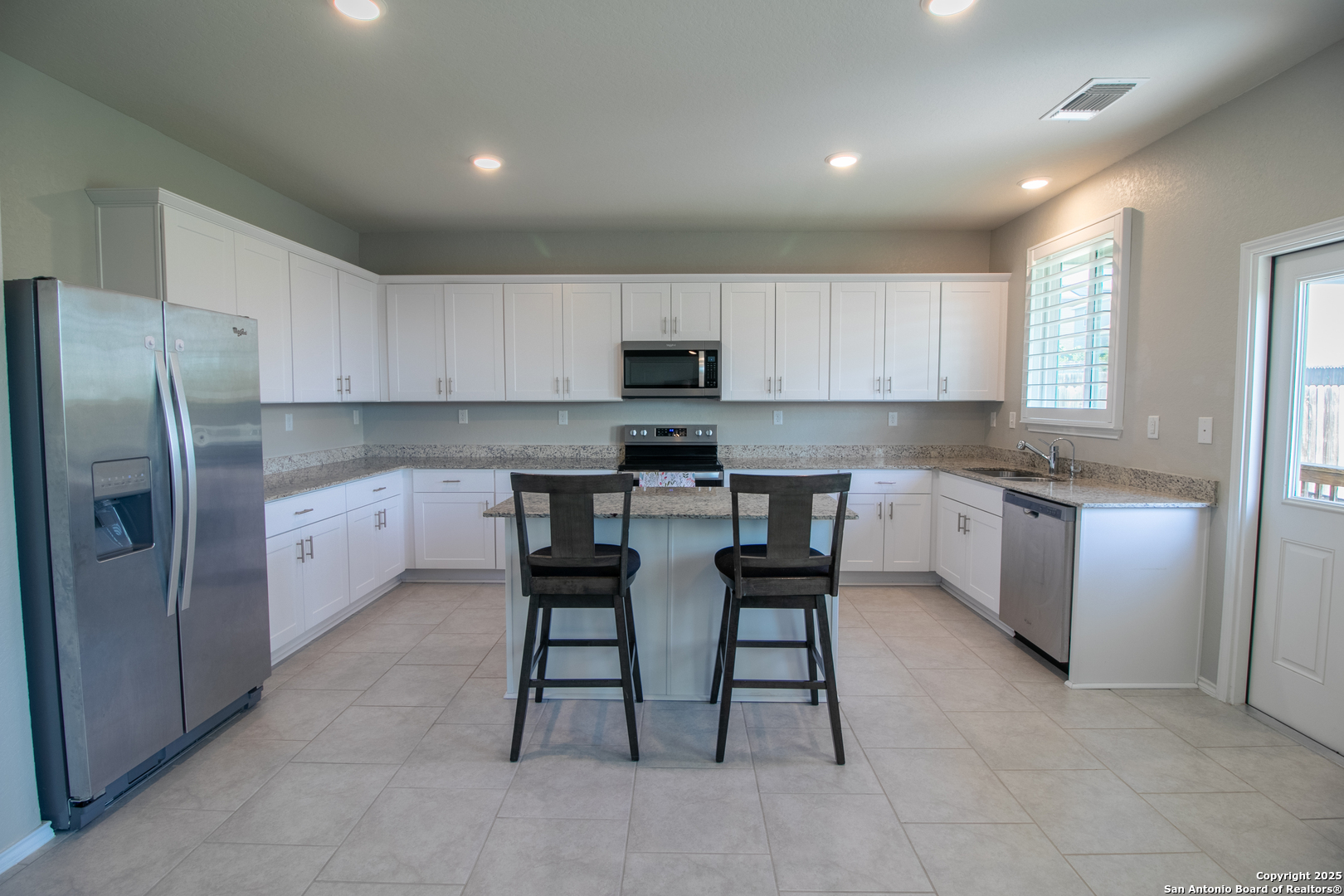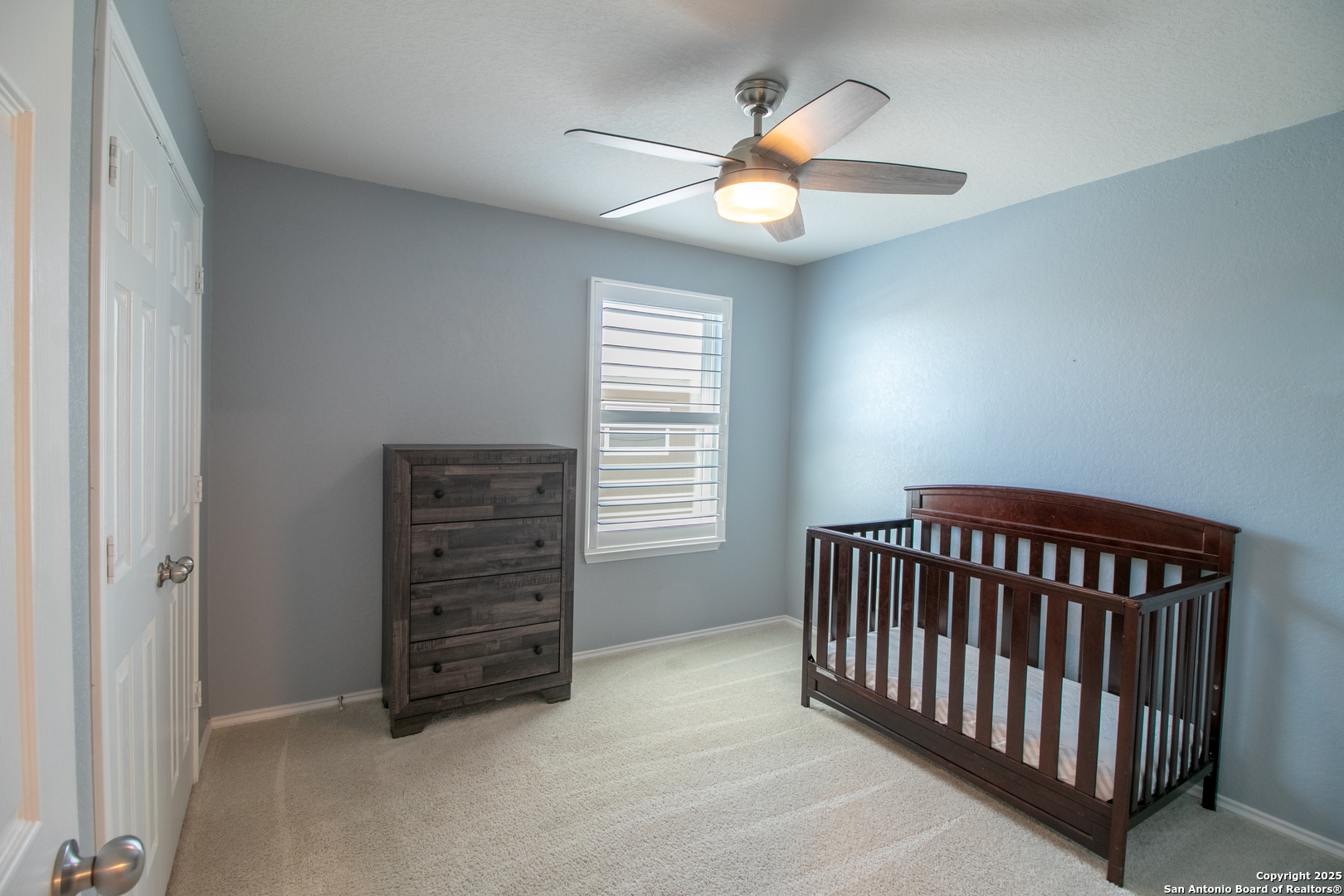 Welcome home to this beautifully maintained 4 bedroom 3 bath home located on a cul-de-sac lot at the front of the Cinco Lakes subdivision! This two story brick home has great curb appeal & fresh landscaping. The first level features an office w/french door access. You are greeted by an open floor plan that leads to the dining, family room & kitchen. Ceramic tiles throughout the main living along with attractive plantation shutters (2022)! The kitchen offers granite countertops, stainless steel appliances, reverse osmosis water filtration system (2022), plenty of cabinetry storage space & access to the back yard! First level guest bedroom w/full bath! The second level primary suite is extremely spacious, oversized walk-in shower, double vanities and walk-in closet. The second level also offers a large secondary living that could be perfect for a game room, two great sized secondary bedrooms & full bath. The backyard has a covered patio, play set and beautiful trees outlining the perimeter! Additional features include water softener (2022), 4 flat screen TVs convey, ceiling fans throughout (excluding primary), Sherman Williams paint throughout (excluding secondary bathrooms & laundry). Two car garage w/ garage door opener (2022), garage attic exhaust fan, 3 garage fans and work bench! Separate laundry room with washer and dryer! Neighborhood amenities include: Pool, Playground, Hiking Trails, Fishing at pond. Easy access to 1604, Hwy 90, & Lackland Base! 1 Dog allowed on case-by-case basis. 40lb maximum and must be older than 1 year.