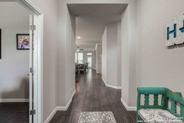 Don't miss this unique gem in New Braunfels with quick access to 35, San Antonio, Austin, and all the hill country has to offer!!! The cozy cul-de-sac lot offers a peaceful retreat in a setting with hiking trails and tons of dramatic views throughout the area!!! Come see this immaculate 6-year-old, 3-bedroom, 2-bath home that will surely fit everyone's needs. This open-concept gorgeous home has all the upgrades including an impressive gourmet kitchen with custom white cabinetry, a large island, a built-in oven, and a glass cooktop and the popular wood-looking tile. True custom design with custom cabinetry in your family room. A spacious laundry area with extra cabinets will make organizing so much easier. A beautiful wall of large windows makes this home bright!! You are sure to enjoy and relax on your covered patio overlooking the spacious backyard is perfect for entertaining. New shopping center being developed on Oak Run Parkway which includes plans for upscale shopping, dining, entertainment, river tubing, dancing, a satellite campus for Howard Payne University.