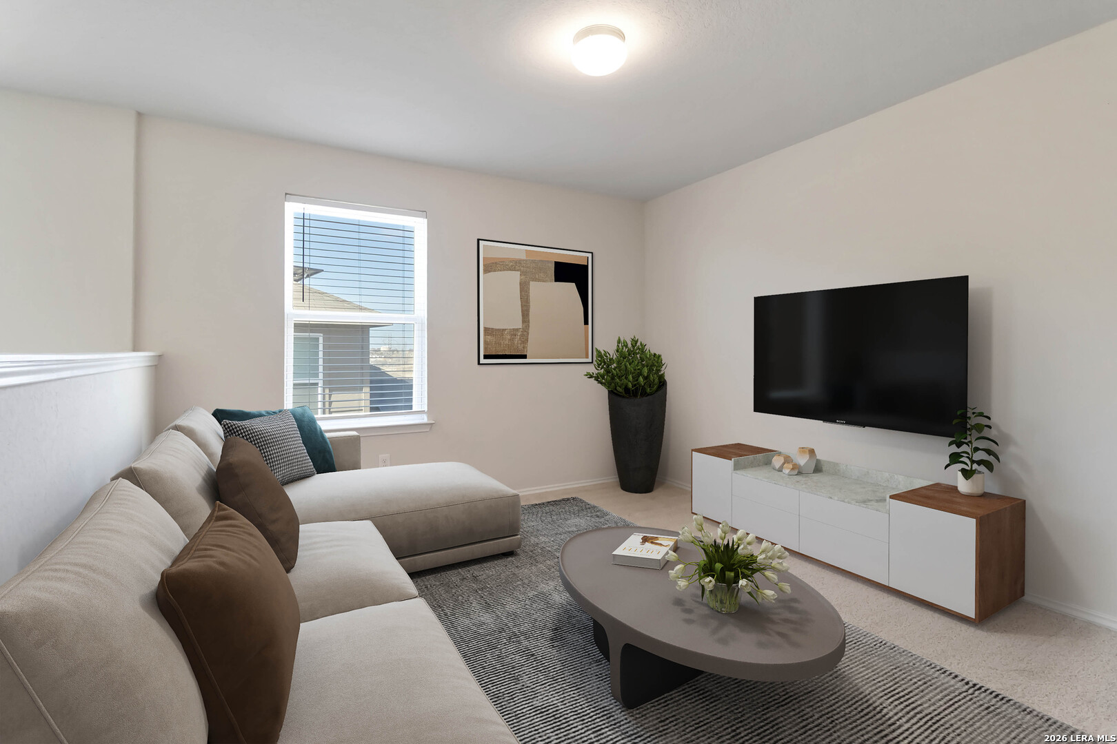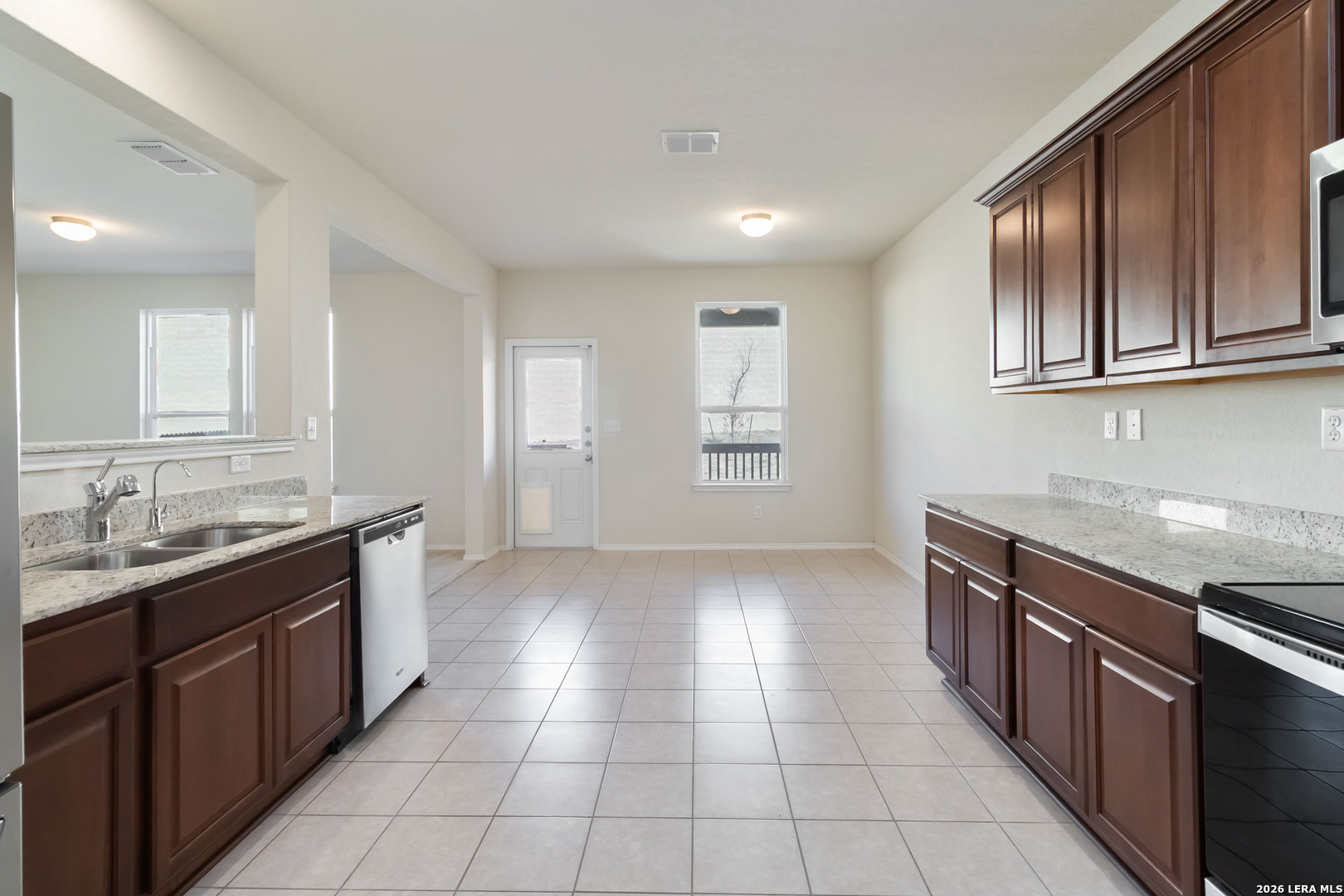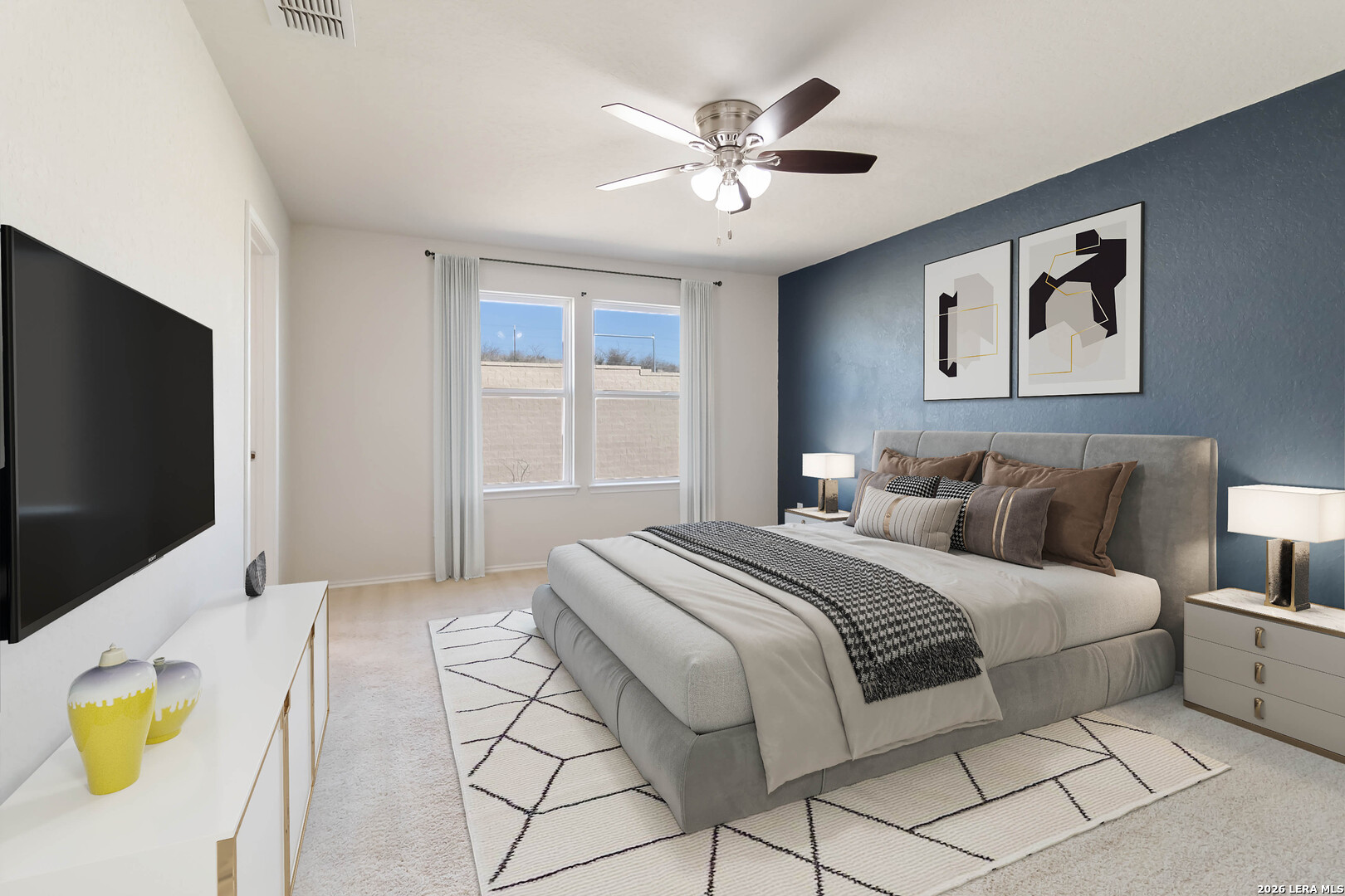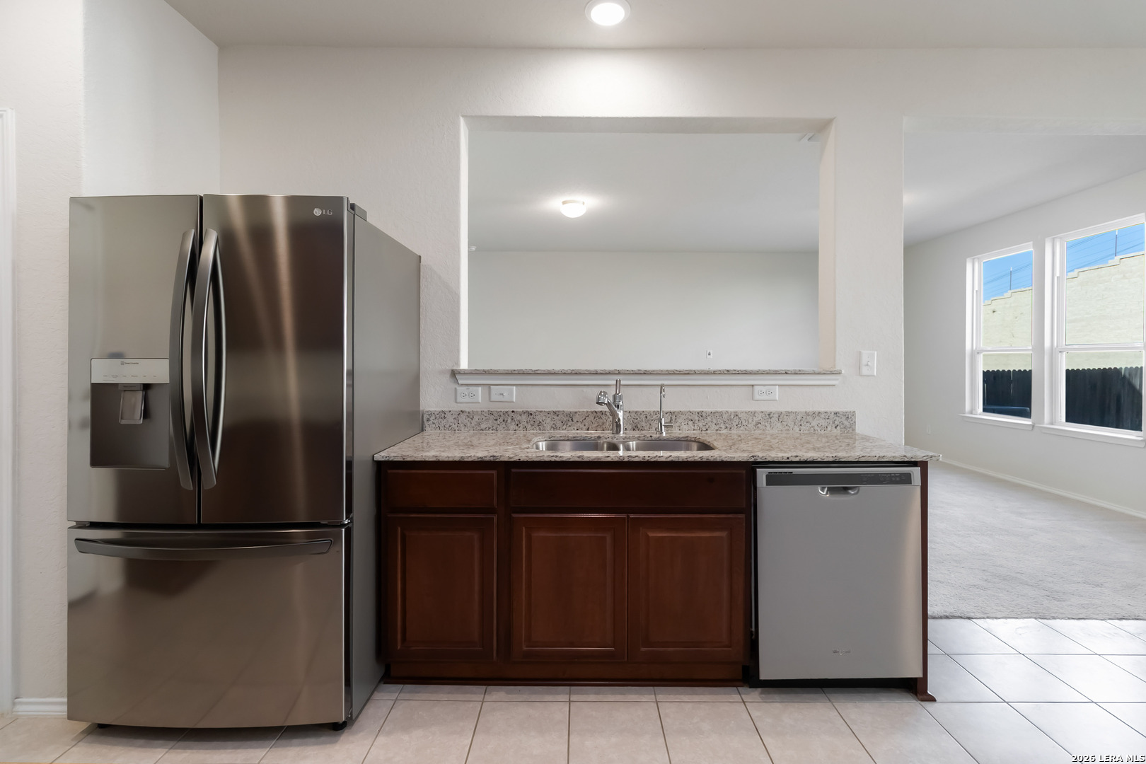Welcome to your move-in-ready oasis, a stunning two-story home nestled in the vibrant Cinco Lakes subdivision. Built in 2021, this contemporary gem offers an effortless blend of style and comfort, making it the perfect setting for modern living. Featuring 3 bedrooms and 2.5 baths, this residence is designed to cater to your every need. Step inside and be greeted by a spacious, open living area that flows seamlessly into a well-appointed kitchen. Here, you'll find an abundance of cabinets and a convenient breakfast bar, perfect for casual dining or entertaining guests. The included refrigerator, washer, and dryer make settling in a breeze. Upstairs, a bonus room awaits your personal touch, ideal as a home office or second living area, offering flexibility to suit your lifestyle. Retreat outdoors to a large backyard where a covered porch provides the perfect spot for relaxation or alfresco dining. Enjoy the benefits of community living with easy access to Loop 1604 and just minutes from Lackland AFB. The Cinco Lakes neighborhood enhances your lifestyle with fantastic amenities, including an HOA pool, park, and playground, ensuring endless opportunities for recreation and family fun. Don't miss the chance to call this extraordinary property your home sweet home!