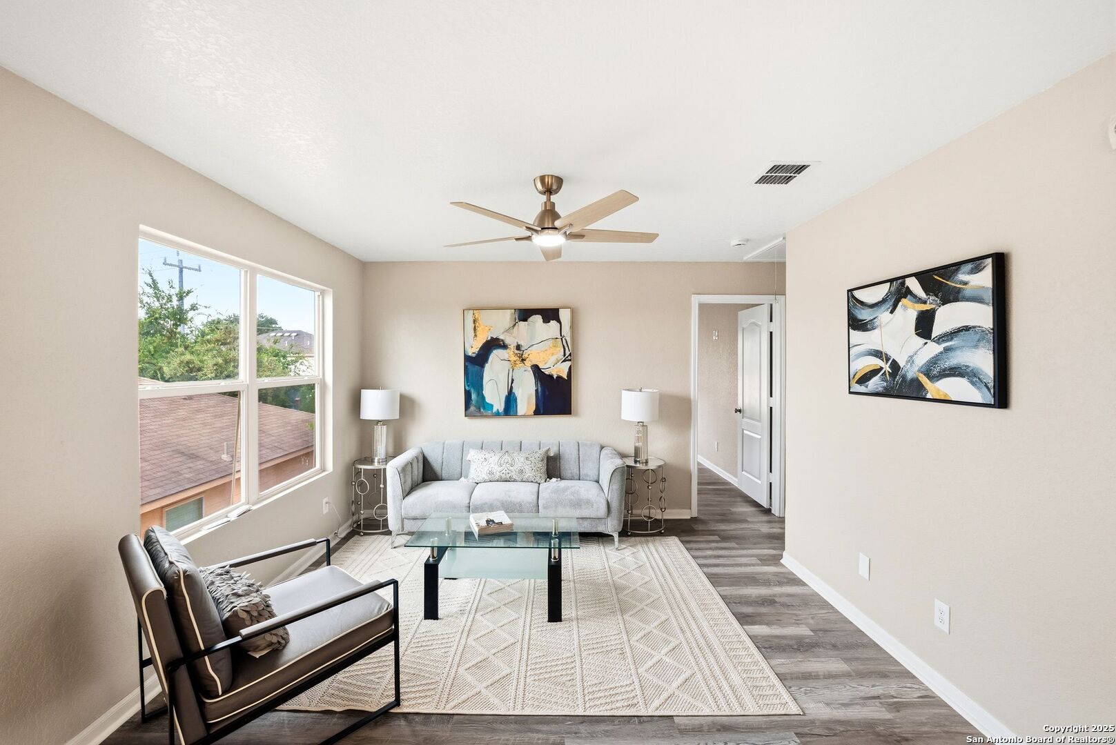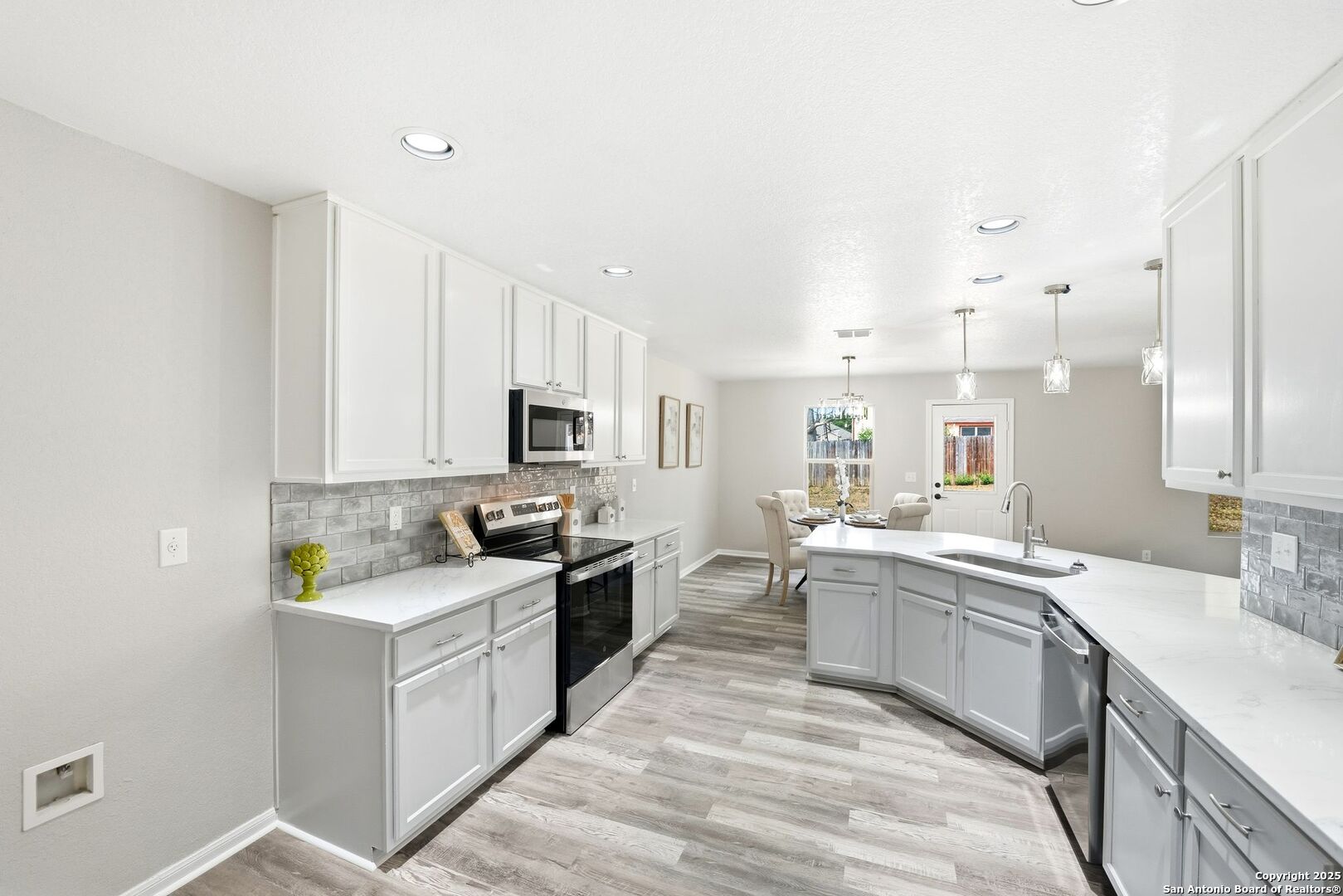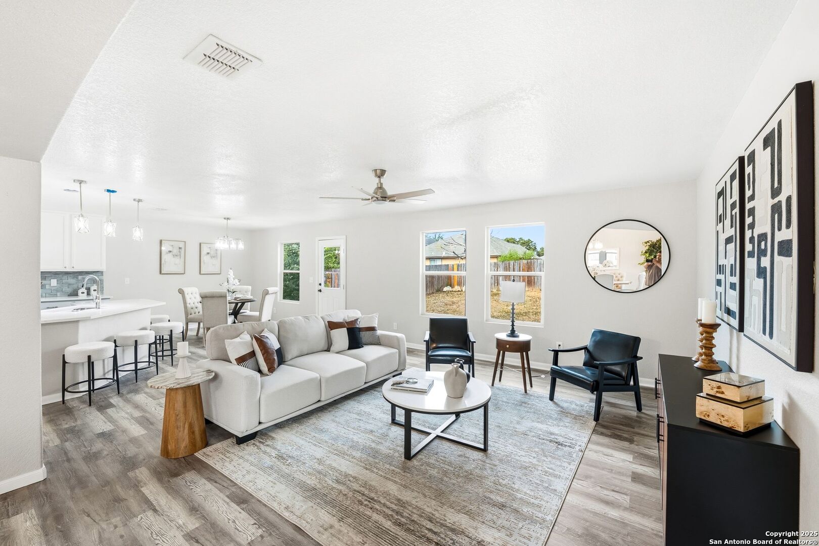 Open House 11/14/2025 from 4:00 PM to 7:00 PM || 11/15/2025 from 12:00 PM to 3:30 PM. This beautifully updated home offers the perfect blend of modern upgrades and comfortable living. Step inside and you'll find fresh paint, new flooring, and stylish finishes throughout. The spacious living area flows seamlessly into a bright kitchen featuring updated countertops, refinished cabinets, and stainless-steel appliances, perfect for everyday living and entertaining. The primary suite offers plenty of space and a private bath with updated fixtures. Secondary bedrooms are roomy and versatile for guests, work, or play. Outside, enjoy a private backyard with a covered patio, ideal for relaxing or hosting weekend barbecues. Located in a quiet neighborhood just minutes from shopping, dining, Lackland AFB, and easy highway access, this home is move-in ready and waiting for its next owner.