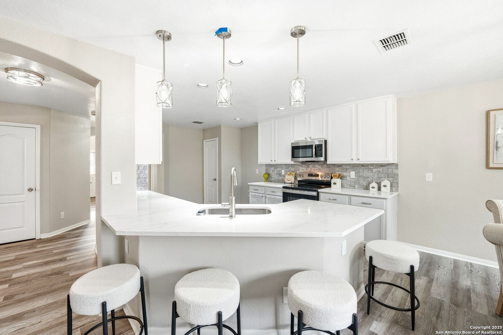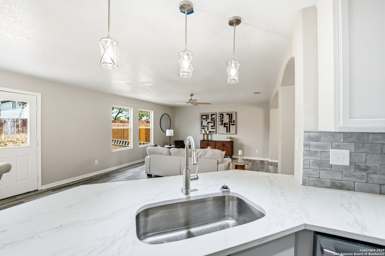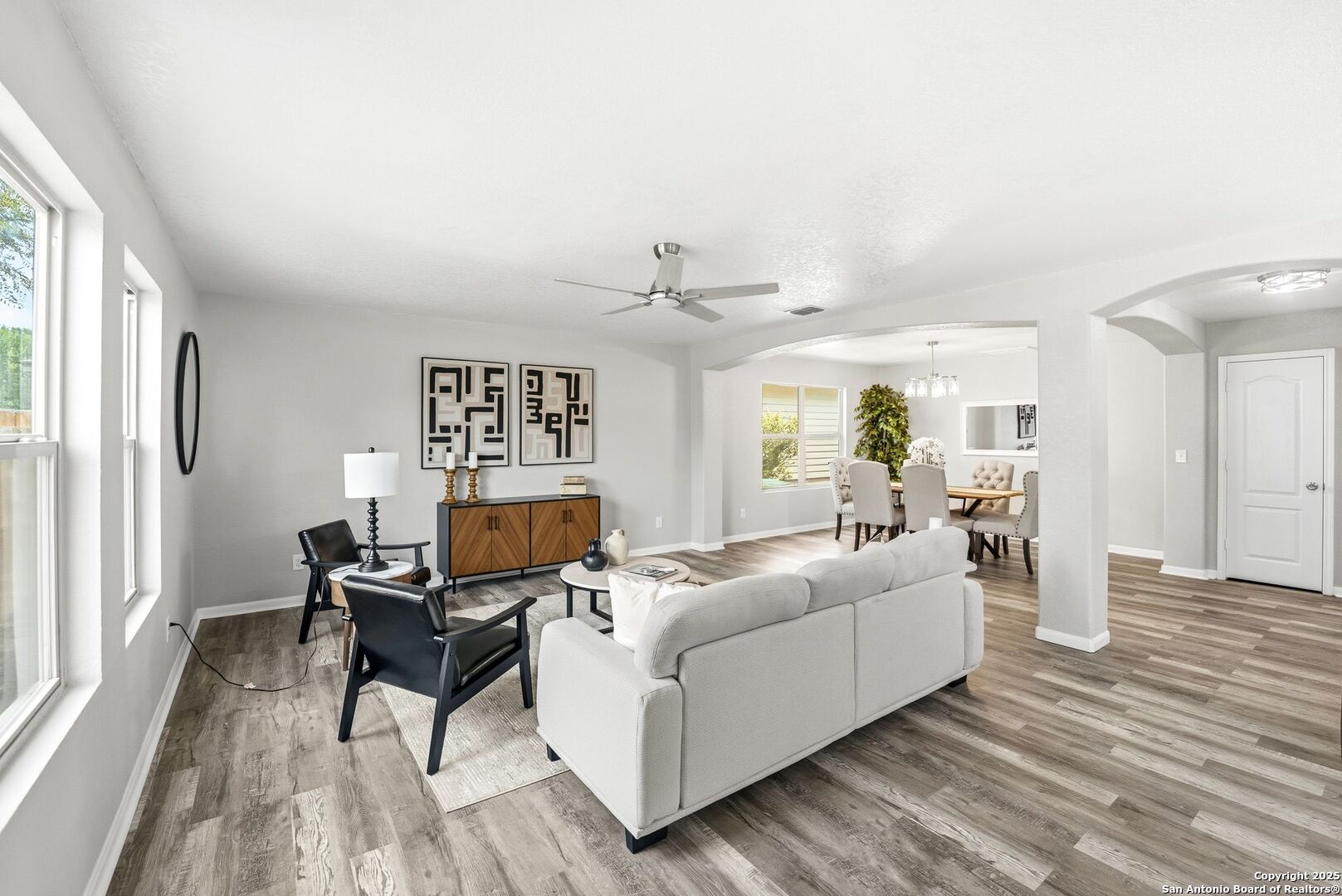 Open House 11/14/2025 from 4:00 PM to 7:00 PM || 11/15/2025 from 12:00 PM to 3:30 PM. This beautifully updated home offers the perfect blend of modern upgrades and comfortable living. Step inside and you'll find fresh paint, new flooring, and stylish finishes throughout. The spacious living area flows seamlessly into a bright kitchen featuring updated countertops, refinished cabinets, and stainless-steel appliances, perfect for everyday living and entertaining. The primary suite offers plenty of space and a private bath with updated fixtures. Secondary bedrooms are roomy and versatile for guests, work, or play. Outside, enjoy a private backyard with a covered patio, ideal for relaxing or hosting weekend barbecues. Located in a quiet neighborhood just minutes from shopping, dining, Lackland AFB, and easy highway access, this home is move-in ready and waiting for its next owner.