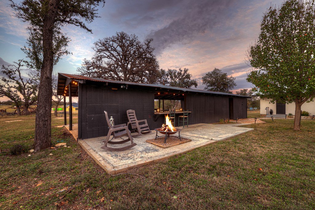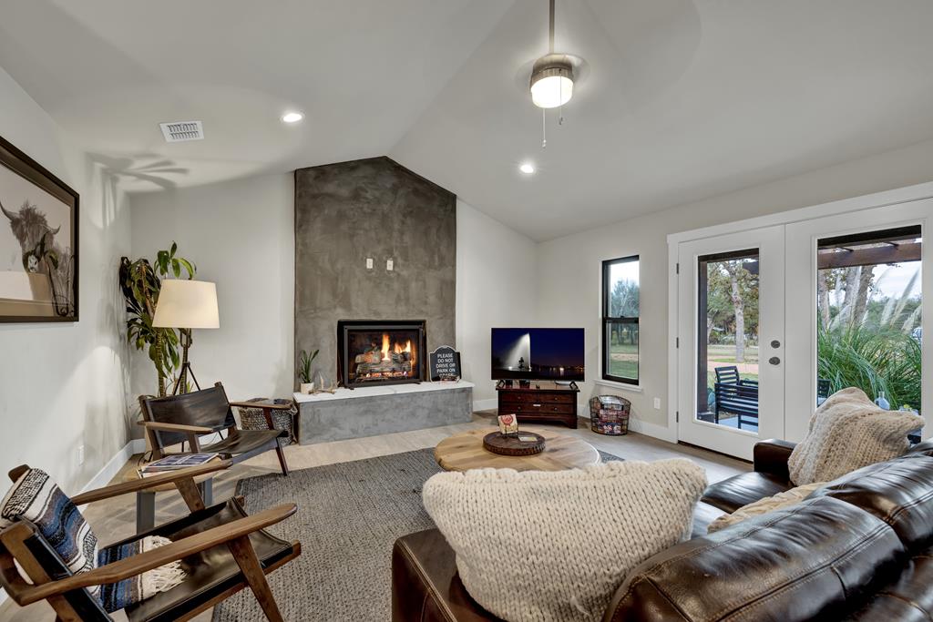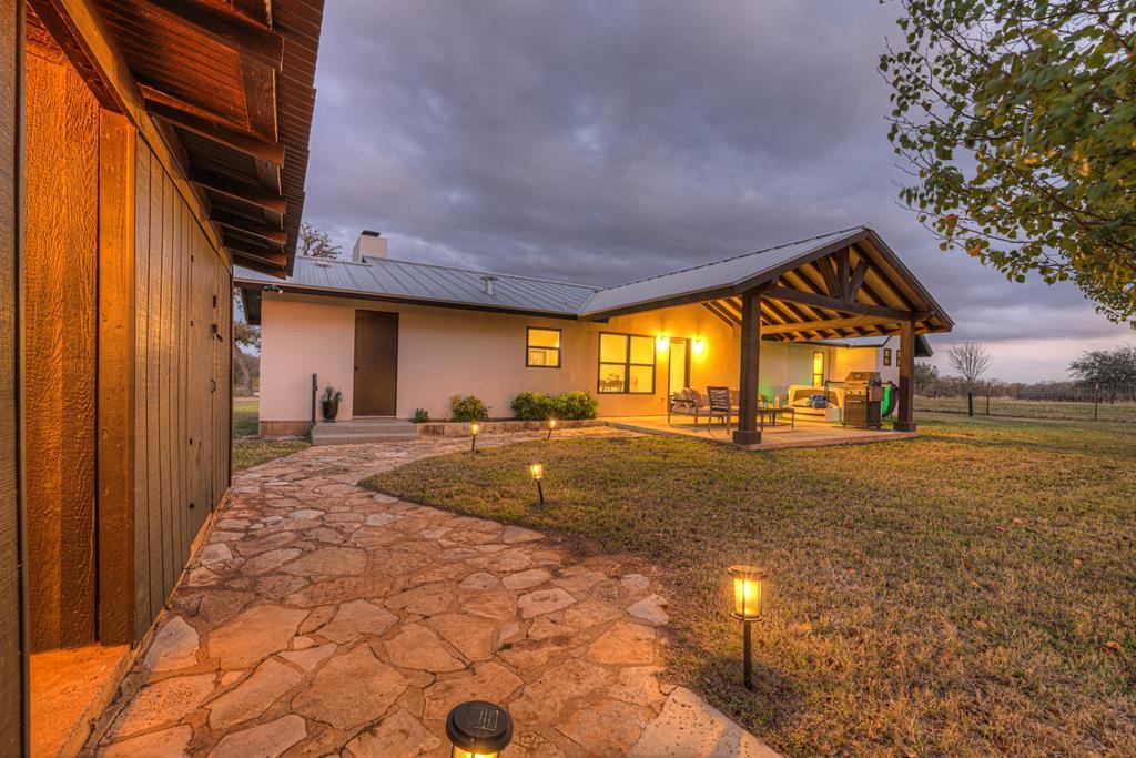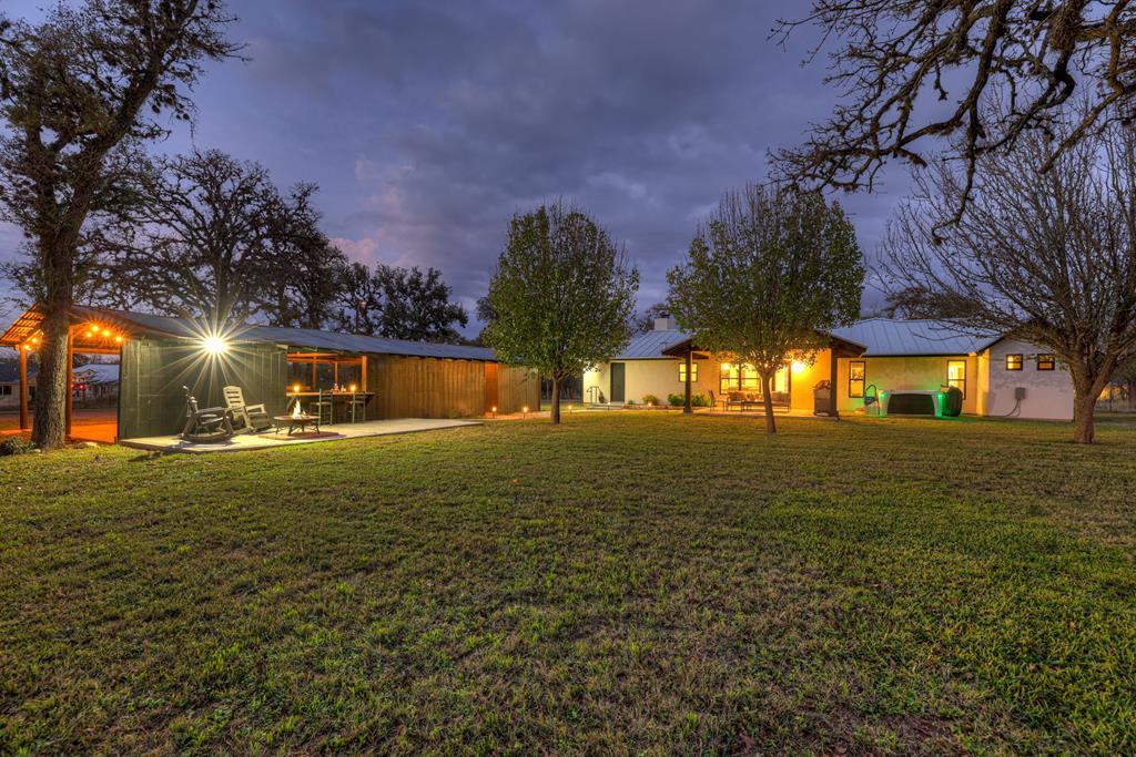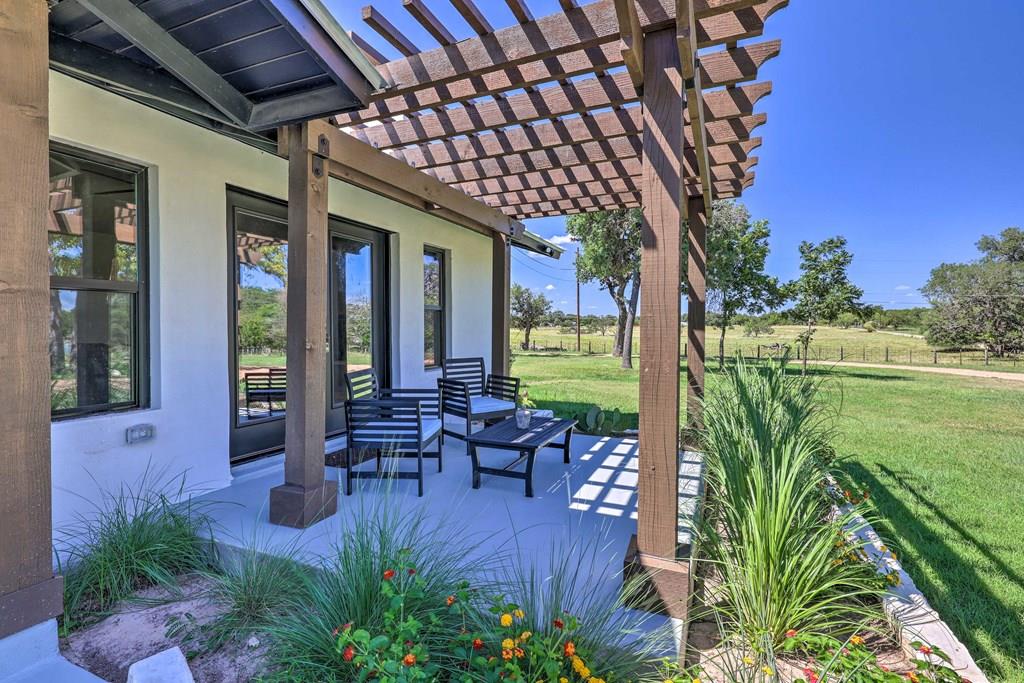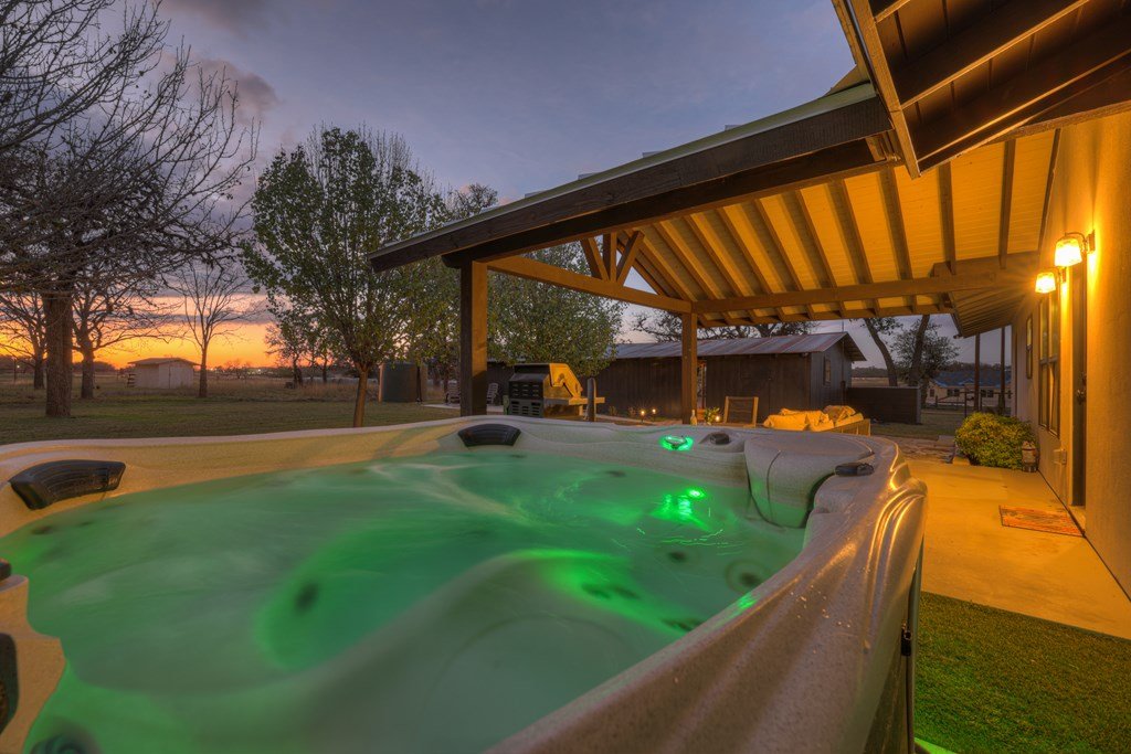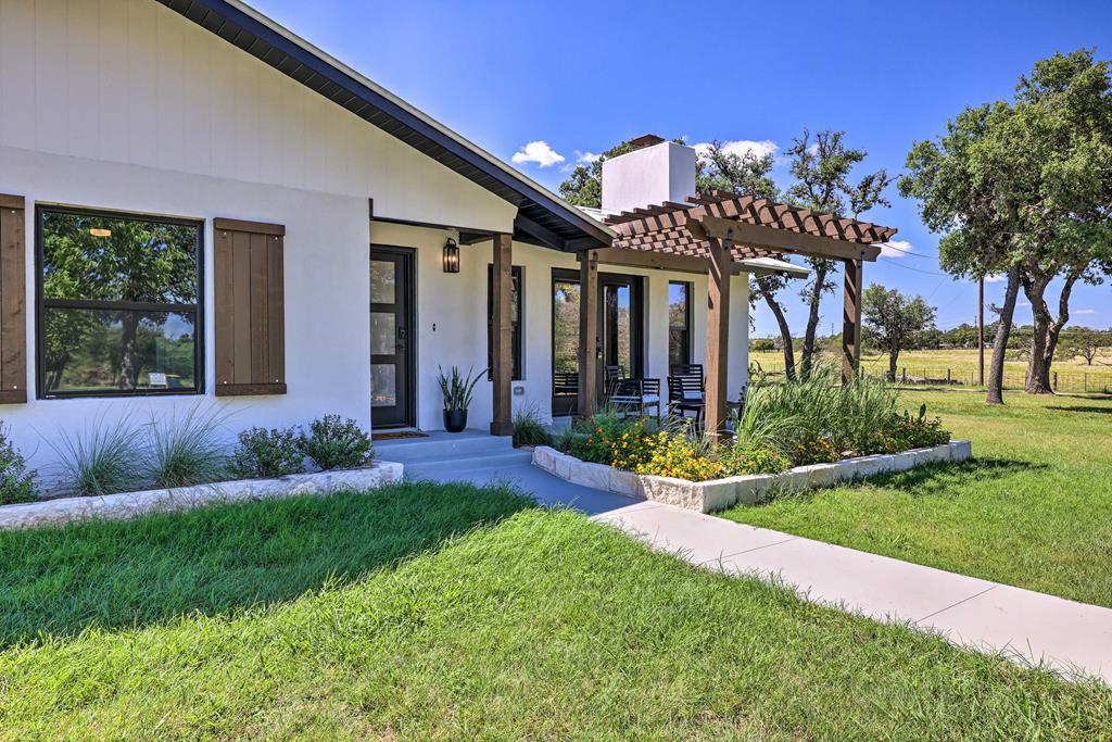This impressive 1.16-acre property is an active short-term rental (STR) and also makes an ideal family home. With ETJ zoning and no restrictions, it offers outstanding potential for expansion into a multi-unit STR, making it a prime investment opportunity! The 3-bedroom, 2.5-bath, 1,775 sq ft home boasts a sleek kitchen with stainless steel KitchenAid appliances, modern bathrooms, a stucco fireplace, and more. Outside, enjoy the inviting front porch with a pergola, a spacious covered back porch, and a relaxing hot tub surrounded by artificial turf. The 800 sq ft Party Barn adds an extra element of charm, featuring a built-in antique bar, lighting, and large patios perfect for entertaining. Don't miss this incredible opportunity to own a beautifully designed, income-generating property with unlimited possibilities!