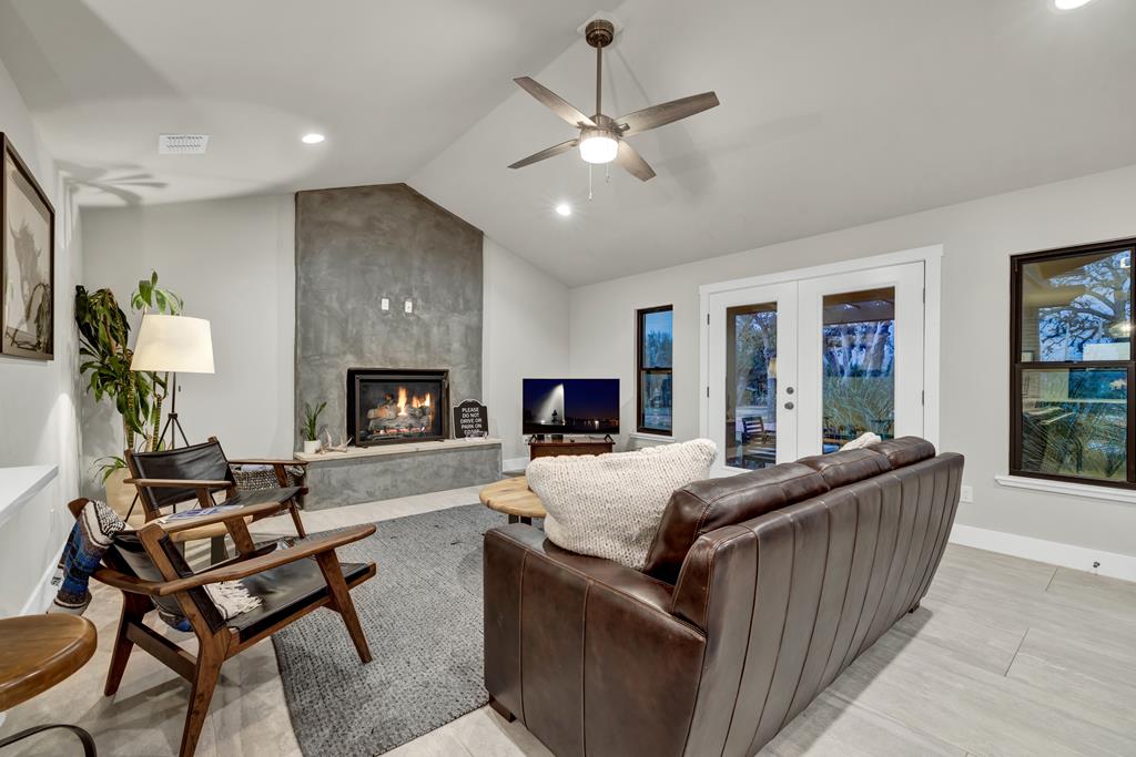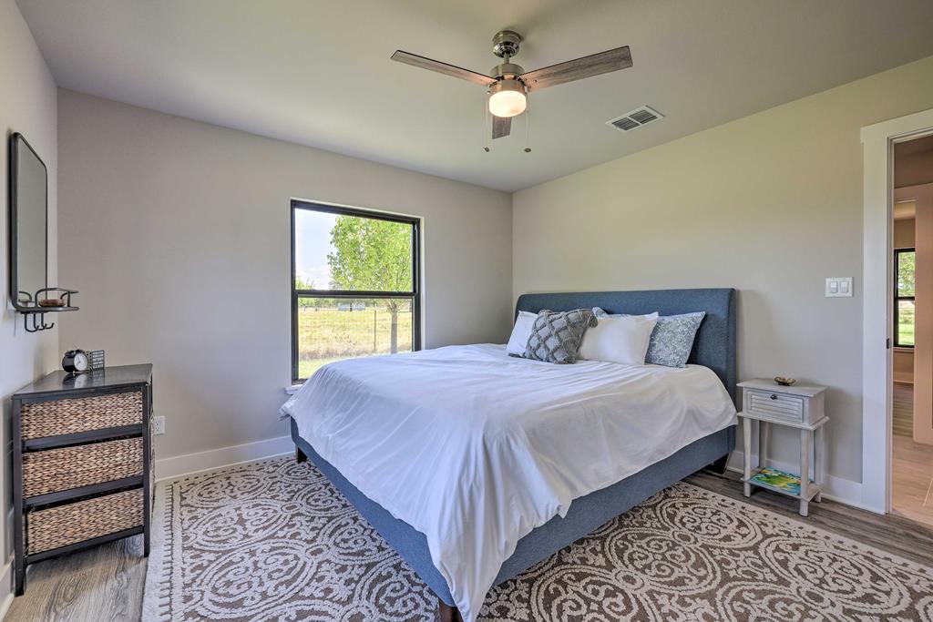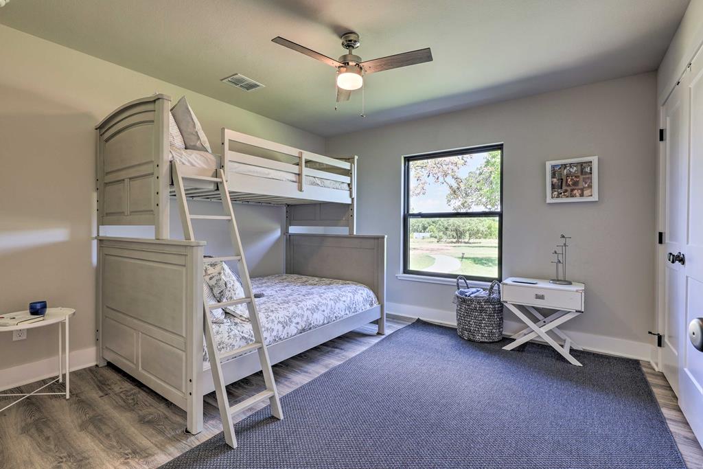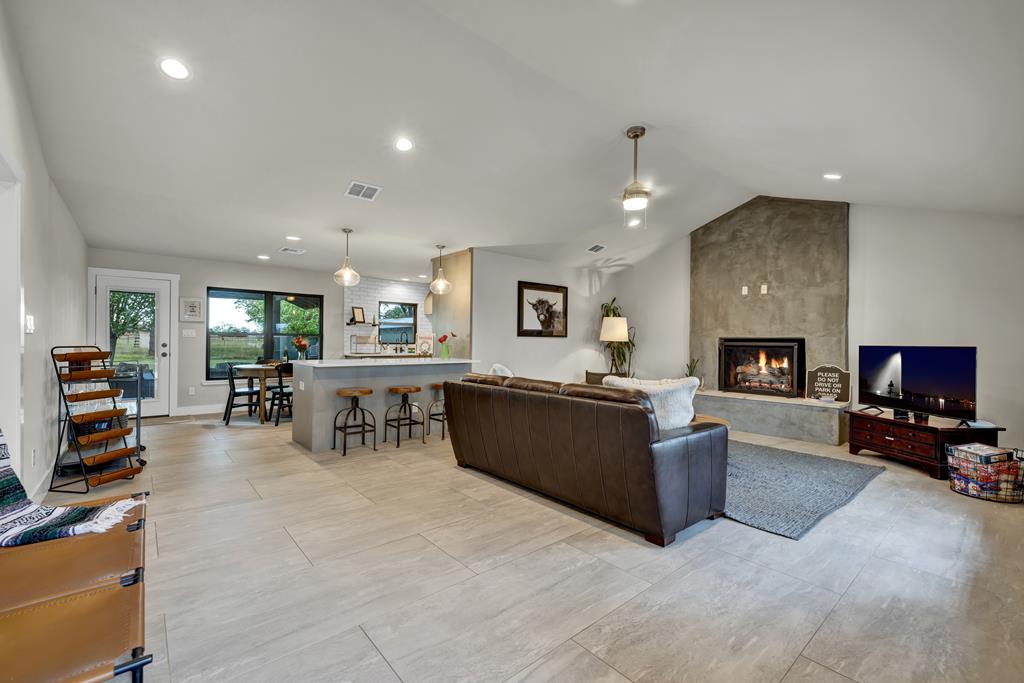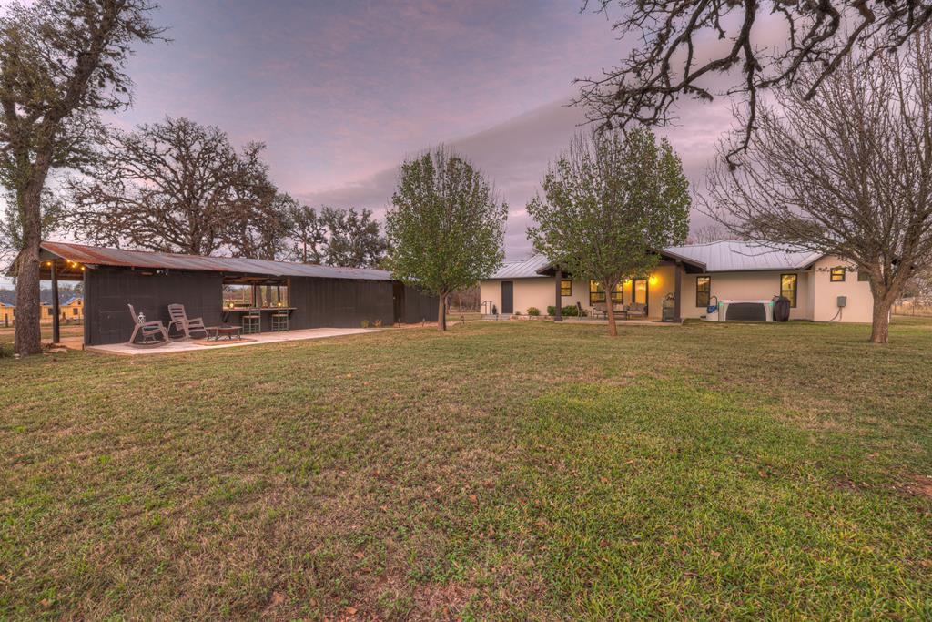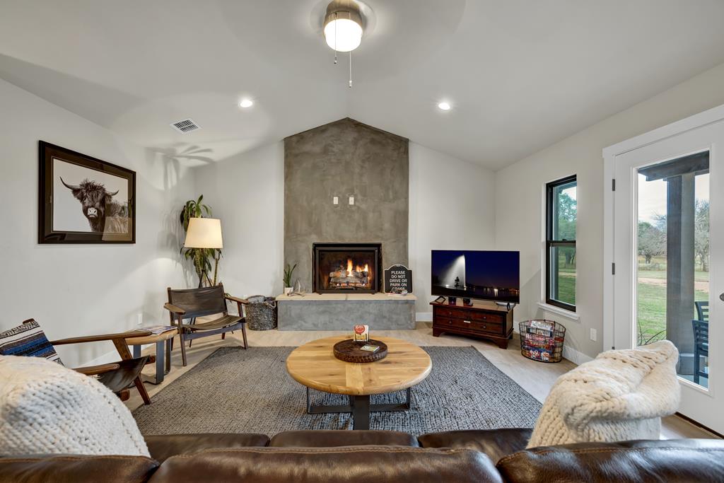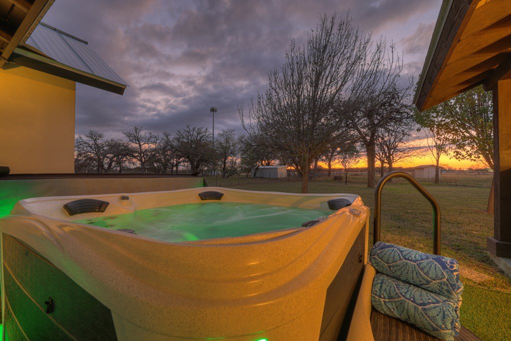 This impressive 1.16-acre property is an active short-term rental (STR) and also makes an ideal family home. With ETJ zoning and no restrictions, it offers outstanding potential for expansion into a multi-unit STR, making it a prime investment opportunity! The 3-bedroom, 2.5-bath, 1,775 sq ft home boasts a sleek kitchen with stainless steel KitchenAid appliances, modern bathrooms, a stucco fireplace, and more. Outside, enjoy the inviting front porch with a pergola, a spacious covered back porch, and a relaxing hot tub surrounded by artificial turf. The 800 sq ft Party Barn adds an extra element of charm, featuring a built-in antique bar, lighting, and large patios perfect for entertaining. Don't miss this incredible opportunity to own a beautifully designed, income-generating property with unlimited possibilities!