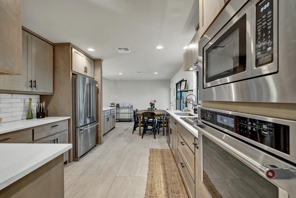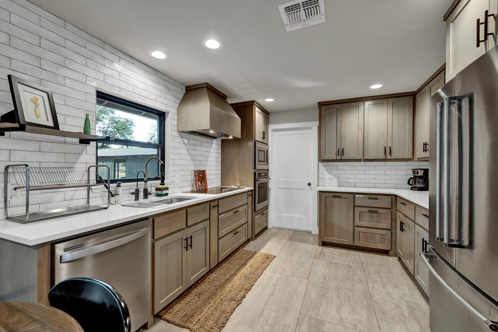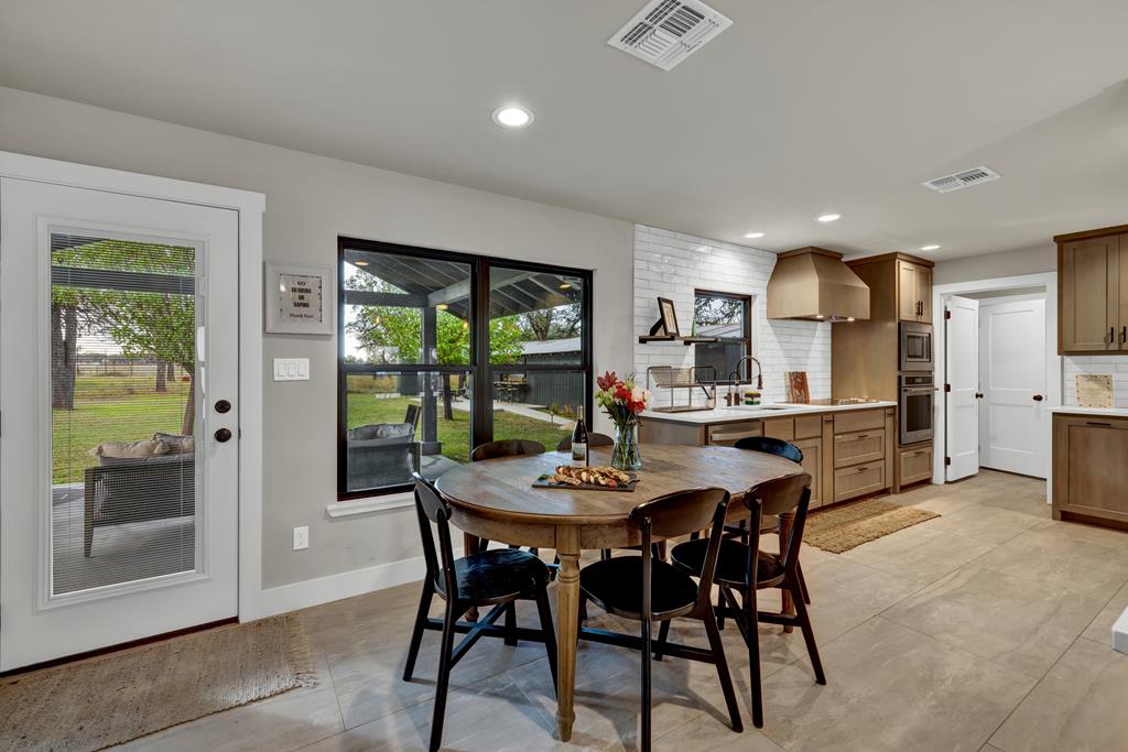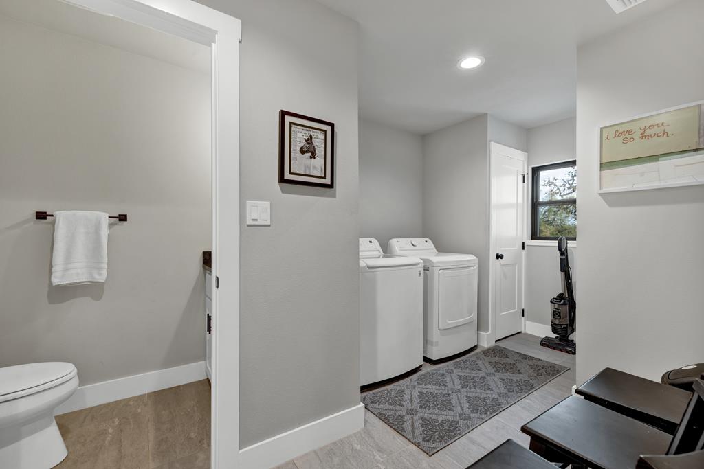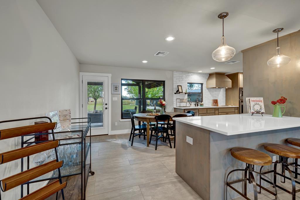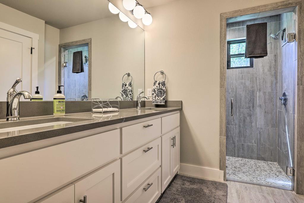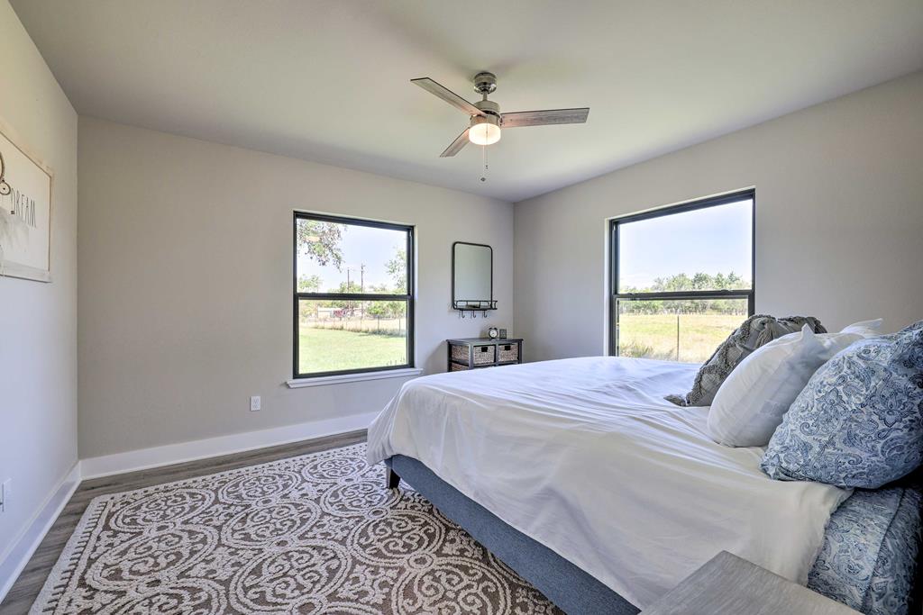 This impressive 1.16-acre property is an active short-term rental (STR) and also makes an ideal family home. With ETJ zoning and no restrictions, it offers outstanding potential for expansion into a multi-unit STR, making it a prime investment opportunity! The 3-bedroom, 2.5-bath, 1,775 sq ft home boasts a sleek kitchen with stainless steel KitchenAid appliances, modern bathrooms, a stucco fireplace, and more. Outside, enjoy the inviting front porch with a pergola, a spacious covered back porch, and a relaxing hot tub surrounded by artificial turf. The 800 sq ft Party Barn adds an extra element of charm, featuring a built-in antique bar, lighting, and large patios perfect for entertaining. Don't miss this incredible opportunity to own a beautifully designed, income-generating property with unlimited possibilities!