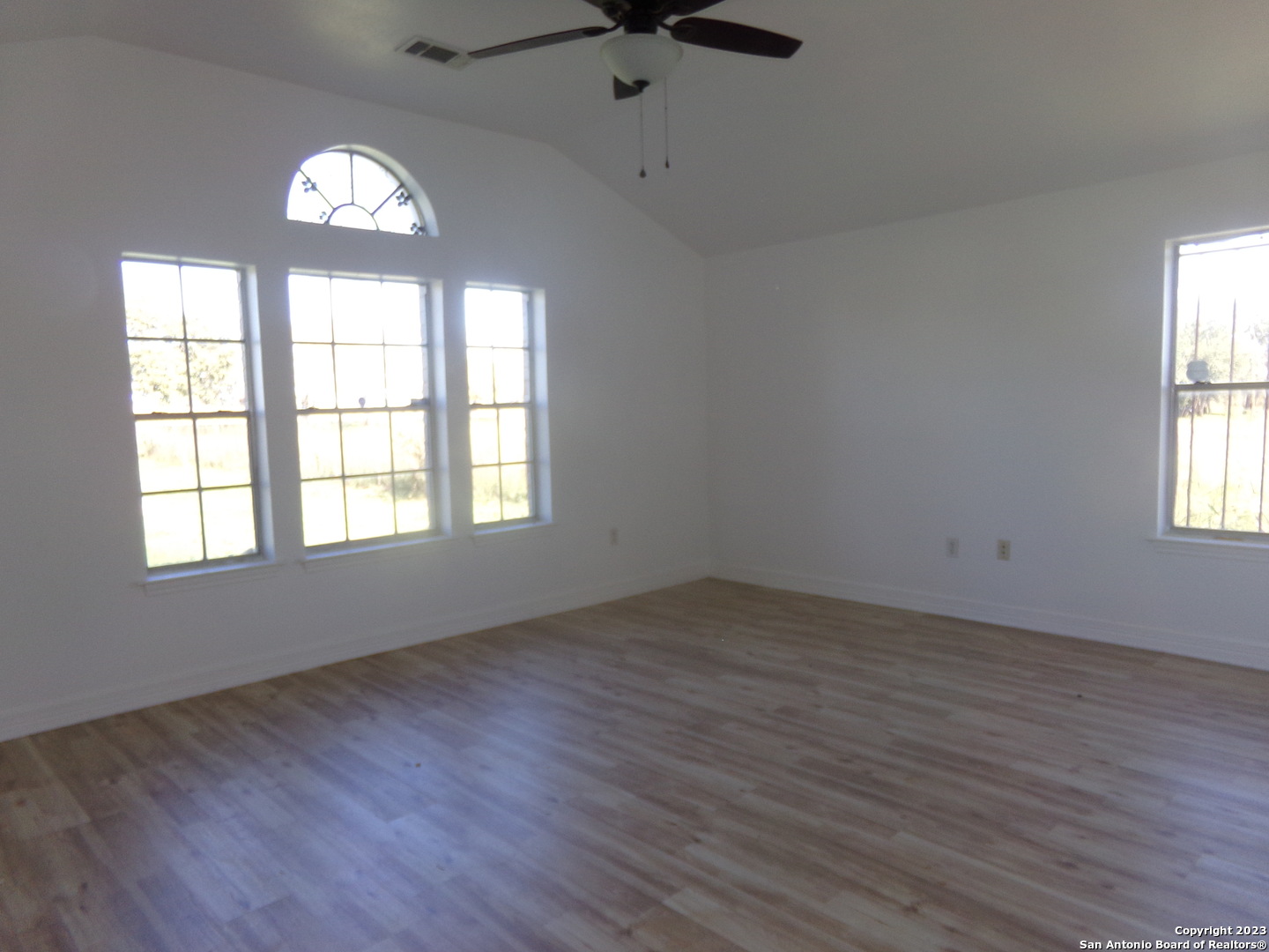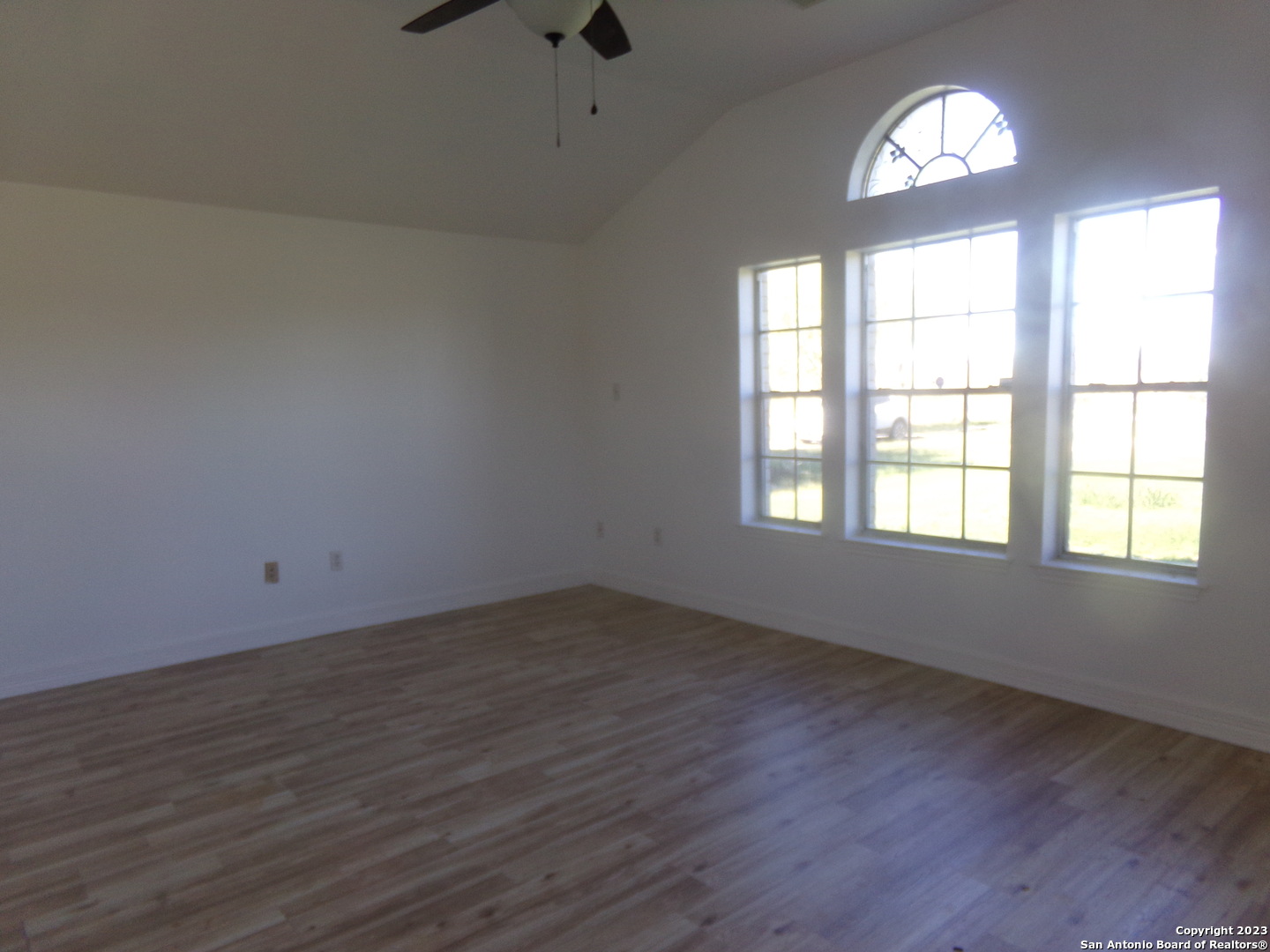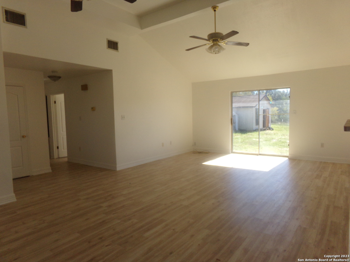 Spacious home with open floor plan on almost an acre of land. Ceramic flooring in kitchen and baths. Laminate flooring throughout rest of home. Lots of natural lighting. Walk in closet in primary bedroom. Large deck. Oversized storage. Yard completely fenced.