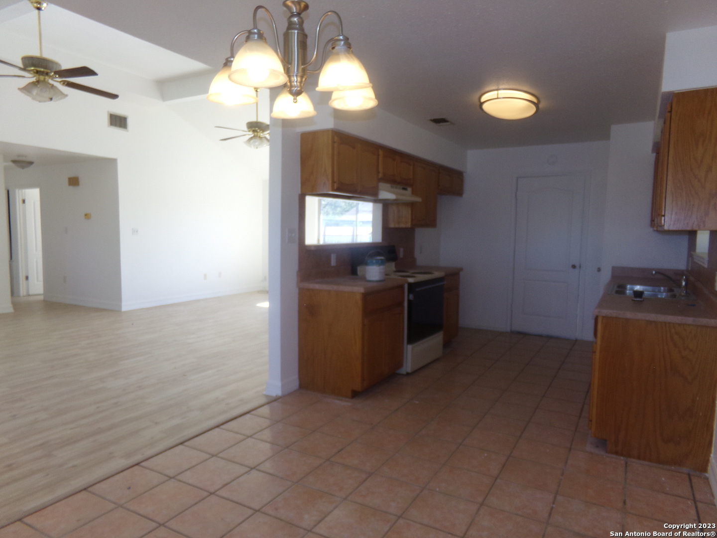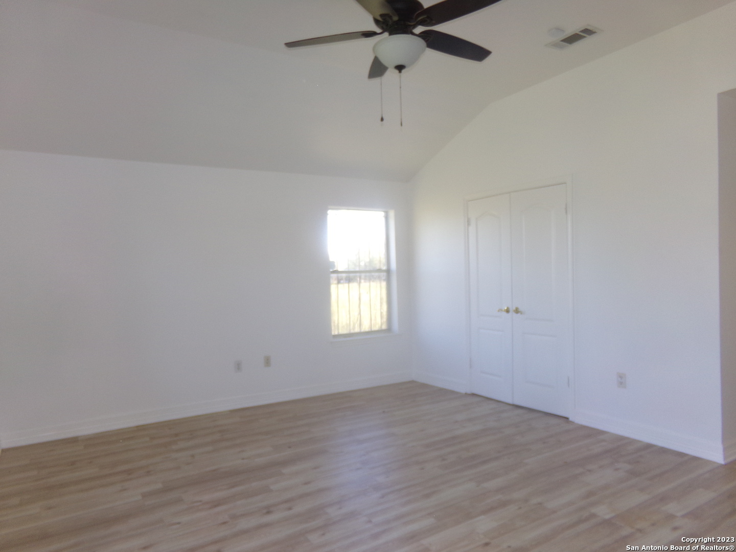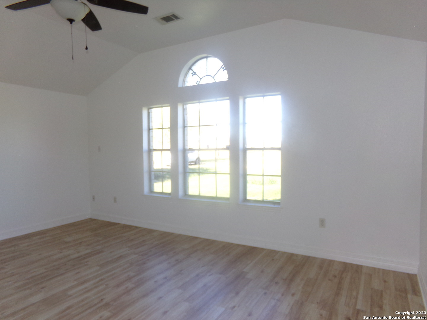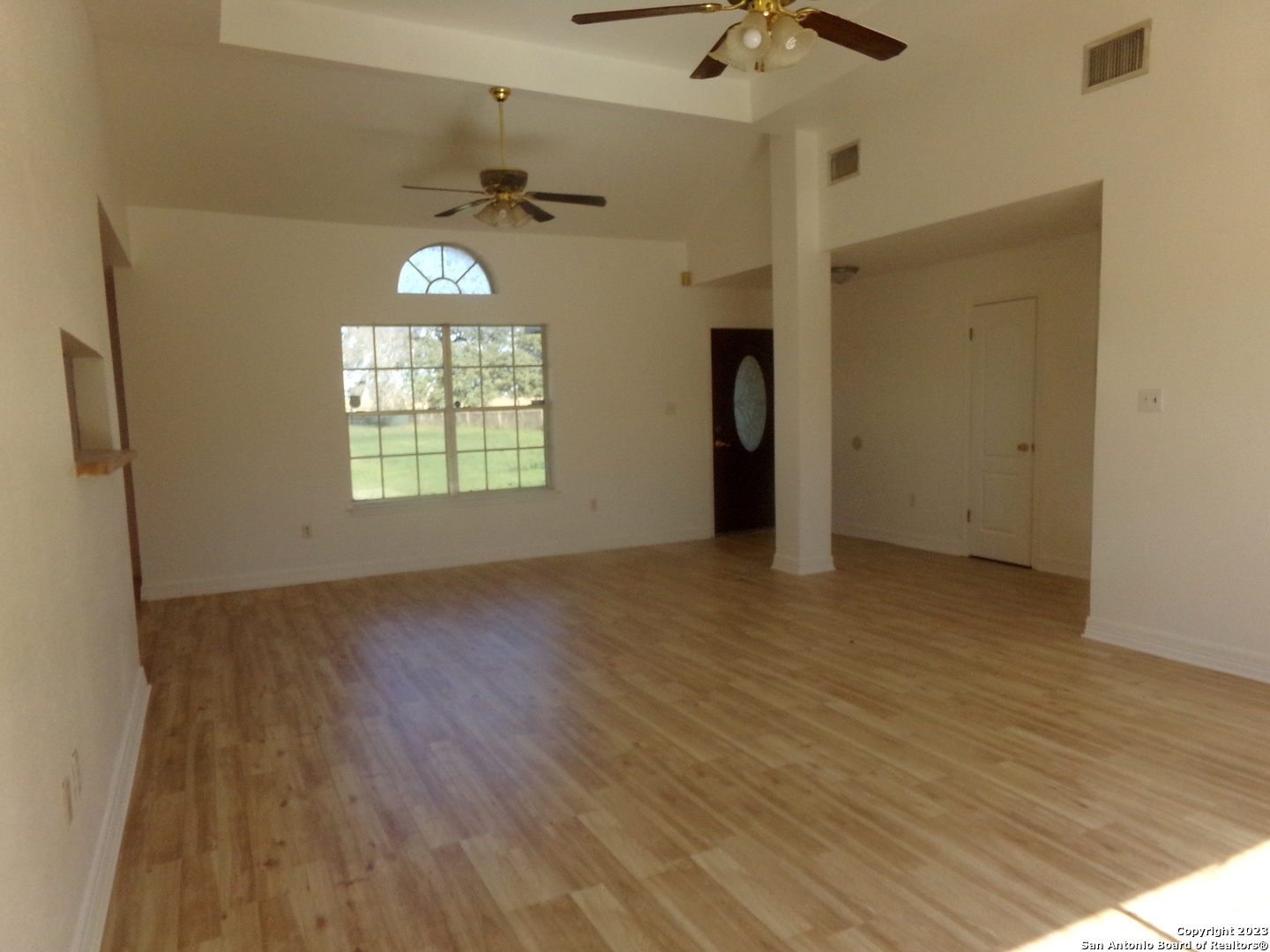 Spacious home with open floor plan on almost an acre of land. Ceramic flooring in kitchen and baths. Laminate flooring throughout rest of home. Lots of natural lighting. Walk in closet in primary bedroom. Large deck. Oversized storage. Yard completely fenced.