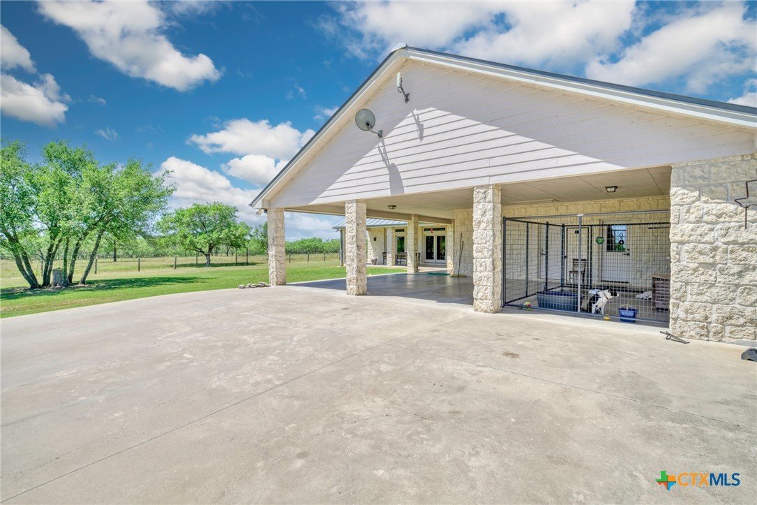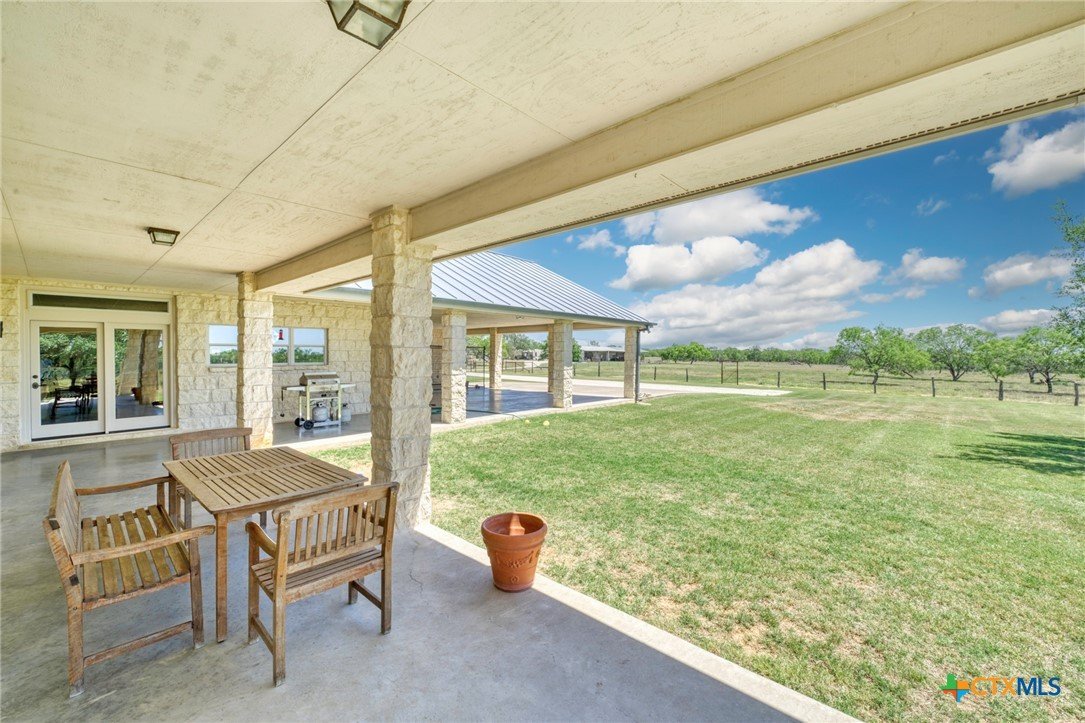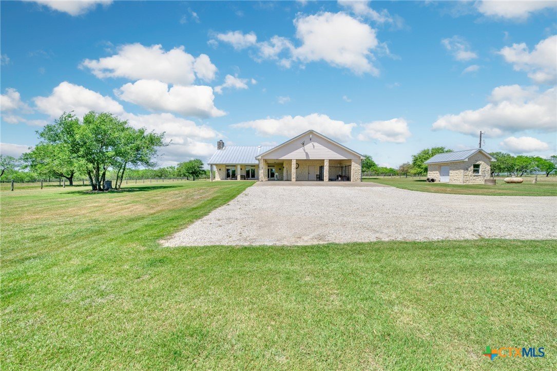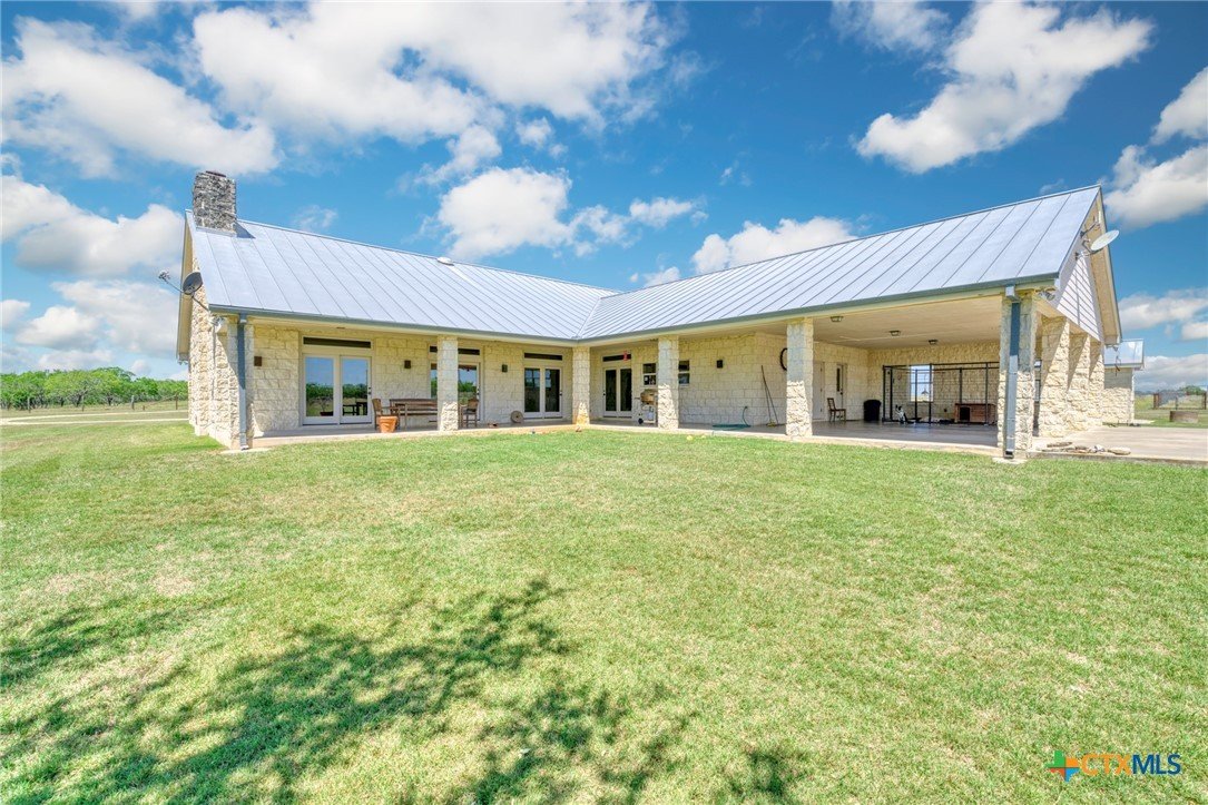 Find Your Peace On Earth, with a Piece OF Earth… Excellent Opportunity in Gonzales County in Cost, TX! Home, Shop, Horse Barn, Equipment Shed, Round Pen, Roping Lane, and MORE all on 120 +/- Acres with 2 Tanks. Tucked behind beautiful tree lined county road footage, you will find a beautiful 3 Bed, 2 Bath, 3700 Sq.Ft home draped on all sides with limestone and topped by standing seam galvanized roof, featuring spacious front and back porches with 3 car attached carport. Inside your new home, stretch out in the open living space with all the thoughtful amenities of luxurious country living. Large kitchen island with sink, double oven, propane cooktop, walk-in pantry, and magnificent decorative ceiling in the family room are just some of the great additions, serviced with GVEC high speed internet and Gonzales Co. Water Supply. Outside the home awaits a perfect respite for cattleman and horse lovers alike. Enjoy the oversize round pen and roping lane or ride the 120 fenced and cross fenced acres that is complimented by scattered trees and also open fields. Other improvements include an equipment shed with tack room and 4 stalls, holding pens, and an additional 1200 Sq.Ft shop for tinkering and projects, plus a mower shed that matches the facade of the main house. This property checks all the boxes and is located in serene seclusion, but close enough to town with short commutes to Gonzales or Seguin, and only 1 hour to the Austin Bergstrom Airport. Thoughtful consideration was given to the layout and construction of every inch of this property and it is ready for you to write its next chapter. Call today for your private showing.