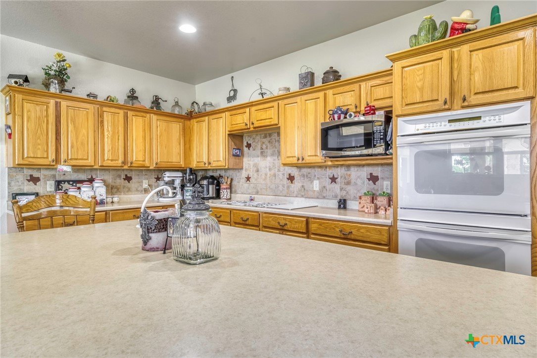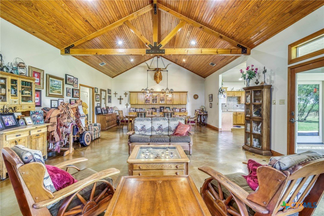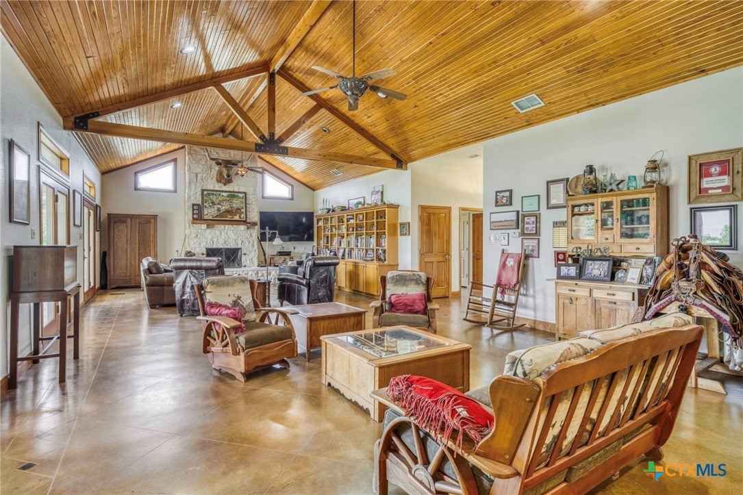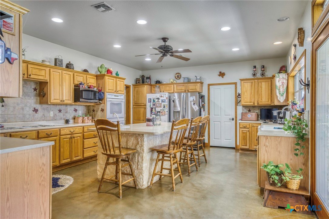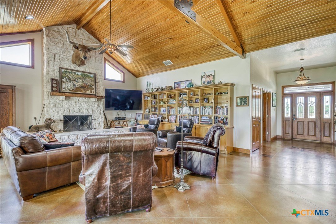 Find Your Peace On Earth, with a Piece OF Earth… Excellent Opportunity in Gonzales County in Cost, TX! Home, Shop, Horse Barn, Equipment Shed, Round Pen, Roping Lane, and MORE all on 120 +/- Acres with 2 Tanks. Tucked behind beautiful tree lined county road footage, you will find a beautiful 3 Bed, 2 Bath, 3700 Sq.Ft home draped on all sides with limestone and topped by standing seam galvanized roof, featuring spacious front and back porches with 3 car attached carport. Inside your new home, stretch out in the open living space with all the thoughtful amenities of luxurious country living. Large kitchen island with sink, double oven, propane cooktop, walk-in pantry, and magnificent decorative ceiling in the family room are just some of the great additions, serviced with GVEC high speed internet and Gonzales Co. Water Supply. Outside the home awaits a perfect respite for cattleman and horse lovers alike. Enjoy the oversize round pen and roping lane or ride the 120 fenced and cross fenced acres that is complimented by scattered trees and also open fields. Other improvements include an equipment shed with tack room and 4 stalls, holding pens, and an additional 1200 Sq.Ft shop for tinkering and projects, plus a mower shed that matches the facade of the main house. This property checks all the boxes and is located in serene seclusion, but close enough to town with short commutes to Gonzales or Seguin, and only 1 hour to the Austin Bergstrom Airport. Thoughtful consideration was given to the layout and construction of every inch of this property and it is ready for you to write its next chapter. Call today for your private showing.