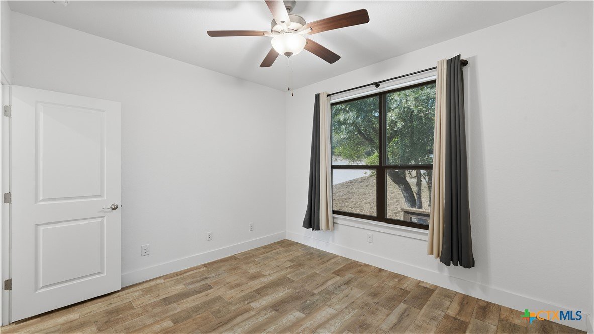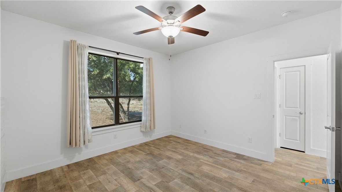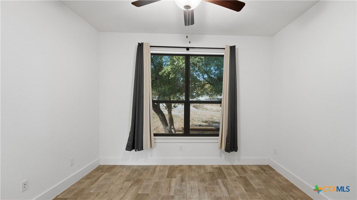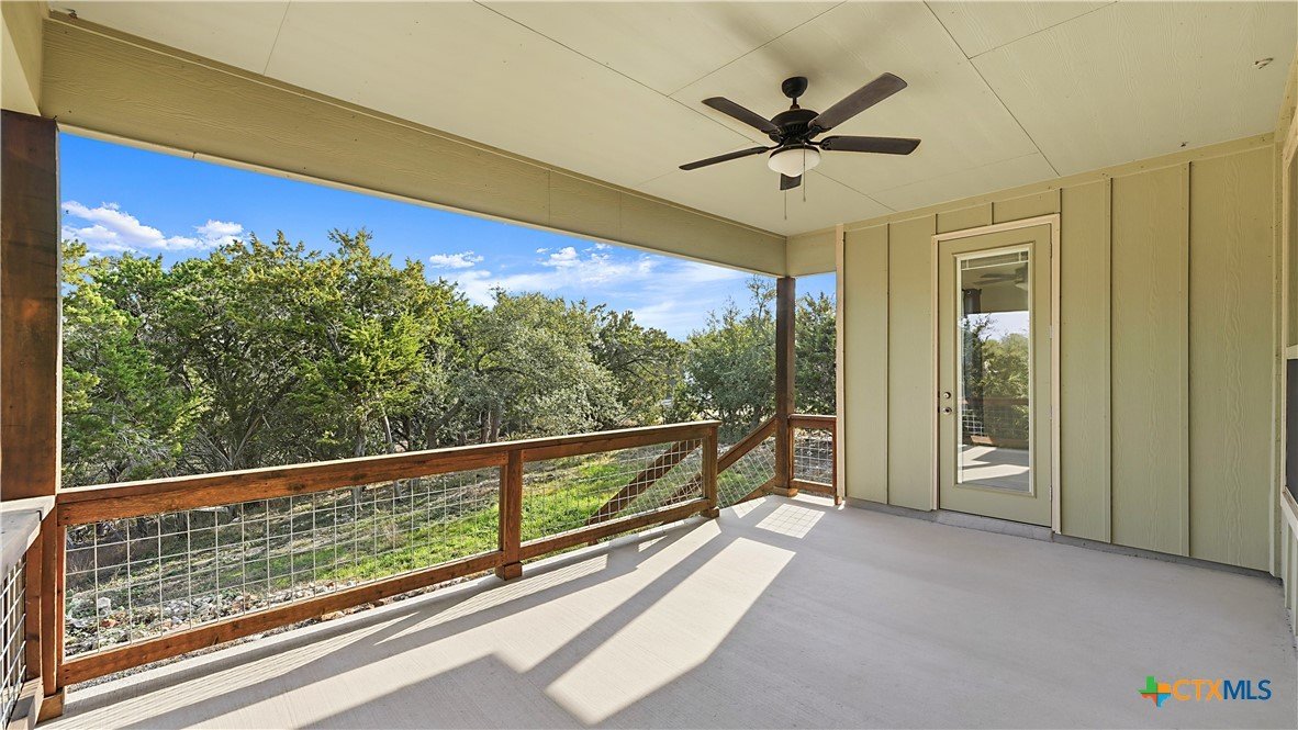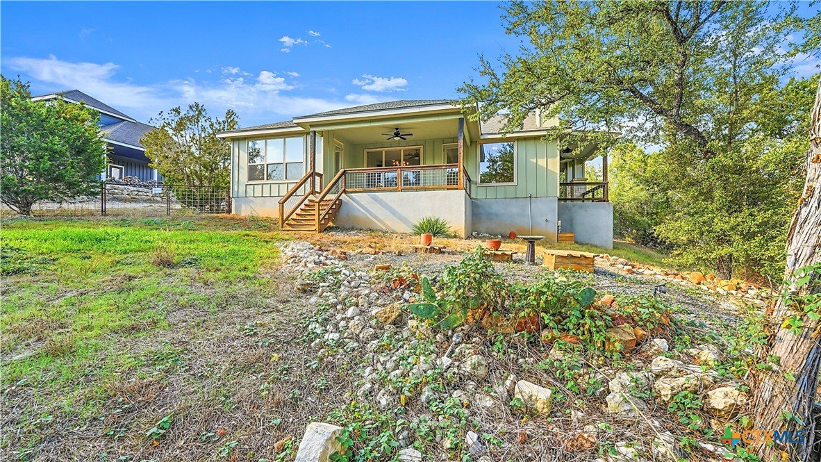 Welcome to The Primrose Retreat, a refined Hill Country residence tucked inside the gated community of Summit North Estates at Canyon Lake-where elevated design, natural beauty, and everyday convenience come together on a beautifully contoured half-acre homesite. Built by David Barr, this home was thoughtfully designed to embrace its surroundings. From the moment you step inside, soaring ceilings and an open-concept layout invite an abundance of natural light, creating a warm, airy atmosphere that flows seamlessly from one space to the next. Ceramic tile flooring throughout offers both elegance and easy care, perfectly suited for Hill Country living. The kitchen serves as the heart of the home, featuring sleek quartz countertops, a stylish backsplash, and soft-close custom cabinetry with 42" uppers. Whether hosting friends for a weekend gathering or enjoying a quiet morning coffee, the space feels both refined and welcoming. The private primary suite is a peaceful escape, offering direct access to the covered patio, generous closet space, and a well-appointed en-suite bath-your own personal sanctuary overlooking the natural landscape. Two additional bedrooms provide flexibility for guests, a home office, or creative space to suit your lifestyle. Step outside and experience what makes this property truly special. The covered sitting porch and expansive patio overlook a backyard framed by mature trees, offering scenic Hill Country views and a sense of privacy. With a unique backyard zipline and ample room to create your own outdoor retreat-garden, firepit, or entertaining space-this homesite invites you to live and unwind under the wide Texas sky. Perfectly positioned just minutes from Canyon Lake, local dining, live music, and everyday shopping, this home delivers the rare balance of peaceful, gated country living with modern convenience.
