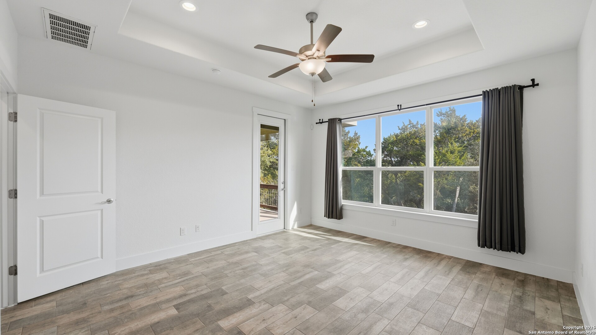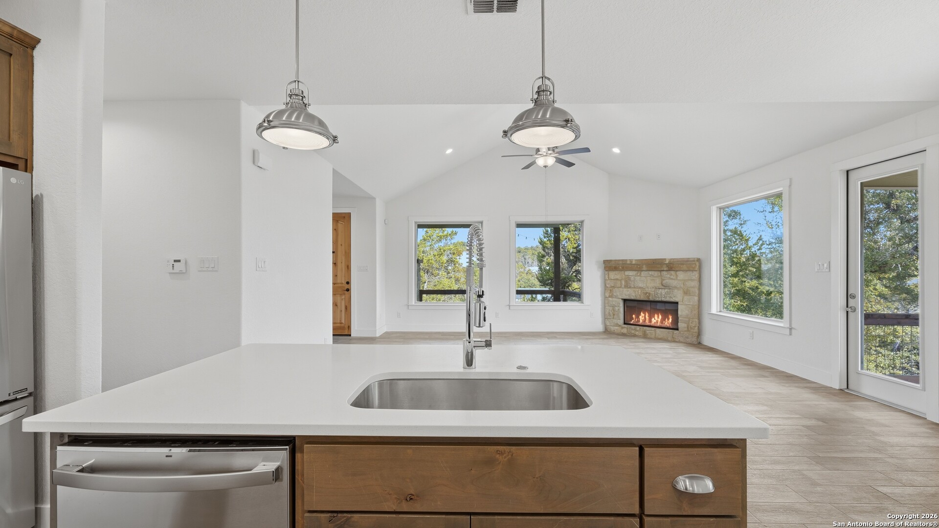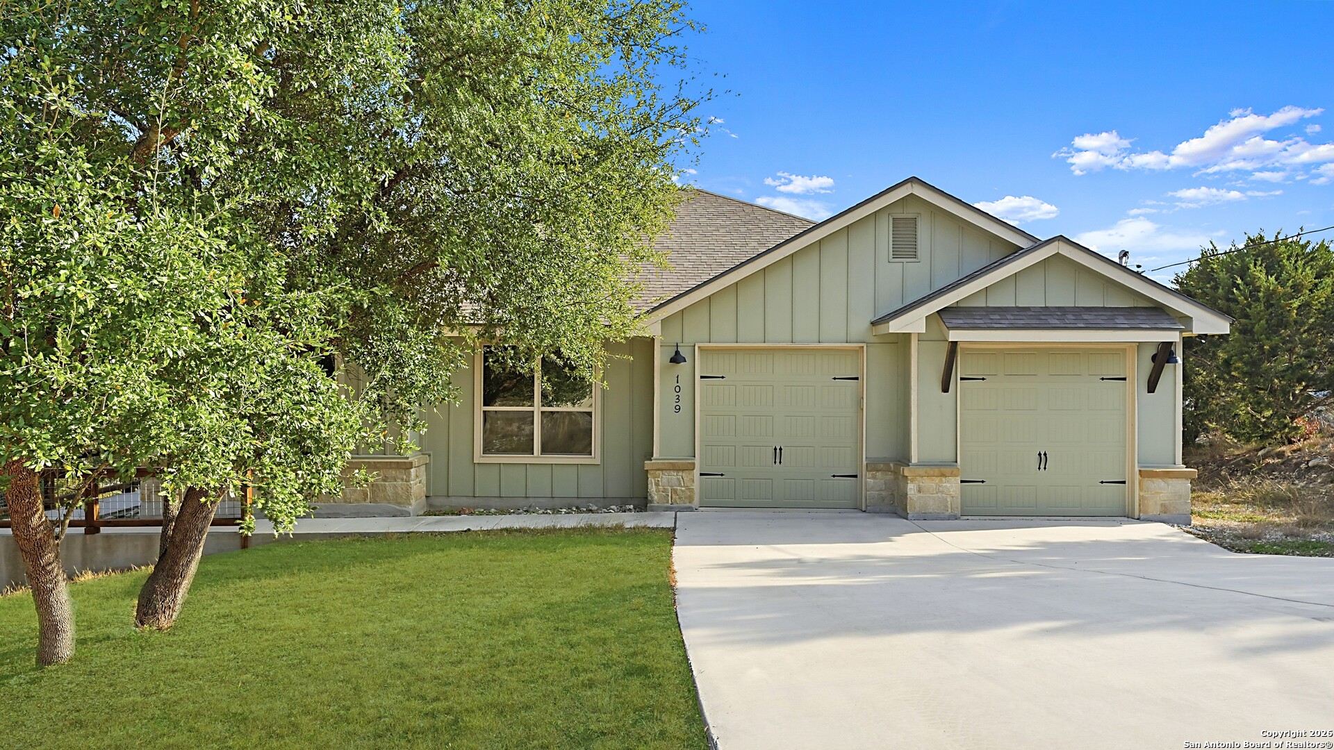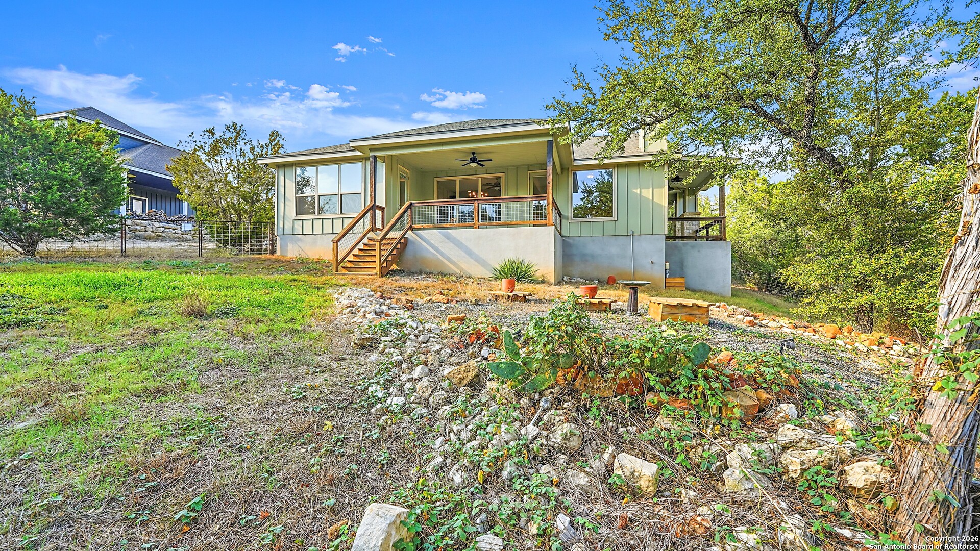 Welcome to The Primrose Retreat, a refined Hill Country residence tucked inside the gated community of Summit North Estates at Canyon Lake-where elevated design, natural beauty, and everyday convenience come together on a beautifully contoured half-acre homesite. Built by David Barr, this home was thoughtfully designed to embrace its surroundings. From the moment you step inside, soaring ceilings and an open-concept layout invite an abundance of natural light, creating a warm, airy atmosphere that flows seamlessly from one space to the next. Ceramic tile flooring throughout offers both elegance and easy care, perfectly suited for Hill Country living. The kitchen serves as the heart of the home, featuring sleek quartz countertops, a stylish backsplash, and soft-close custom cabinetry with 42" uppers. Whether hosting friends for a weekend gathering or enjoying a quiet morning coffee, the space feels both refined and welcoming. The private primary suite is a peaceful escape, offering direct access to the covered patio, generous closet space, and a well-appointed en-suite bath-your own personal sanctuary overlooking the natural landscape. Two additional bedrooms provide flexibility for guests, a home office, or creative space to suit your lifestyle. Step outside and experience what makes this property truly special. The covered sitting porch and expansive patio overlook a backyard framed by mature trees, offering scenic Hill Country views and a sense of privacy. With a unique backyard zipline and ample room to create your own outdoor retreat-garden, firepit, or entertaining space-this homesite invites you to live and unwind under the wide Texas sky. Perfectly positioned just minutes from Canyon Lake, local dining, live music, and everyday shopping, this home delivers the rare balance of peaceful, gated country living with modern convenience.