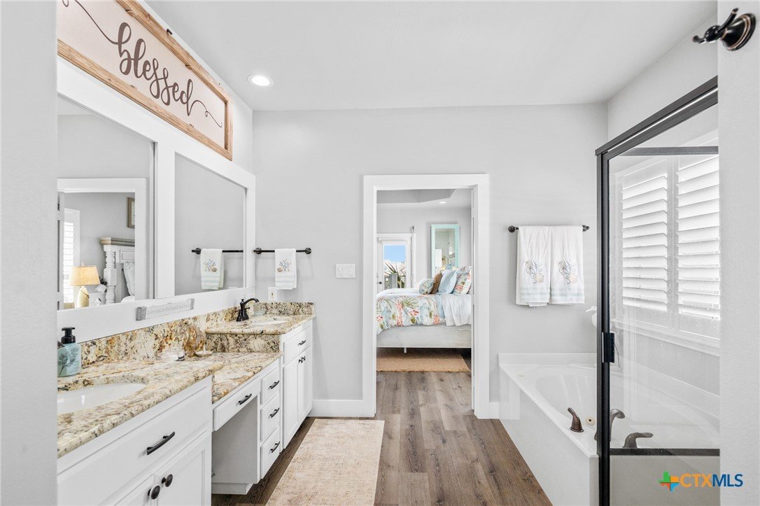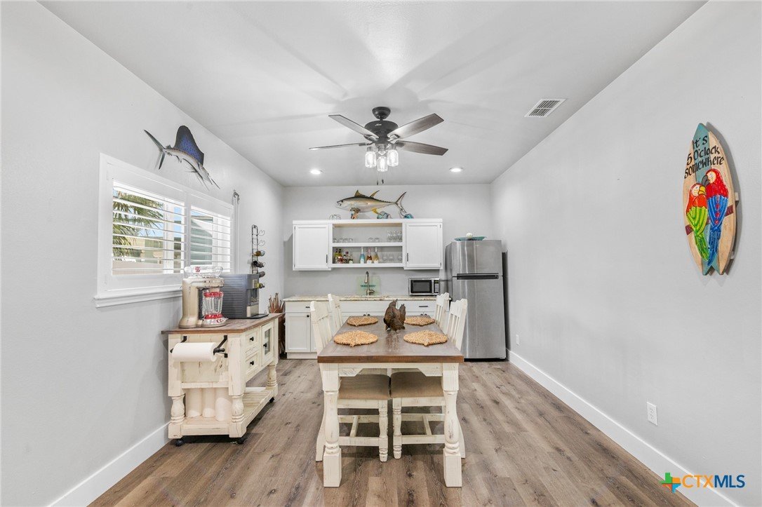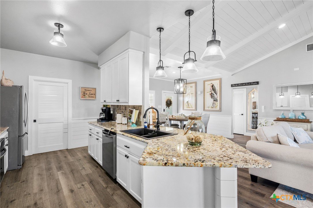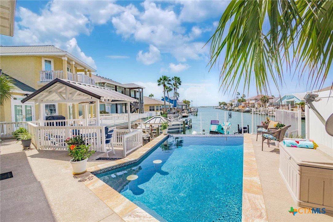 Welcome to your dream waterfront retreat! This beautifully updated canal-front home in the prestigious Bay Harbor offers a perfect blend of coastal elegance and modern luxury. With a spacious and inviting interior, the home has been meticulously renovated to showcase the space and functionality while creating a serene and sophisticated atmosphere. Boasting 5 bedrooms and 3 bathrooms, this home provides ample space for family and guests alike. The master suite is a true sanctuary, offering stunning canal views, a spa-like en suite bathroom, and a large walk-in closet. The additional bedrooms are generously sized, perfect for children, guests, or a home office. The open-concept living area is ideal for entertaining, with large windows that bring in breathtaking views of the canal and allow natural light to flood the space. The kitchen features sleek countertops, and ample cabinetry, perfect for preparing meals while enjoying the scenic surroundings. Downstairs, you’ll find the guest quarters, offering a private living room, kitchenette, 2 bedrooms and a bathroom – a perfect retreat for visitors or extended family. The layout offers both privacy and convenience, with direct access to the backyard and pool area. Step outside to your private oasis – a luxurious pool surrounded by lush landscaping, perfect for relaxing or hosting gatherings. The expansive patio area provides plenty of space for lounging, dining, or enjoying sunset views over the water. With direct access to Redfish Bay from the canal, you can easily enjoy boating, fishing, and all that waterfront living has to offer. This home seamlessly combines the relaxed coastal vibe of Bay Harbor with sophisticated design, making it the ultimate retreat for those seeking comfort and style. Don’t miss your chance to own this spectacular piece of paradise – a true gem in one of Aransas Pass most desirable neighborhoods!