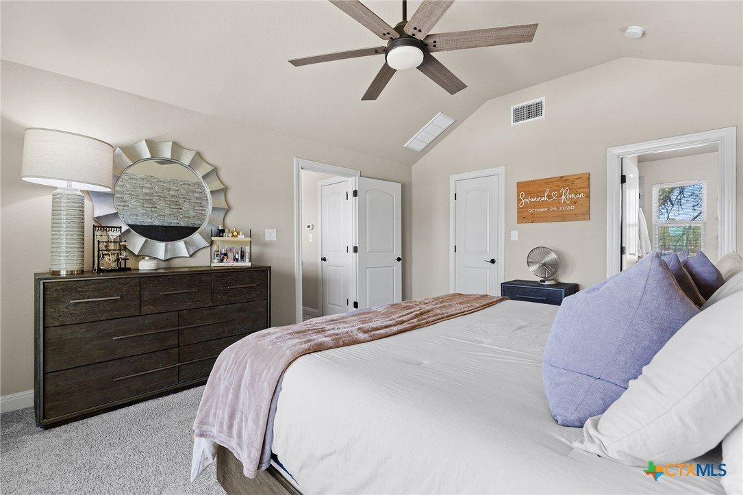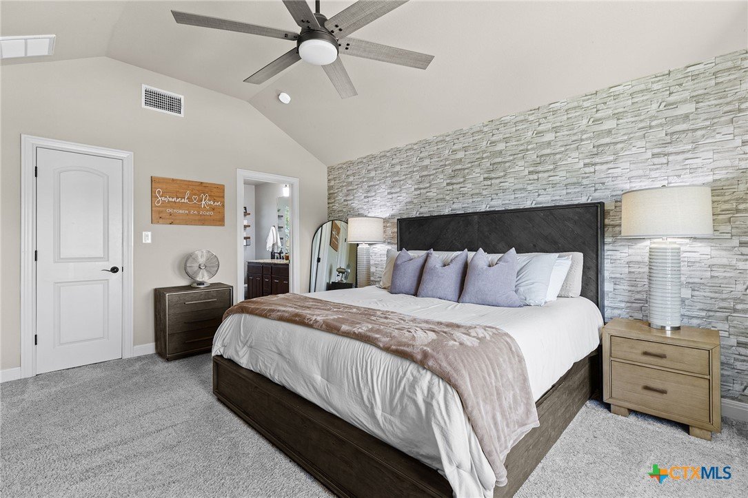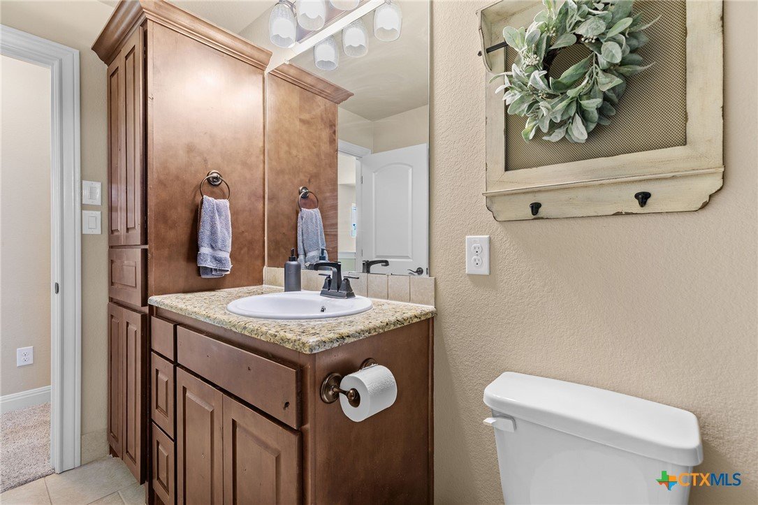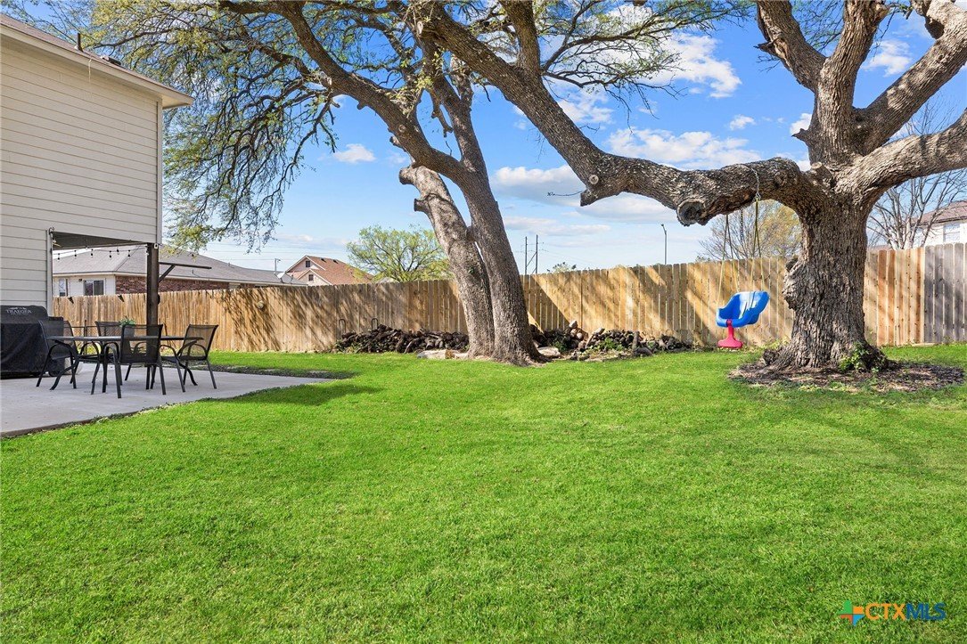 Rare opportunity to own one of the largest lots in Highland Oaks, ideally situated on a quiet cul-de-sac. Set on nearly one-third of an acre, this well-maintained home offers space, privacy, and mature oak trees—features that are increasingly hard to find. Inside, you’ll find a bright, open layout with granite countertops, a breakfast bar, dining area, ample cabinetry, and a cozy living space filled with natural light and a wood-burning fireplace. All bedrooms are located upstairs, including a spacious primary suite with high ceilings, a walk-in closet, and a private bath. The main level features tile flooring, while the upstairs has recently been updated with upgraded carpet. The oversized, fully fenced backyard is the true highlight, offering exceptional privacy, mature oak trees, and plenty of space for gardening or outdoor enjoyment. A permitted extended patio provides the perfect setting for relaxing or entertaining. Conveniently located just minutes from local schools, amenities, and Lake Buchanan, this home offers the perfect blend of comfort, space, and Hill Country charm. All information is deemed reliable. Buyers to verify all information.