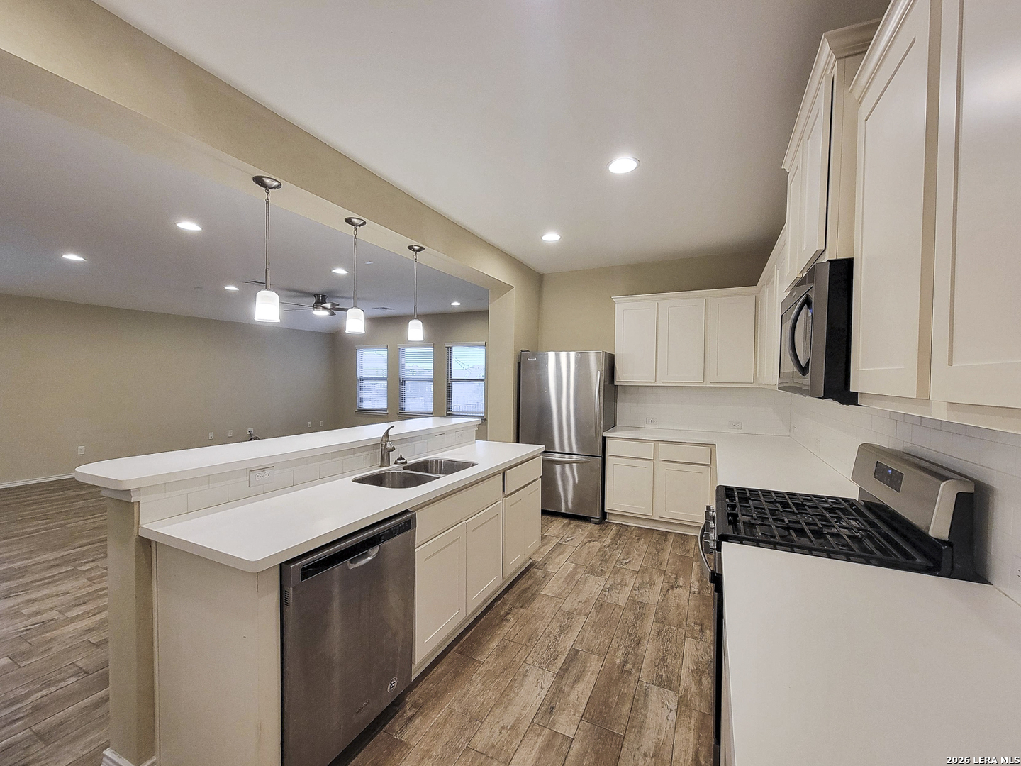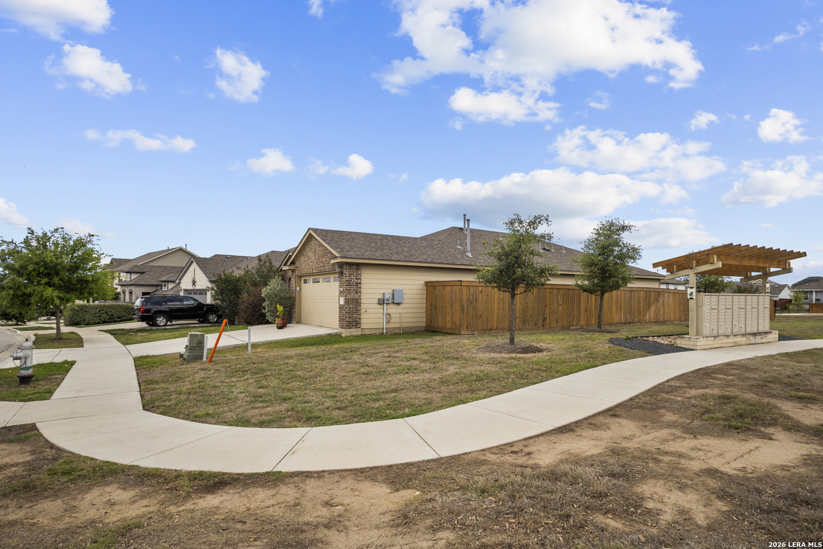 Welcome to this beautifully maintained 4-bedroom, 3-bath home located on a desirable corner lot in San Marcos. This home offers a spacious and open-concept layout, perfect for both everyday living and entertaining. The kitchen is a true centerpiece, featuring a large island with a breakfast bar, sleek countertops, stainless steel appliances, and gas cooking. It opens seamlessly to the expansive living room, where natural light pours in, creating a bright and inviting atmosphere. The flooring throughout the home has been replaced and there is no carpet, offering a clean, modern look and easy maintenance. The private primary suite offers a relaxing retreat with a spacious layout, a walk-in closet, and an ensuite bath complete with a double vanity, separate shower, and soaking tub. Step outside to enjoy the covered back patio and a large backyard with unobstructed sunset views, providing the perfect setting to unwind or host gatherings. Conveniently located with easy access to IH-35 less than a mile away, this home offers a prime location between Austin and San Antonio, making commuting a breeze. Enjoy being just one exit away from the renowned San Marcos Premium Outlets for top-tier shopping, dining, and entertainment. Plus, a new H-E-B is coming soon to the area, adding even more convenience and value. Residents also enjoy access to community amenities, including a swimming pool, playground, and sports courts. Don't miss the opportunity to own this well-appointed home in a growing and convenient San Marcos location.