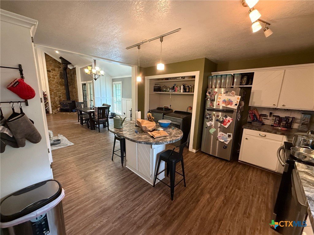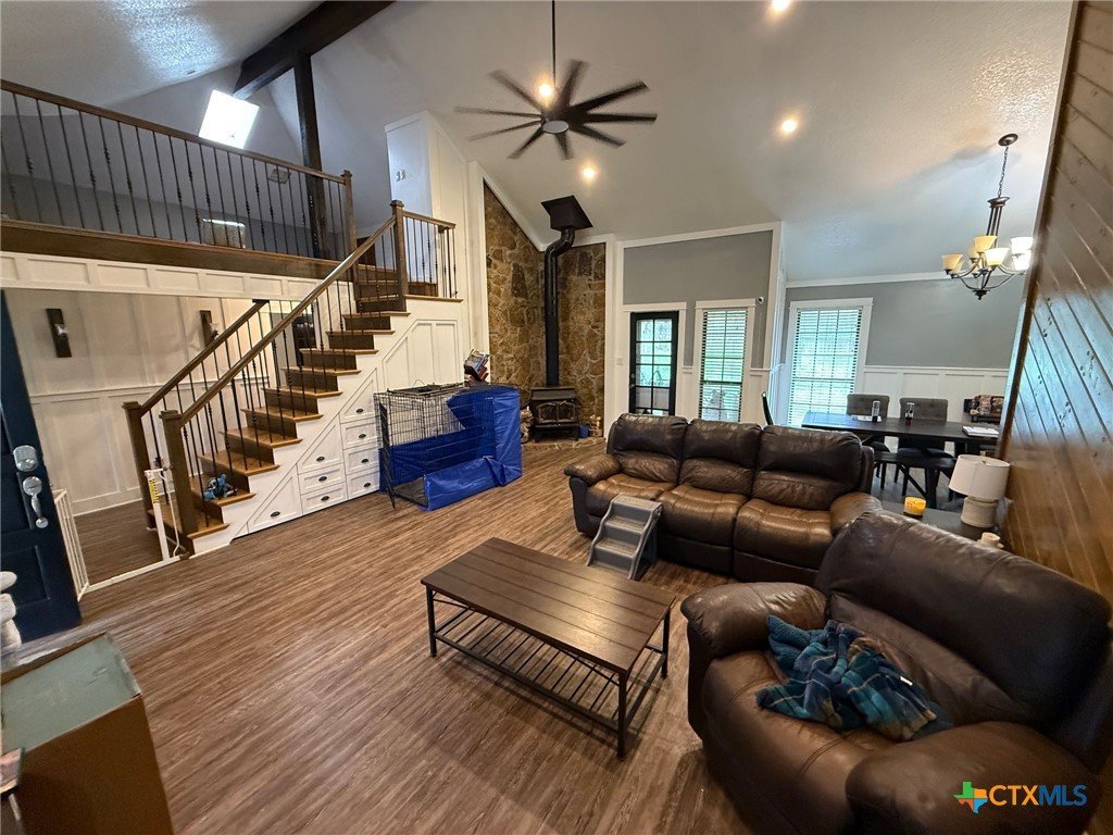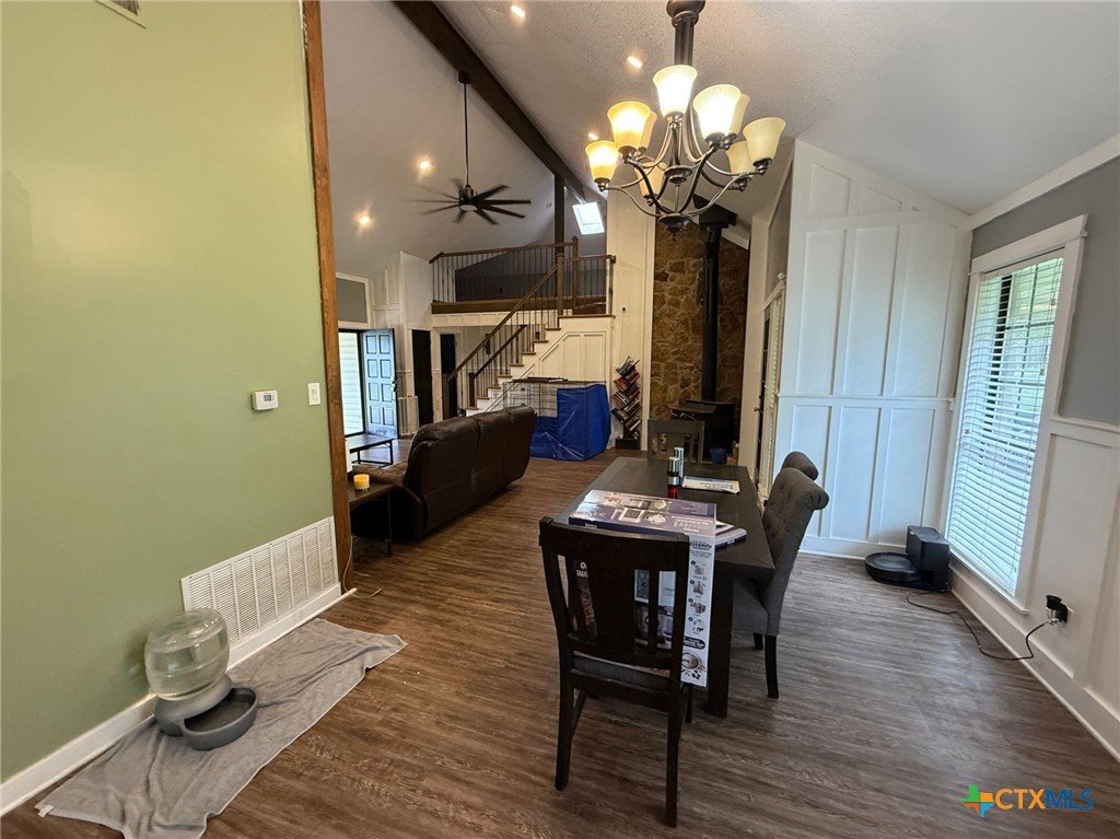 Charming Cameron Home! Enjoy this well-maintained home with no carpet and a stylish chandelier. Features include central electric AC (unit since 2002), a cozy wood-burning heater, and no HOA fees. The kitchen comes with a stove, dishwasher, and built-in microwave.