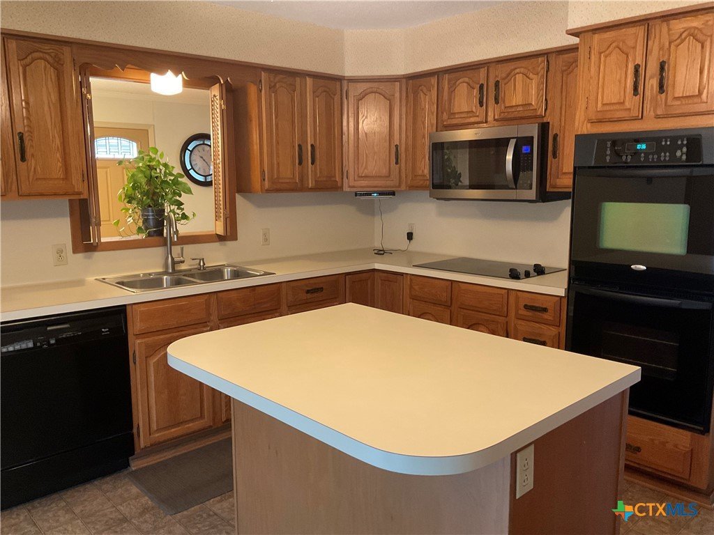 Tucked at the end of a quiet cul-de-sac, this charming 3-bedroom, 2-bath brick home blends thoughtful updates with everyday functionality. A covered front porch welcomes you in, while a new metal roof, fresh porch posts, and updated exterior front door enhance curb appeal. Inside, you'll find custom blinds, new windows, and an electric cooktop with a double oven—ideal for home chefs. The spacious utility room and separate pantry add valuable storage, while the attached carport includes a wired storage area perfect for an additional fridge or freezer. Outside, enjoy a shaded backyard enclosed with chain link fencing and a dedicated storage building for your mower and garden tools. Recent upgrades include home leveling and a new microwave, making this property truly move-in ready. Whether you're relaxing on the porch or hosting loved ones in the kitchen, this home offers comfort and convenience in a peaceful setting.