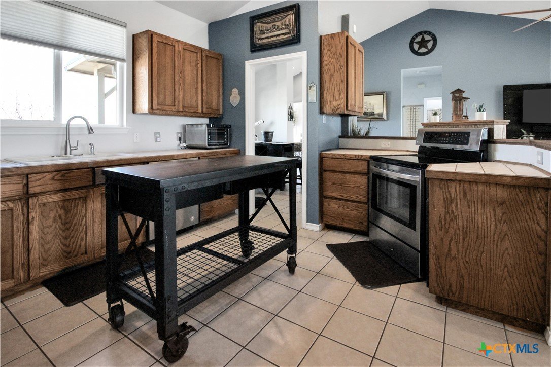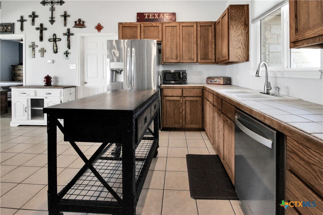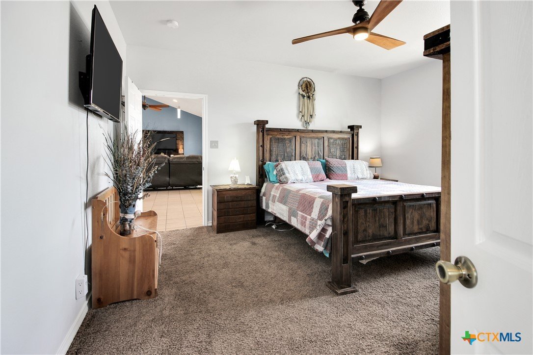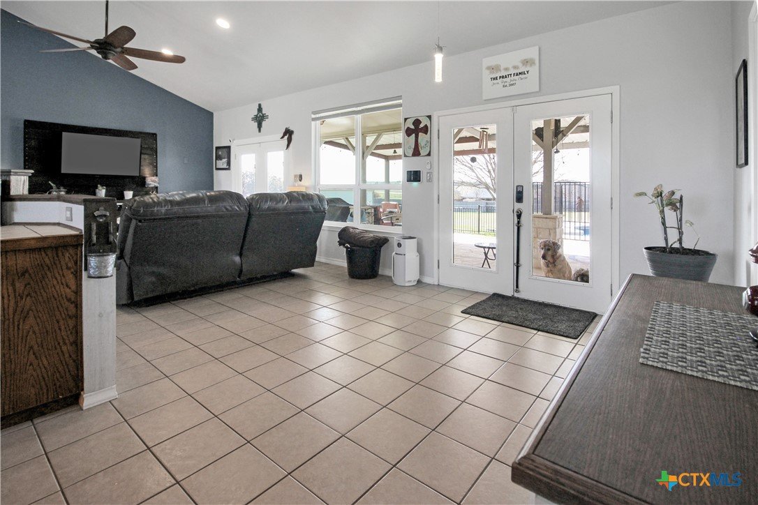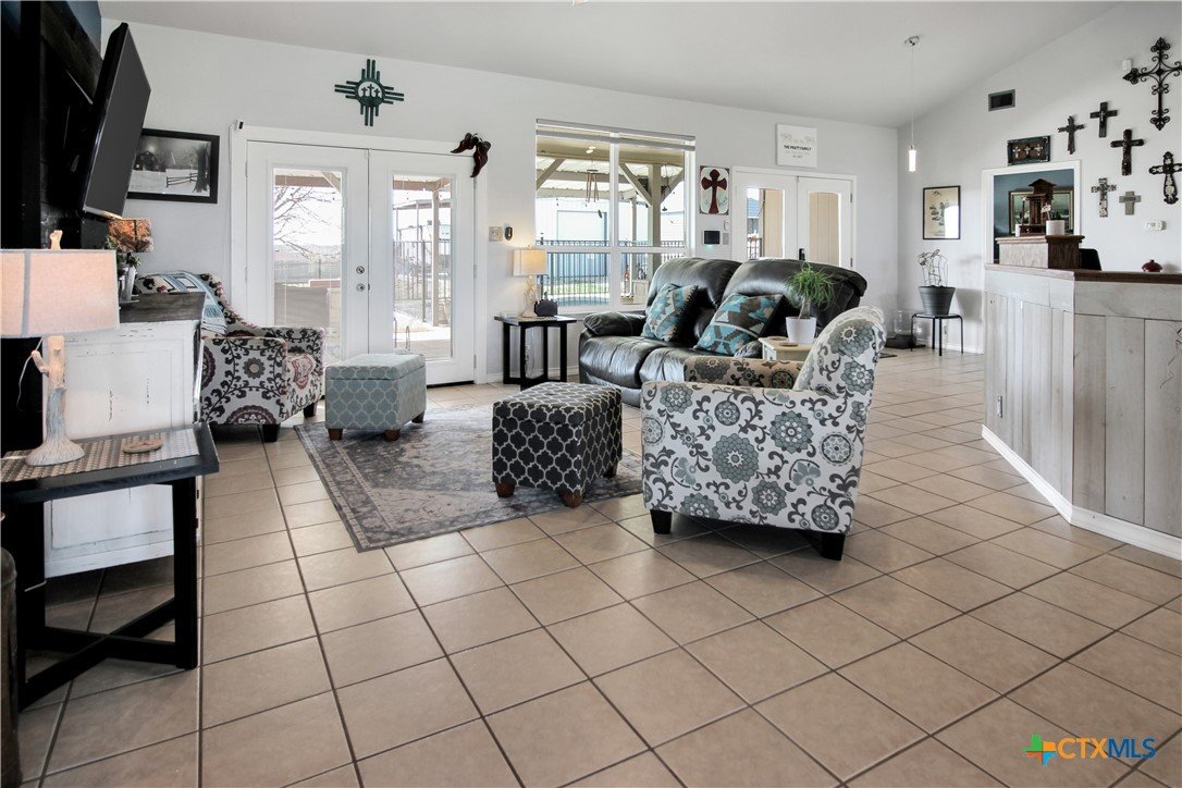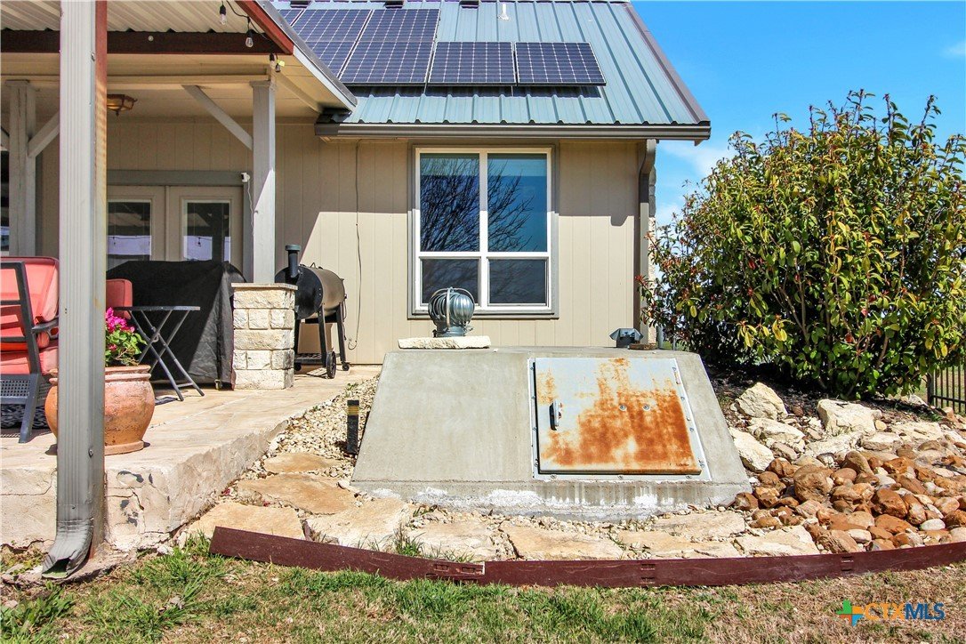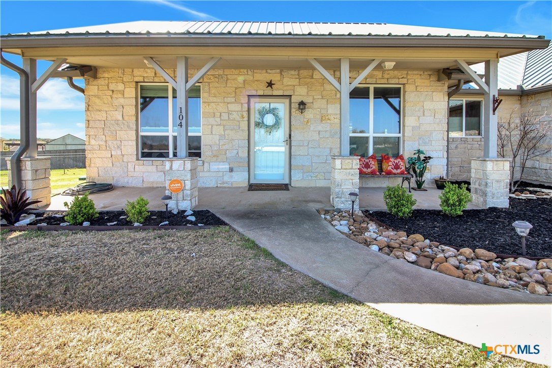 This charming home at 104 Oak Stone in the desirable community of Jarrell offers a fantastic blend of upgrades and unique features that will appeal to everyone in the family. Nestled on 1.17 acres, it boasts a 30x30 metal shop with a 15-foot lean-to, perfect for shielding your RV or recreational vehicles from the Texas sun. With two RV hookups—one for you and one for your guests—there's plenty of space for everyone to enjoy. Step outside to an expansive extended patio and a sparkling saltwater pool, perfect for those warm Texas summers. The rod iron fencing around the pool ensures safety for pets and small children. Additional highlights include solar panels, new windows throughout, gutters, a storm shelter storm door, and a 2024 hot water heater. The custom blinds, tile floors, and stainless steel appliances add an extra touch of elegance. The inclusion of 2 community swimming pools, sports courts, playgrounds, and walking trails makes it a well-rounded place for recreation and socializing. This home is truly one of a kind, with NO active HOA, and a must-see for anyone seeking comfort, style, and functionality!
