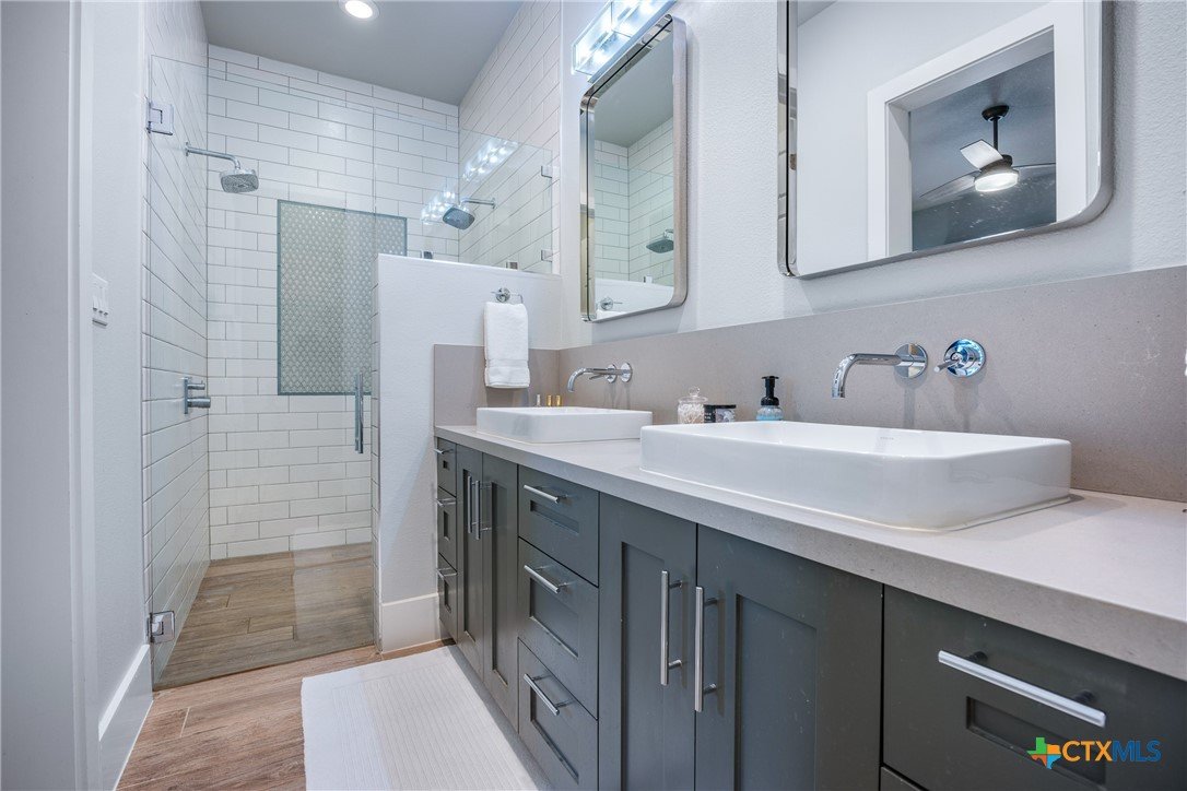 *Unbeatable River Value **MOTIVATED SELLER - OPEN TO NEGOTIATIONS** Experience refined, modern river living with this special property, priced below Hays CAD 2025 market value. Enjoy exclusive Blanco River access and your own seasonal backyard creek. Set on an elevated lot, this home features a modern take on the classic dogtrot design, with an airy breezeway that seamlessly unites bright interiors and inviting outdoor spaces—perfect for hosting gatherings. Perched on a ridge overlooking a creek, it’s just steps from one of Wimberley’s deeper sections of the Blanco River and a 10- to 15-minute walk to an array of restaurants, bars, and the lively town square. Inside, the expansive open-concept great room flows to generous patios designed for indoor/outdoor living. An outdoor living room, dedicated grilling area, cozy firepit, mature trees, and panoramic views create a setting ideal for both intimate get-togethers and large celebrations. Modern sophistication is evident throughout the residence. Premium fixtures, robust stainless steel KitchenAid appliances, and a cutting-edge indoor/outdoor sound system blend contemporary style with practical luxury. Every bedroom includes its own private full bath, ensuring comfort and convenience. The gourmet kitchen is a chef’s dream, featuring a spacious island, gas cooking, and a microwave/convection oven, complemented by an under-counter icemaker, ideal for larger gatherings. A laundry room—with ample cabinetry and wine fridge—further enhances daily living. Located on a private road with fewer than a dozen neighbors, this community is renowned for its spirited Fourth of July and Halloween celebrations. Constructed with the ground floor elevated above the new FEMA base flood level, this home marries peace of mind with modern style and exclusive river access. Step into a lifestyle where contemporary design meets natural beauty, convenience and excellent value—a rare opportunity to embrace the complete Wimberley experience.