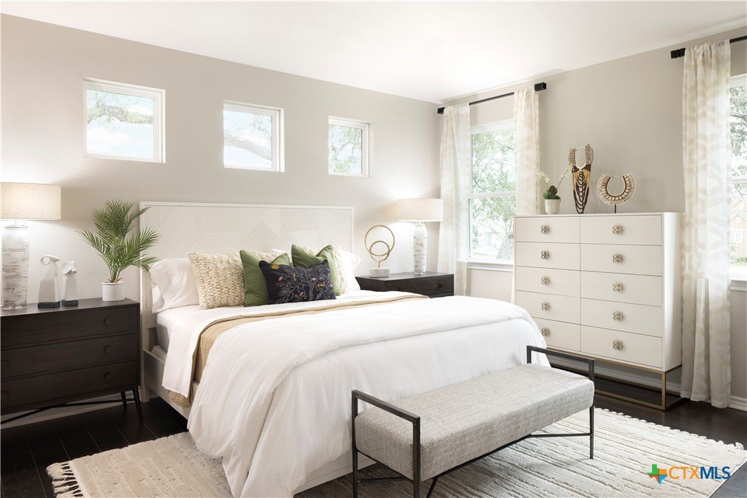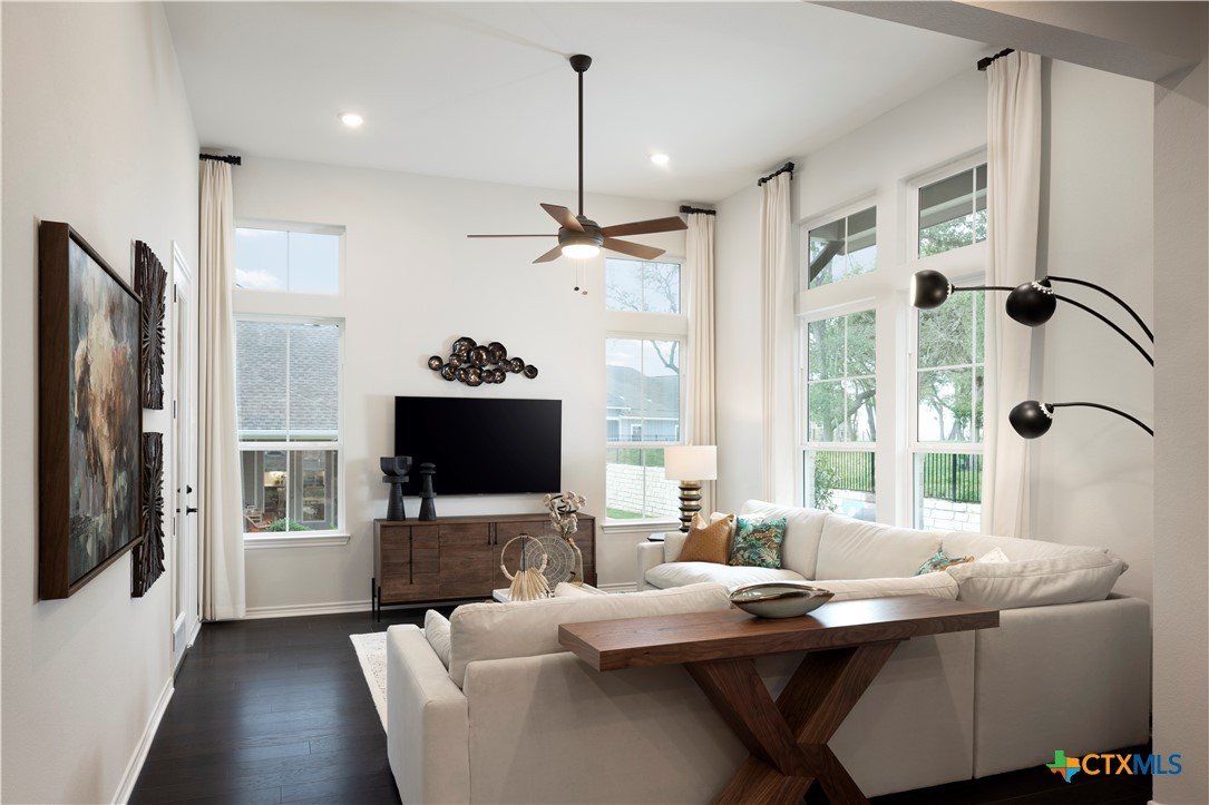 Evia Model with upgraded SHORE flooring, quartz countertops, optional study, 8' doors downstairs, washer/dryer, 21 cu.ft. refrigerator, Express cordless blinds
