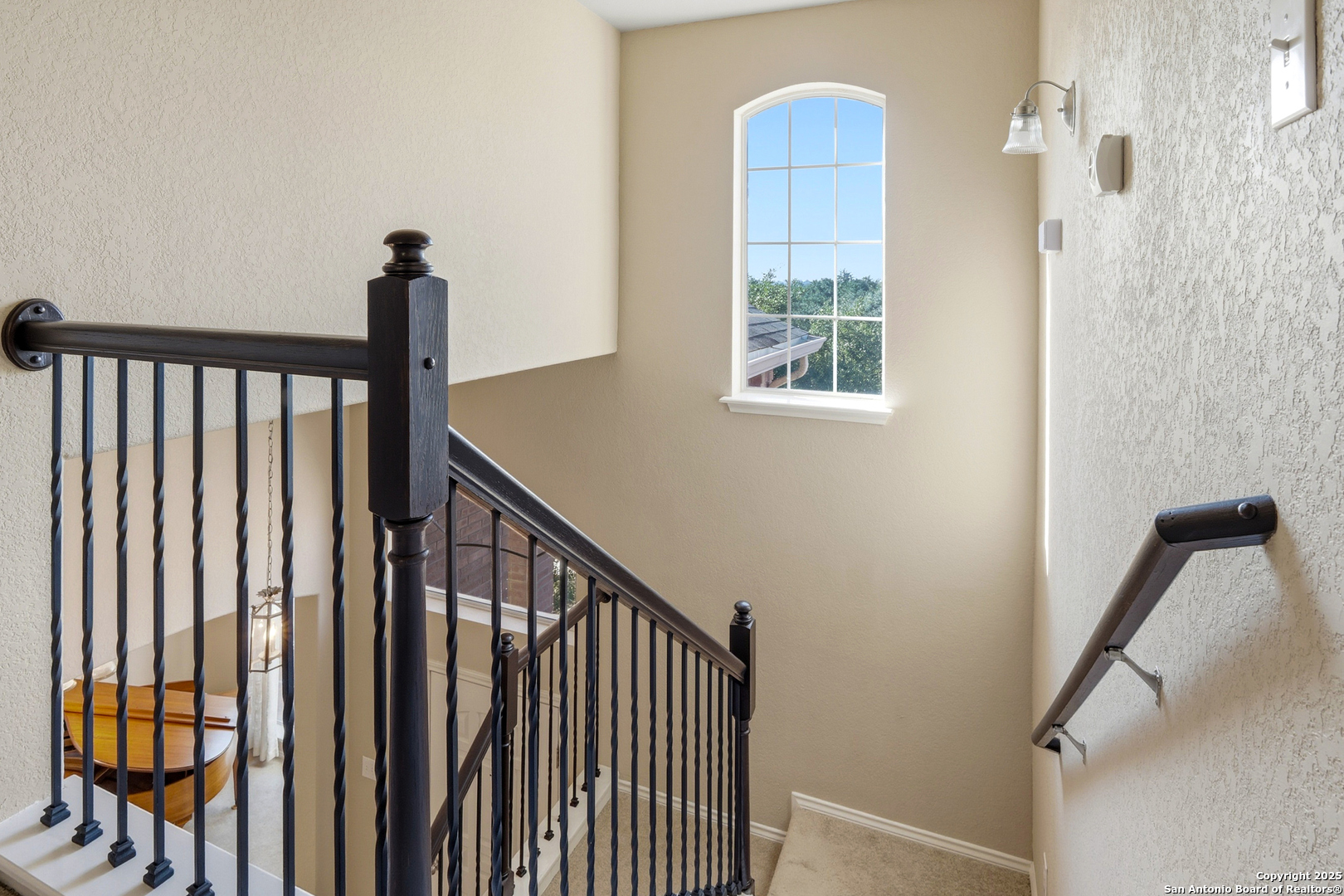 Welcome to your next home in the highly desirable Stone Creek community on San Antonio's Far West Side. Situated on a premium .28-acre corner lot, this 4-bedroom, 2.5-bath, 2,627 sq ft home offers extra space, mature trees, and standout curb appeal. Step inside to an inviting layout featuring an island kitchen perfect for cooking and entertaining, a spacious living area, and a glassed-in porch ideal for relaxing year-round. This thoughtful floor plan includes one bedroom downstairs-perfect for guests or a home office-while the owner's suite and additional upstairs bedrooms are all generously sized with walk-in closets, providing ample storage and comfort for the whole family. Outside, enjoy the larger lot size with plenty of room for outdoor living, gardening, or future projects. Located in Stone Creek, you're minutes from top-rated schools, shopping, dining, and major highways, all while enjoying the charm of an established neighborhood with beautiful tree-lined streets. Don't miss this rare corner-lot opportunity in one of the area's most sought-after communities.
