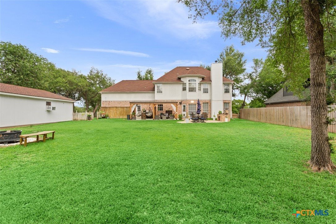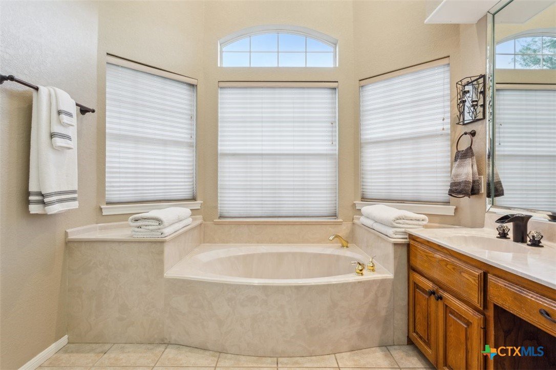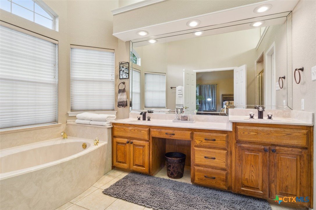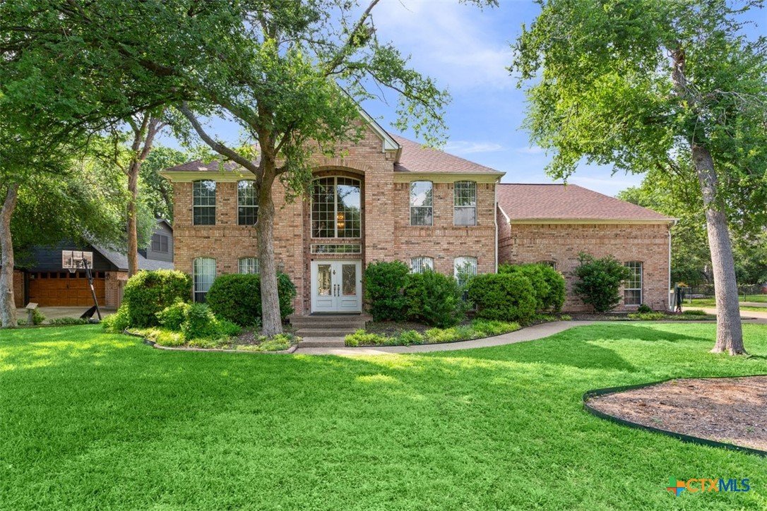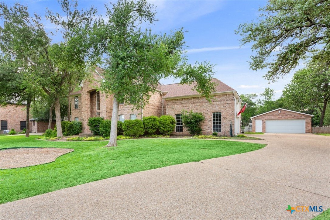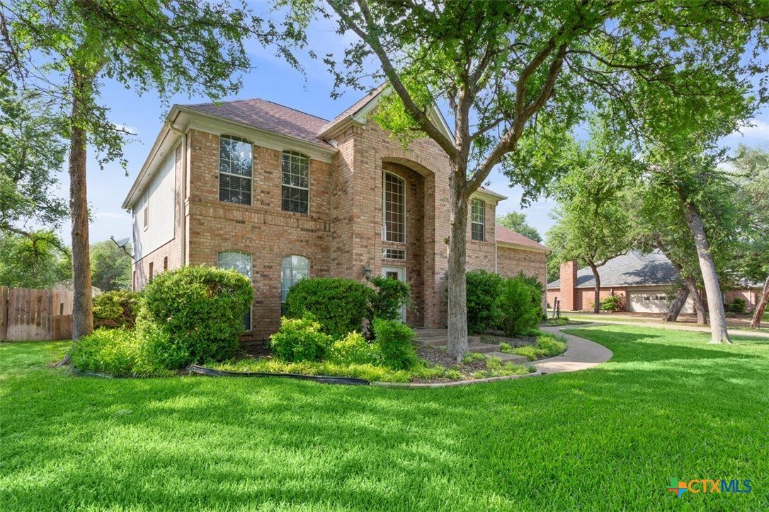 Belton Schools. Low Tax Rate. Prestigious Northcliffe location on a half acre lot. Beautiful home and yard with mature trees, 4 car oversized garages and green space behind you for wonderful privacy and family enjoyment. This home boasts 4 bedrooms plus a bonus room all upstairs. There are 2 primary bedrooms, 3 full baths and a half bath which is located downstairs. A soaring grand staircase is a showcase in the foyer. The foyer is flanked by an office and a formal dining room. The family room features a wet bar, wood burning fireplace and built ins. The kitchen has custom cabinets, an island, double ovens and views onto the backyard. The breakfast space opens up to the kitchen and the living room for a cozy open concept. Upstairs the primary has tall ceilings, soaking tub, separate shower and double vanity. There is a second primary upstairs plus 2 more bedrooms and a third full bath. So many possibilities. There is a bonus room over the garage. This beautiful home and yard are ready for you to Call it Home!
