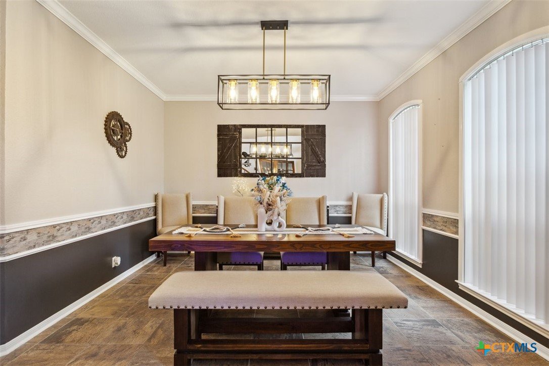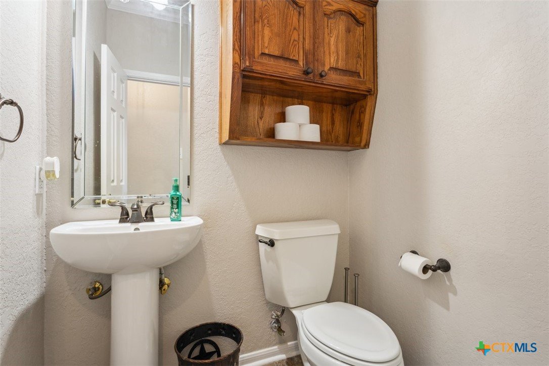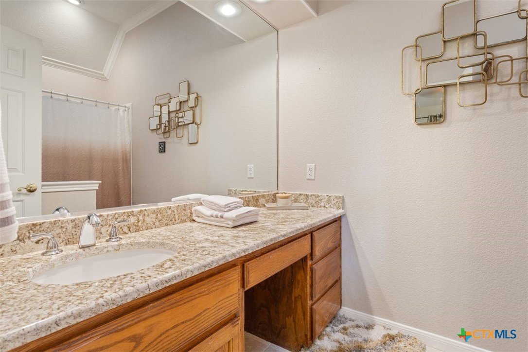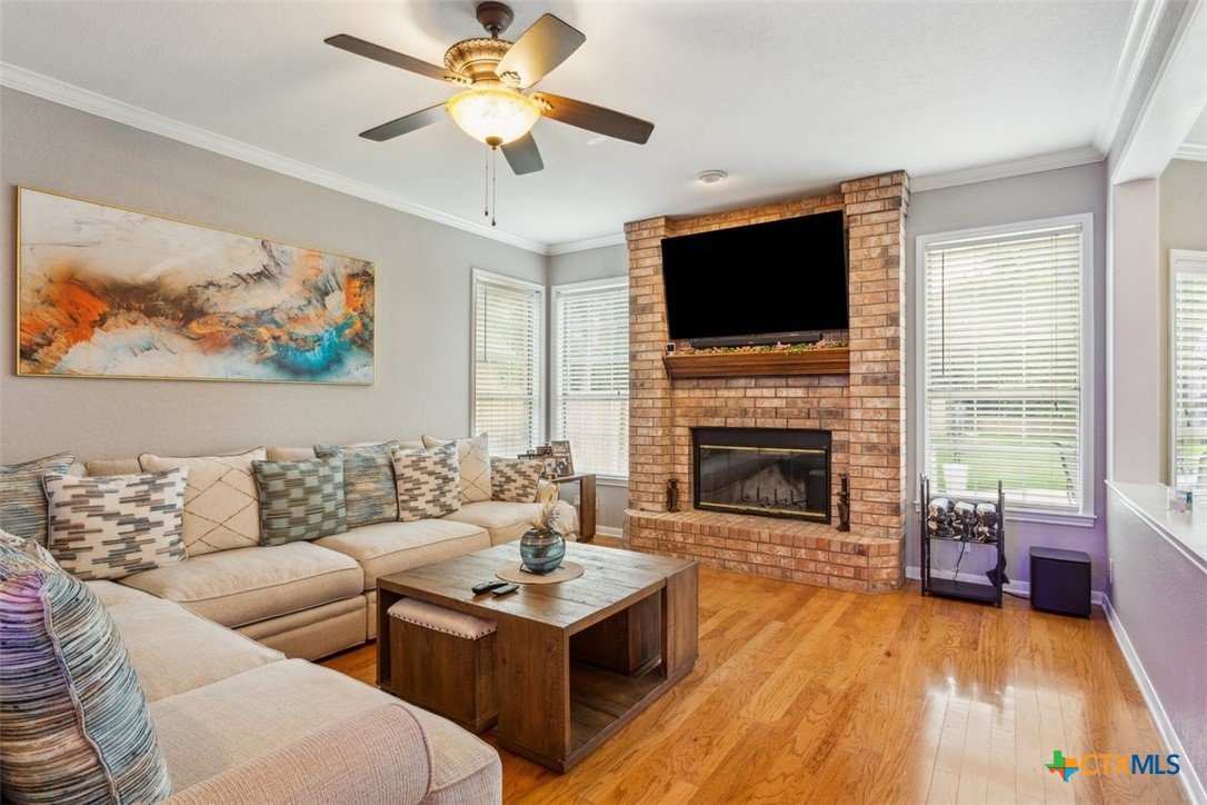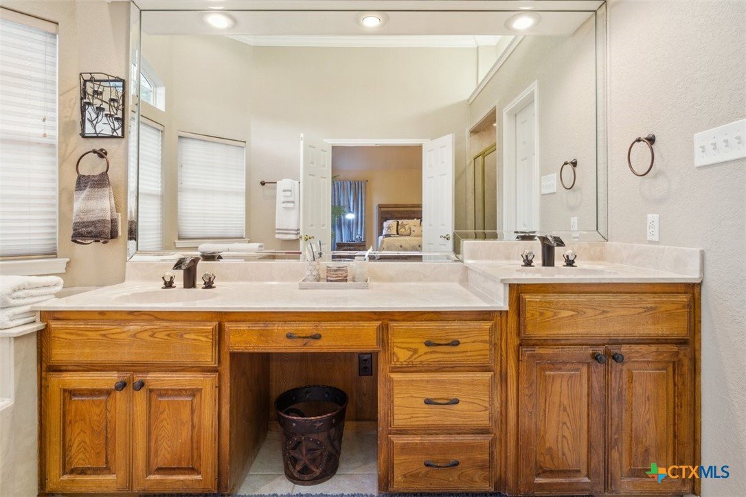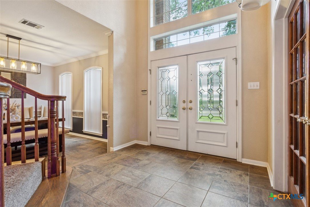 Belton Schools. Low Tax Rate. Prestigious Northcliffe location on a half acre lot. Beautiful home and yard with mature trees, 4 car oversized garages and green space behind you for wonderful privacy and family enjoyment. This home boasts 4 bedrooms plus a bonus room all upstairs. There are 2 primary bedrooms, 3 full baths and a half bath which is located downstairs. A soaring grand staircase is a showcase in the foyer. The foyer is flanked by an office and a formal dining room. The family room features a wet bar, wood burning fireplace and built ins. The kitchen has custom cabinets, an island, double ovens and views onto the backyard. The breakfast space opens up to the kitchen and the living room for a cozy open concept. Upstairs the primary has tall ceilings, soaking tub, separate shower and double vanity. There is a second primary upstairs plus 2 more bedrooms and a third full bath. So many possibilities. There is a bonus room over the garage. This beautiful home and yard are ready for you to Call it Home!