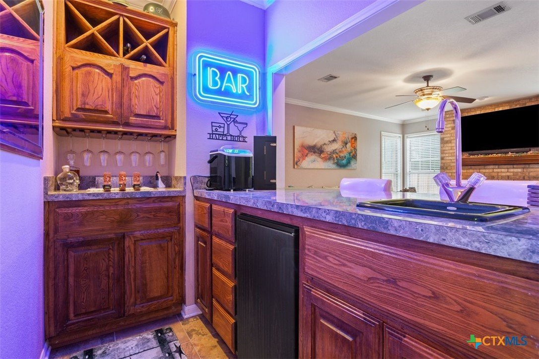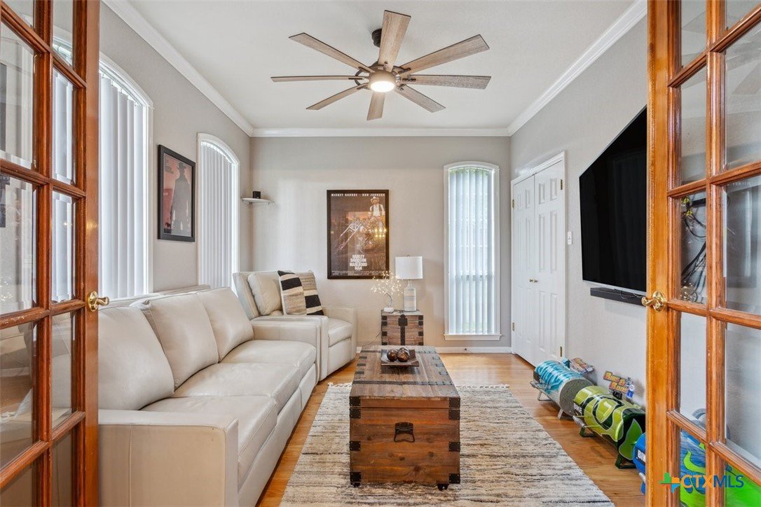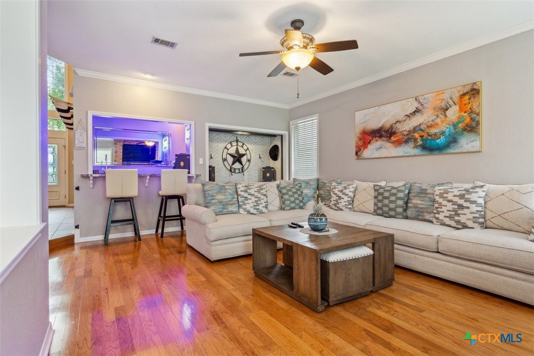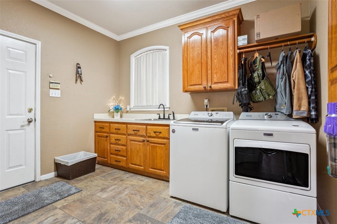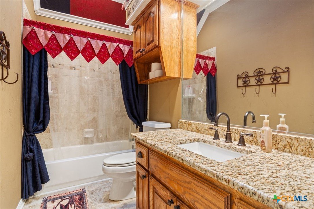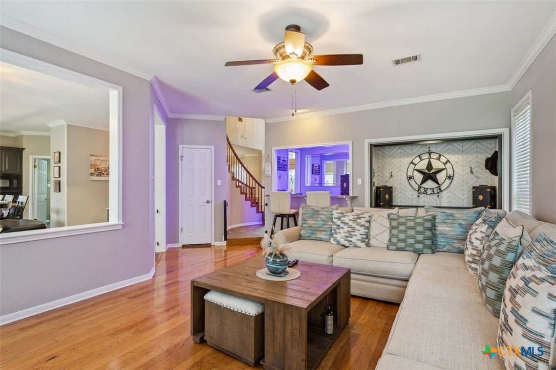 Belton Schools. Low Tax Rate. Prestigious Northcliffe location on a half acre lot. Beautiful home and yard with mature trees, 4 car oversized garages and green space behind you for wonderful privacy and family enjoyment. This home boasts 4 bedrooms plus a bonus room all upstairs. There are 2 primary bedrooms, 3 full baths and a half bath which is located downstairs. A soaring grand staircase is a showcase in the foyer. The foyer is flanked by an office and a formal dining room. The family room features a wet bar, wood burning fireplace and built ins. The kitchen has custom cabinets, an island, double ovens and views onto the backyard. The breakfast space opens up to the kitchen and the living room for a cozy open concept. Upstairs the primary has tall ceilings, soaking tub, separate shower and double vanity. There is a second primary upstairs plus 2 more bedrooms and a third full bath. So many possibilities. There is a bonus room over the garage. This beautiful home and yard are ready for you to Call it Home!