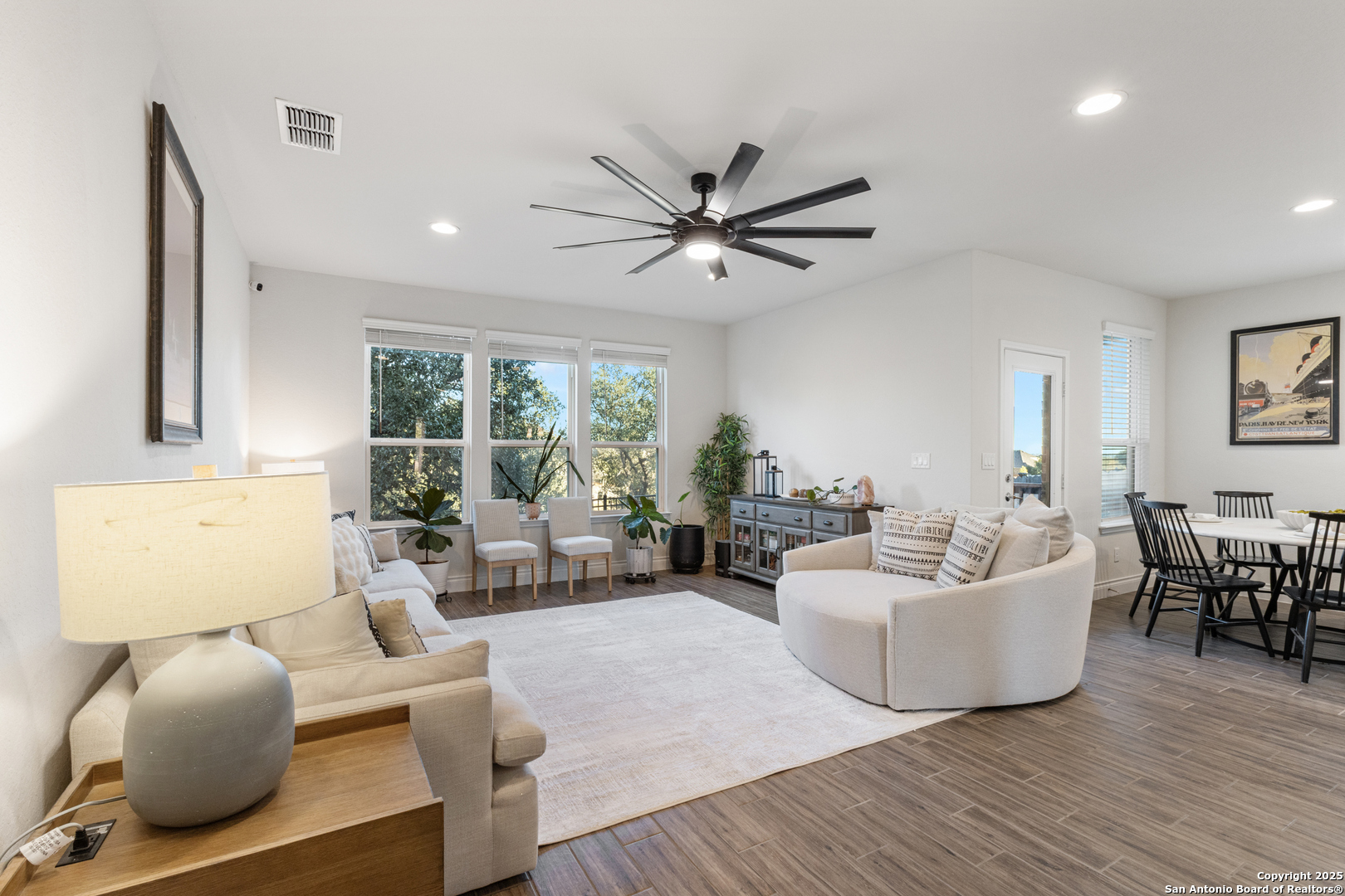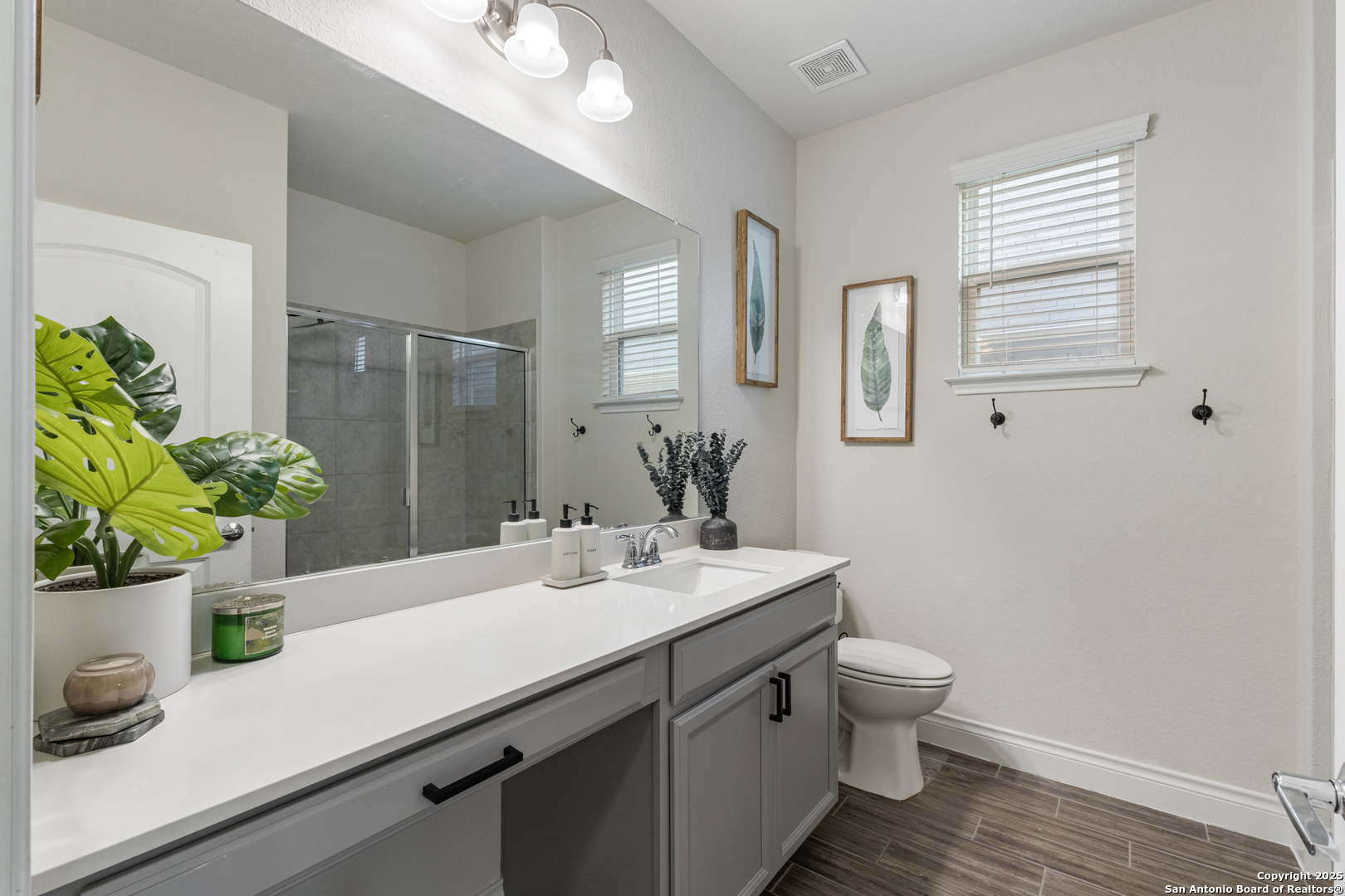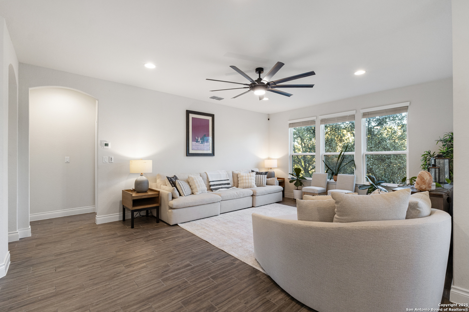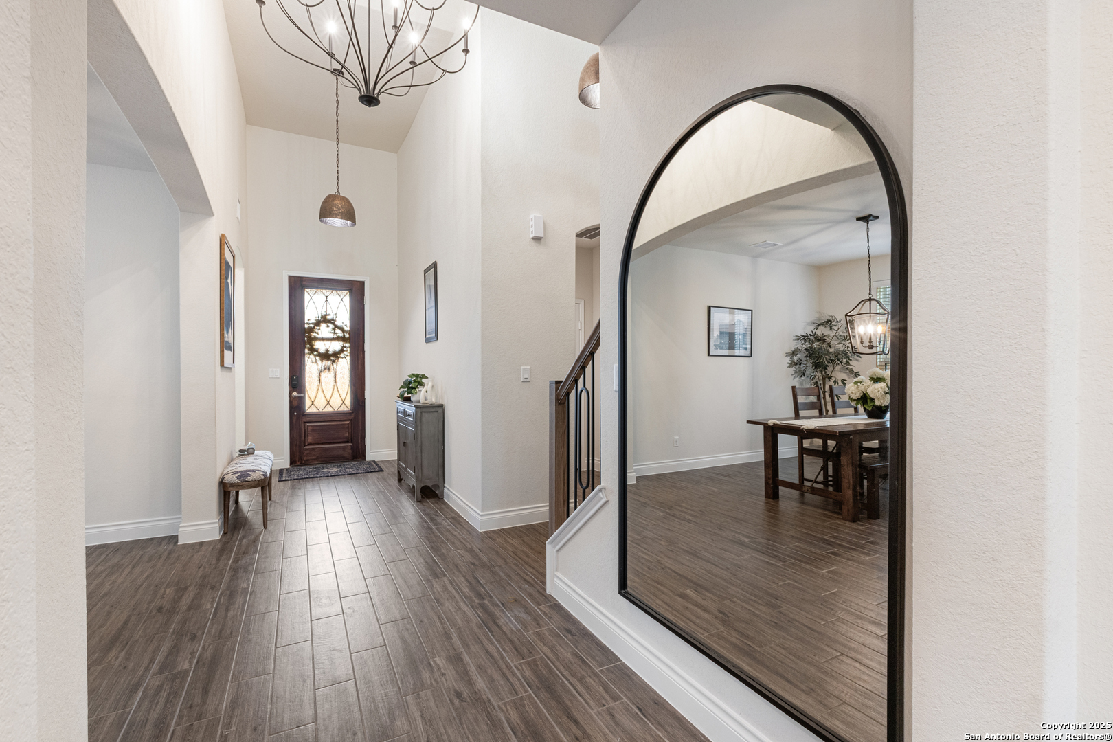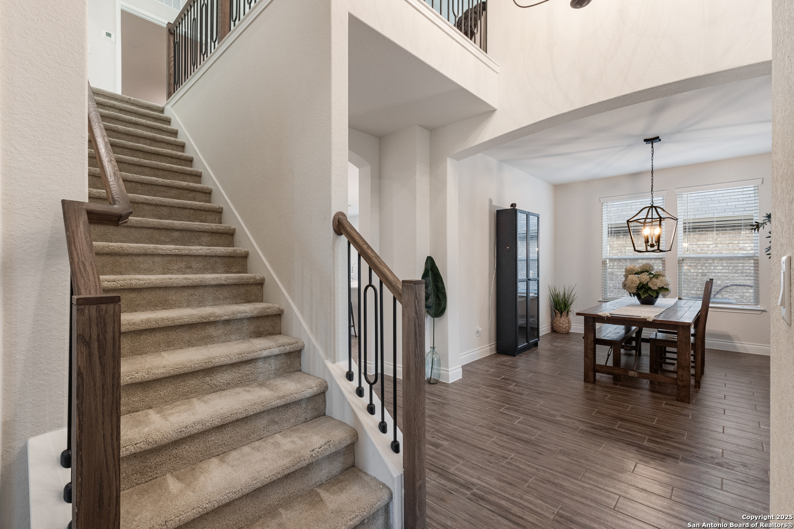THIS IS THE ONE!!!! Over 3300 sq ft of pure beauty featuring a 3 car garage, 4 bedrooms, 3 full bathrooms, an office, loft, and media room, on a super unique greenbelt lot with only one neighbor. Step inside to soaring high ceilings and a stunning chandelier that create a grand first impression. A plethora of windows fill the home with natural light and frame peaceful views of mature trees. Two dining areas, two office spaces, the primary suite, laundry room, and a secondary bedroom with a full bathroom are conveniently located on the first floor. Up the grand staircase is the loft, fully wired media room, two more bedrooms, plus another full bath. So much room for activities!! The builder doesn't have this floor plan with a 3 car garage, but if they did on a lot like this- you would be paying close to $100,000 more!!! Take advantage of this market and schedule your showing today!!