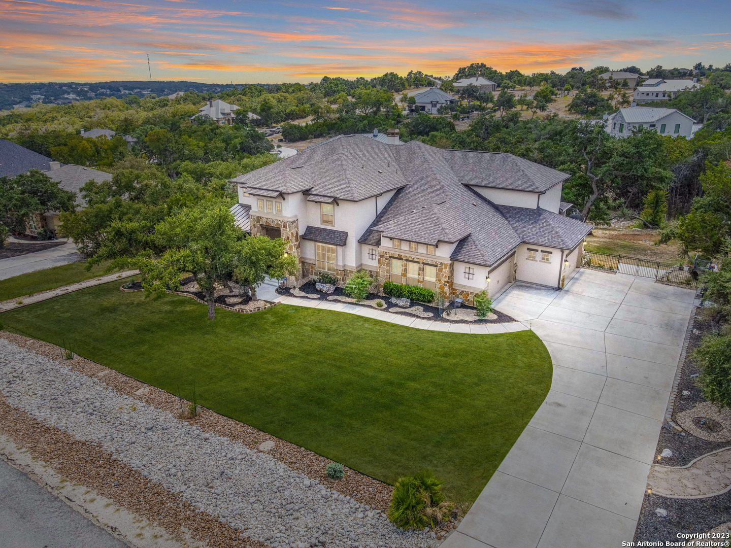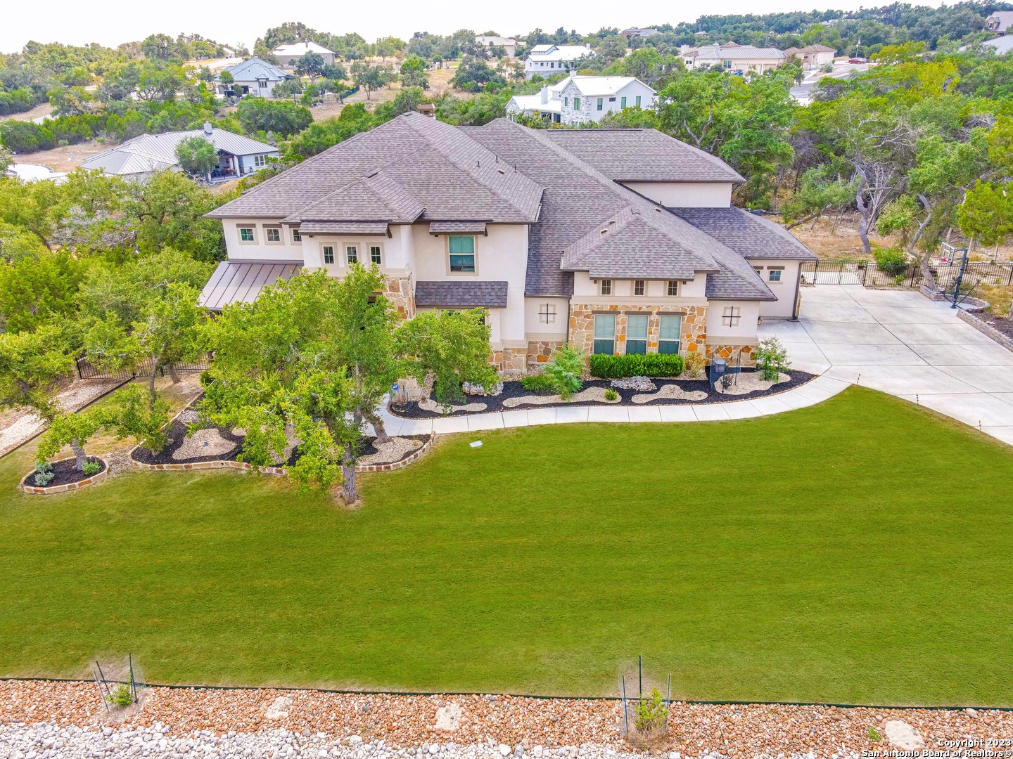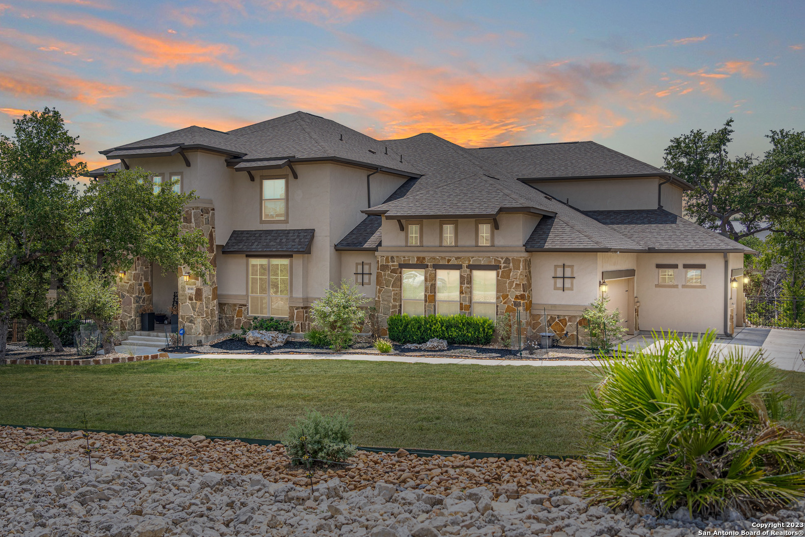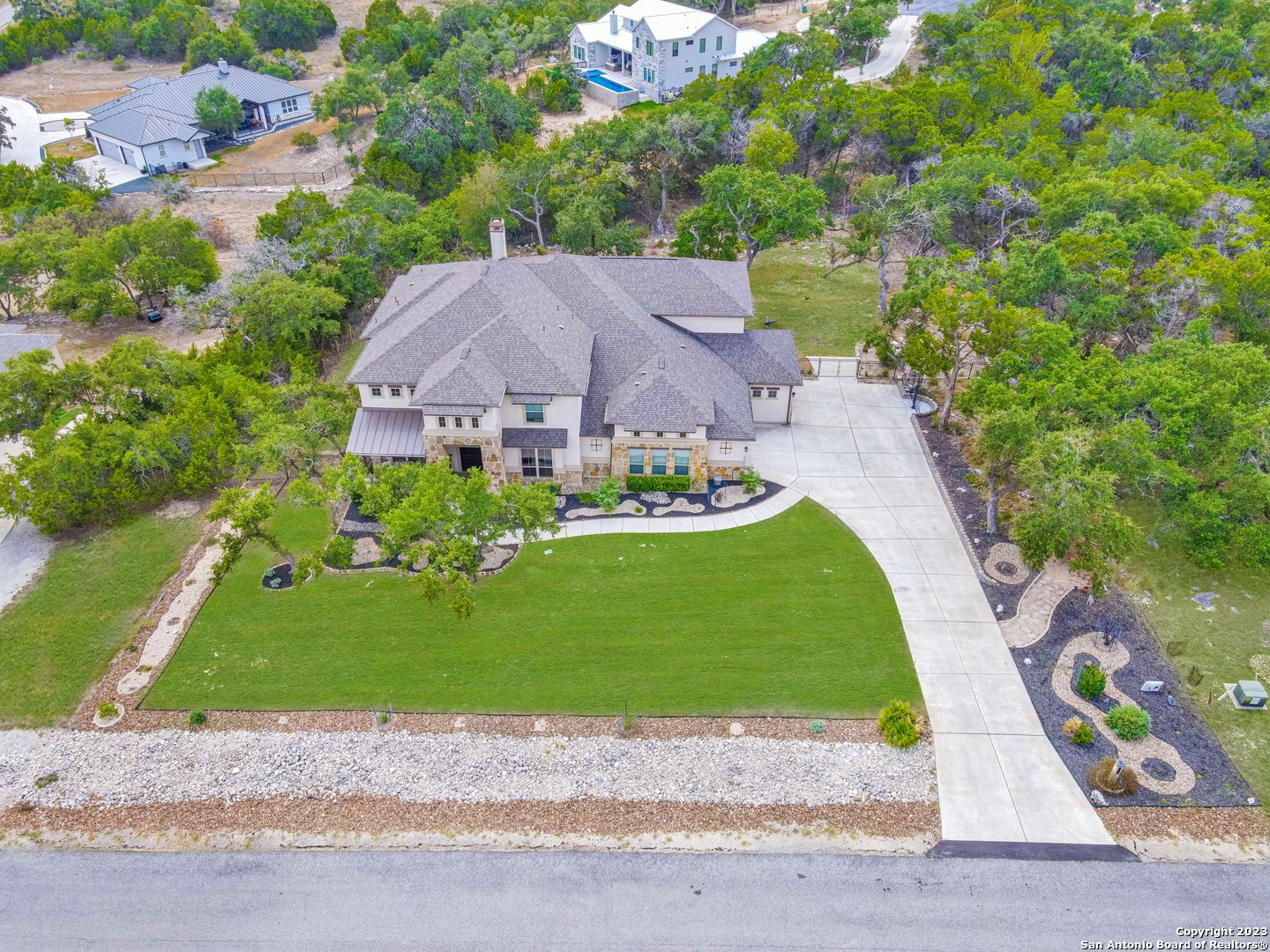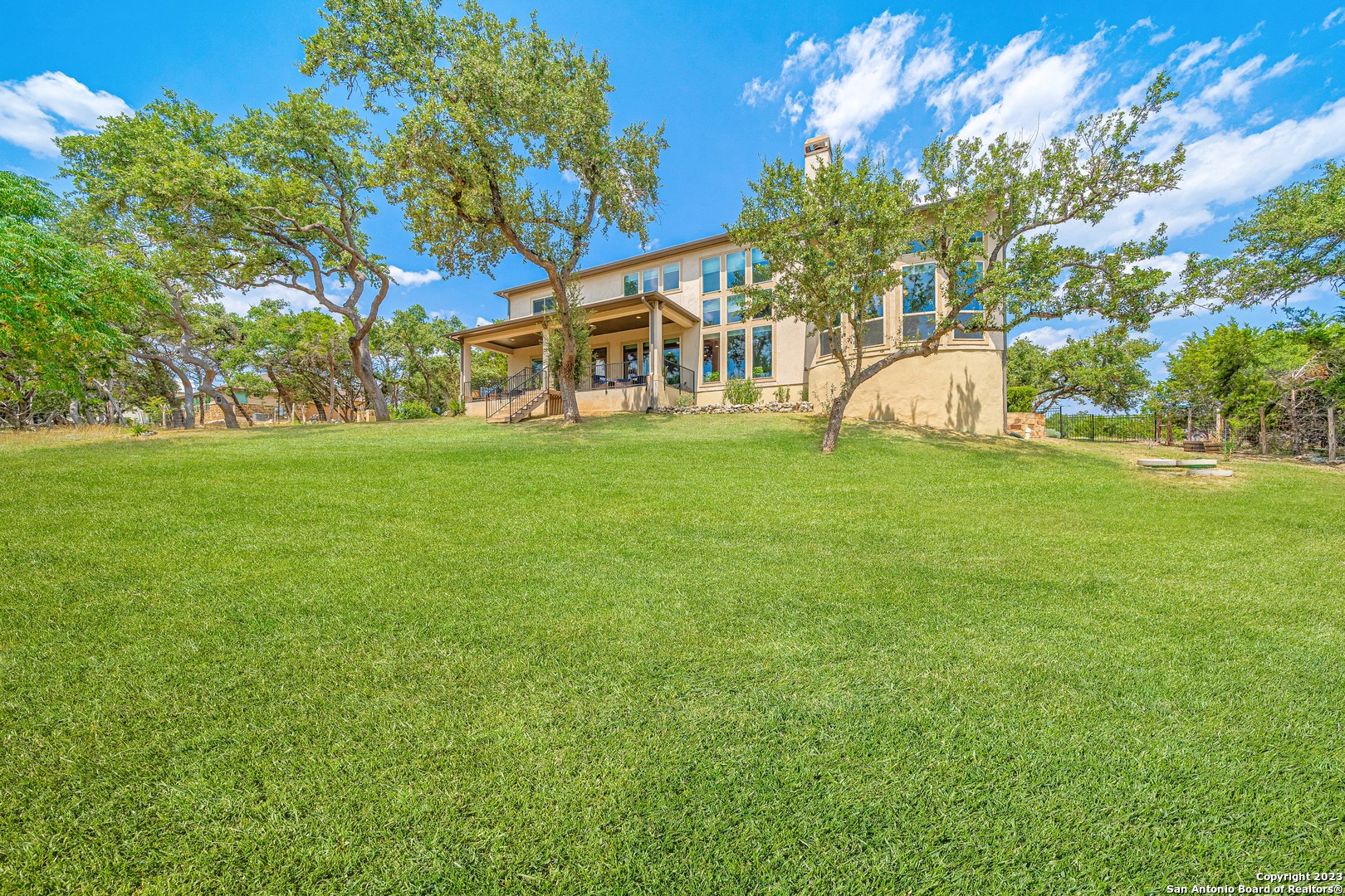 Why wait to build when you can own this meticulously maintained home sooner? Inviting & abundance are the cornerstones of this Gem nestled in the highly desirable community of Vintage Oaks! 1+ acres and Slightly shy of 5000 sqft, with 5 bedrooms and 4.5 baths & 4-Car Garage, there's plenty of space for your whole family to spread out & enjoy. As you enter the home, you'll be greeted by a Grand Mahogany front door and stunning hardwood floors. The Rotunda foyer & curved staircase w/ iron balusters add elegance while the study/library w/French doors and the formal dining room provide space for work & fine dining. The various arched entries throughout the home are intrinsic to the soaring ceilings, open floorplan, and exquisite features creating a spacious welcoming atmosphere. Whether for relaxation or socializing, the living room exudes a sense of refined aesthetics. The plethora of large windows allows an abundance of natural light to fill the space, highlighting the room's expansive & creative layout. The placement of the cast stone fireplace blends harmoniously, not only providing a functional purpose but also serving as a visually appealing centerpiece. The overall architectural design creates a balance between modern elegance and timeless charm. Not only is this home stunning, but it is also energy-efficient. With features such as a New Water heater, FreshAir Intake system, Techshield radiant barrier, Energy Star appliances, and a PEX plumbing system for water quality, you can enjoy a comfortable eco-friendly lifestyle and savings year-round! The stunning Owner's suite allows for a serene escape after a long day. Thoughtfully located on the first level, offers privacy & elegance w/ its sense of grandeur beveled ceilings & large bay windows, allowing for picturesque views of nature. The bedroom exudes a sense of tranquility w/ an enhanced atmosphere of comfort. Indulge in luxurious relaxation as you step into this spa-like oasis -where a gorgeous walk-in shower & the enchanting garden tub awaits beneath the gentle glow of natural light. The Guest suite also located on the first level offers convenience & privacy for your guests, providing the ultimate retreat experience. Entertain family & friends as this home also features a massive game room and a theater room, complete with a built-in state-of-the-art surround sound speaker system, elevated flooring, & ambient changing hue lighting. Bringing the unparalleled cinematic experience home & enjoying endless entertainment options! Ignite your culinary creativity in the bold & vibrant kitchen, where the warm embrace of crimson walls sets the stage for delicious creations & lively conversations. With granite countertops, a beautiful backsplash, rich cabinetry & stainless-steel appliances including a gas stove, it's a chef's dream! The refrigerator is a special order for a custom fit. 1 of the 2 refrigerators conveys! The Extraordinary arched entry, island w/ built-in seating space, and butler's pantry add to its opulence & beauty. Take in the beauty of nature & deer from the large extended covered patio which is perfect for enjoying a cup of coffee or engaging in conversations with/ loved ones. The lot boasts mature trees & includes planted lemon & lime trees, cherry blossom, fragrant lavender, and Fully Covered Gutters to help eliminate leaf cleaning. A spectacular Pool plan w/ extended decking & concrete is also available for review. Let your imagination soar as you picture yourself in this luxurious abode, enjoying all that the Historic Hill Country of New Braunfels has to offer. Located w/in a convenient commute to the neighboring cities of San Antonio & Austin, as well as the historic town of Gruene & Canyon Lake. The List goes on! Definitely a MUST SEE!! **A seller's Concession to assist with Closing costs, Interest Rate buy-downs, etc. may be available with an acceptable offer**