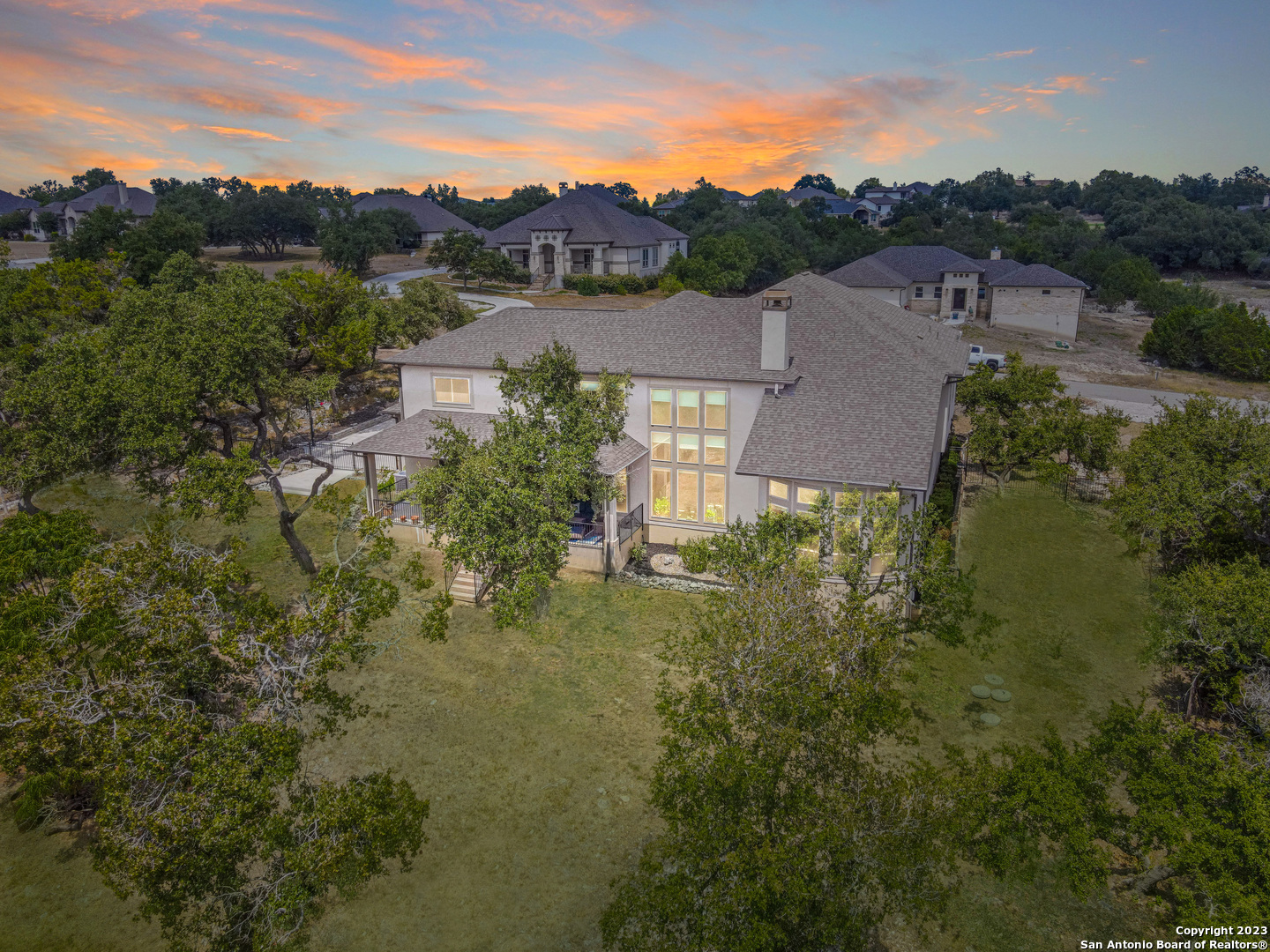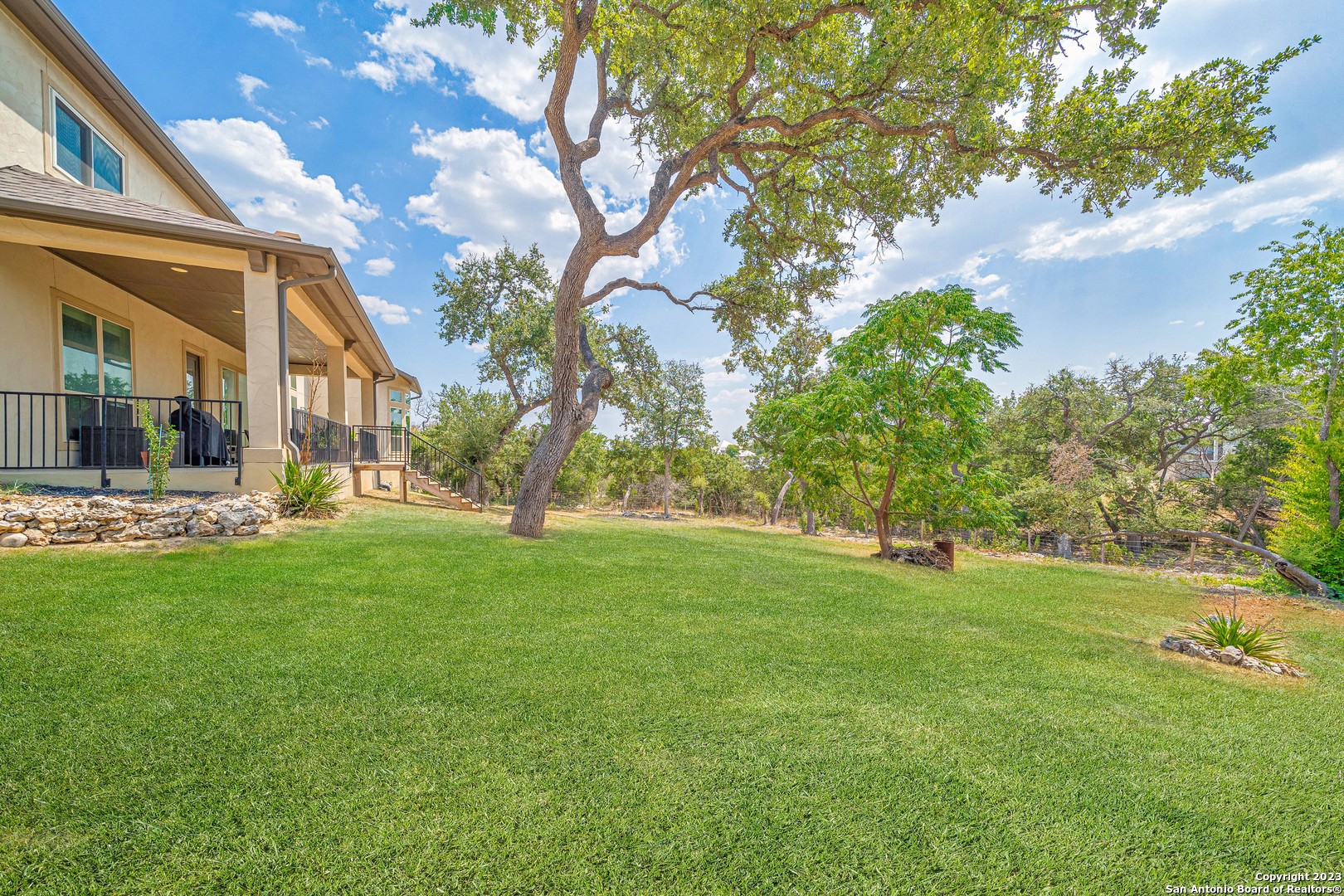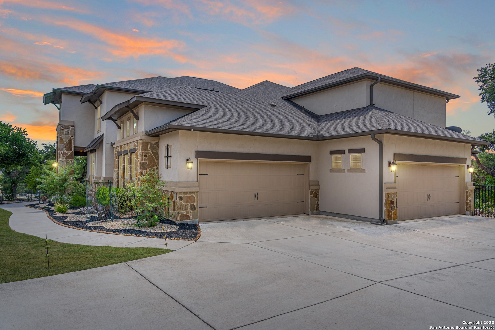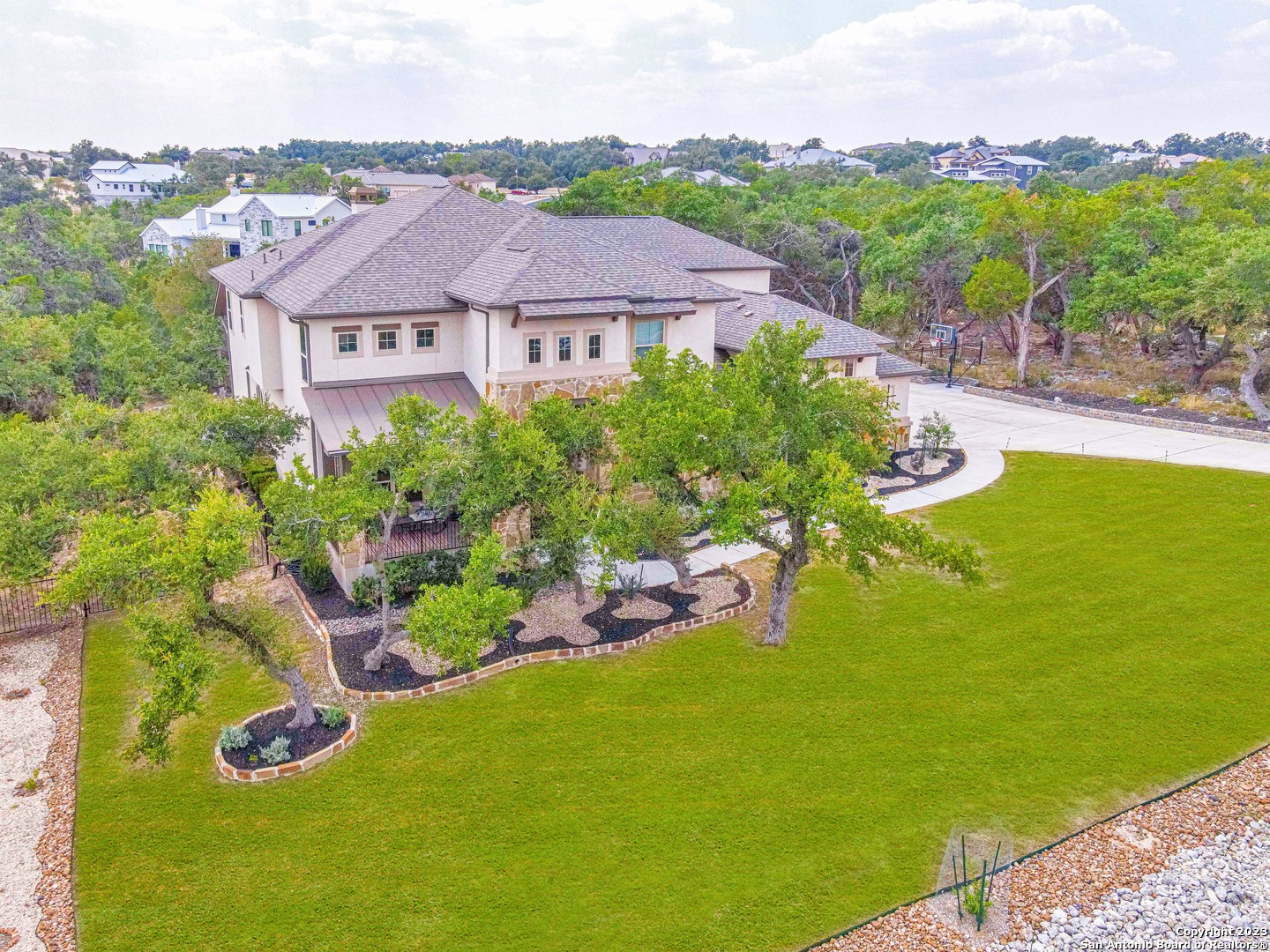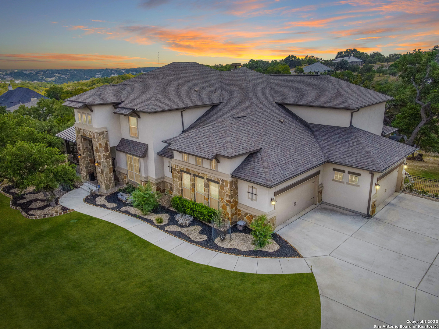 Why wait to build when you can own this meticulously maintained home sooner? Inviting & abundance are the cornerstones of this Gem nestled in the highly desirable community of Vintage Oaks! 1+ acres and Slightly shy of 5000 sqft, with 5 bedrooms and 4.5 baths & 4-Car Garage, there's plenty of space for your whole family to spread out & enjoy. As you enter the home, you'll be greeted by a Grand Mahogany front door and stunning hardwood floors. The Rotunda foyer & curved staircase w/ iron balusters add elegance while the study/library w/French doors and the formal dining room provide space for work & fine dining. The various arched entries throughout the home are intrinsic to the soaring ceilings, open floorplan, and exquisite features creating a spacious welcoming atmosphere. Whether for relaxation or socializing, the living room exudes a sense of refined aesthetics. The plethora of large windows allows an abundance of natural light to fill the space, highlighting the room's expansive & creative layout. The placement of the cast stone fireplace blends harmoniously, not only providing a functional purpose but also serving as a visually appealing centerpiece. The overall architectural design creates a balance between modern elegance and timeless charm. Not only is this home stunning, but it is also energy-efficient. With features such as a New Water heater, FreshAir Intake system, Techshield radiant barrier, Energy Star appliances, and a PEX plumbing system for water quality, you can enjoy a comfortable eco-friendly lifestyle and savings year-round! The stunning Owner's suite allows for a serene escape after a long day. Thoughtfully located on the first level, offers privacy & elegance w/ its sense of grandeur beveled ceilings & large bay windows, allowing for picturesque views of nature. The bedroom exudes a sense of tranquility w/ an enhanced atmosphere of comfort. Indulge in luxurious relaxation as you step into this spa-like oasis -where a gorgeous walk-in shower & the enchanting garden tub awaits beneath the gentle glow of natural light. The Guest suite also located on the first level offers convenience & privacy for your guests, providing the ultimate retreat experience. Entertain family & friends as this home also features a massive game room and a theater room, complete with a built-in state-of-the-art surround sound speaker system, elevated flooring, & ambient changing hue lighting. Bringing the unparalleled cinematic experience home & enjoying endless entertainment options! Ignite your culinary creativity in the bold & vibrant kitchen, where the warm embrace of crimson walls sets the stage for delicious creations & lively conversations. With granite countertops, a beautiful backsplash, rich cabinetry & stainless-steel appliances including a gas stove, it's a chef's dream! The refrigerator is a special order for a custom fit. 1 of the 2 refrigerators conveys! The Extraordinary arched entry, island w/ built-in seating space, and butler's pantry add to its opulence & beauty. Take in the beauty of nature & deer from the large extended covered patio which is perfect for enjoying a cup of coffee or engaging in conversations with/ loved ones. The lot boasts mature trees & includes planted lemon & lime trees, cherry blossom, fragrant lavender, and Fully Covered Gutters to help eliminate leaf cleaning. A spectacular Pool plan w/ extended decking & concrete is also available for review. Let your imagination soar as you picture yourself in this luxurious abode, enjoying all that the Historic Hill Country of New Braunfels has to offer. Located w/in a convenient commute to the neighboring cities of San Antonio & Austin, as well as the historic town of Gruene & Canyon Lake. The List goes on! Definitely a MUST SEE!! **A seller's Concession to assist with Closing costs, Interest Rate buy-downs, etc. may be available with an acceptable offer**