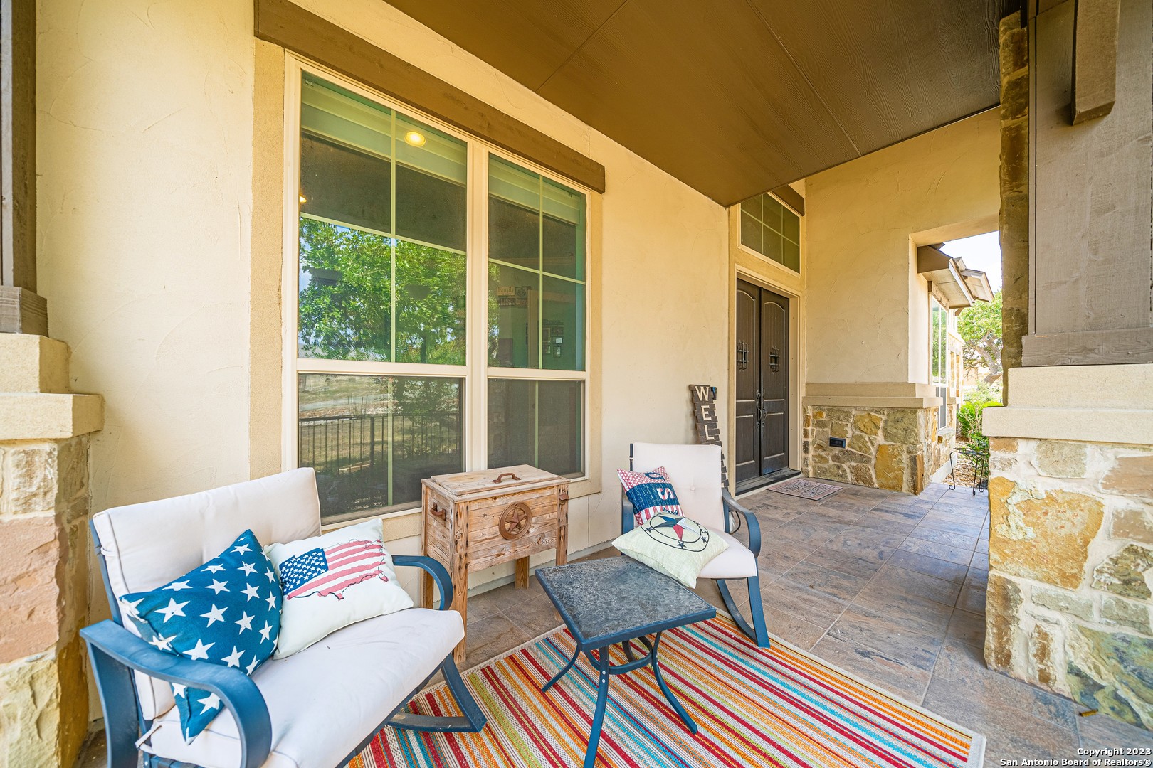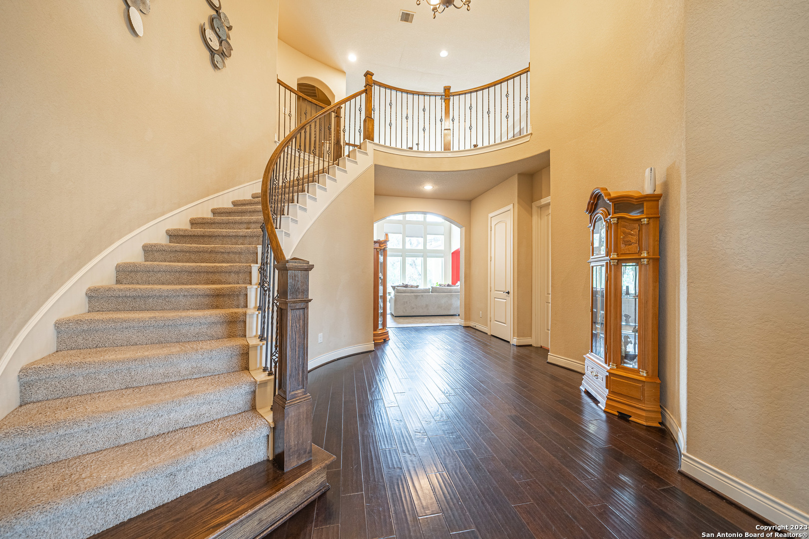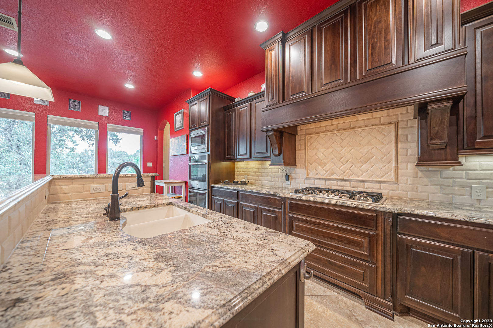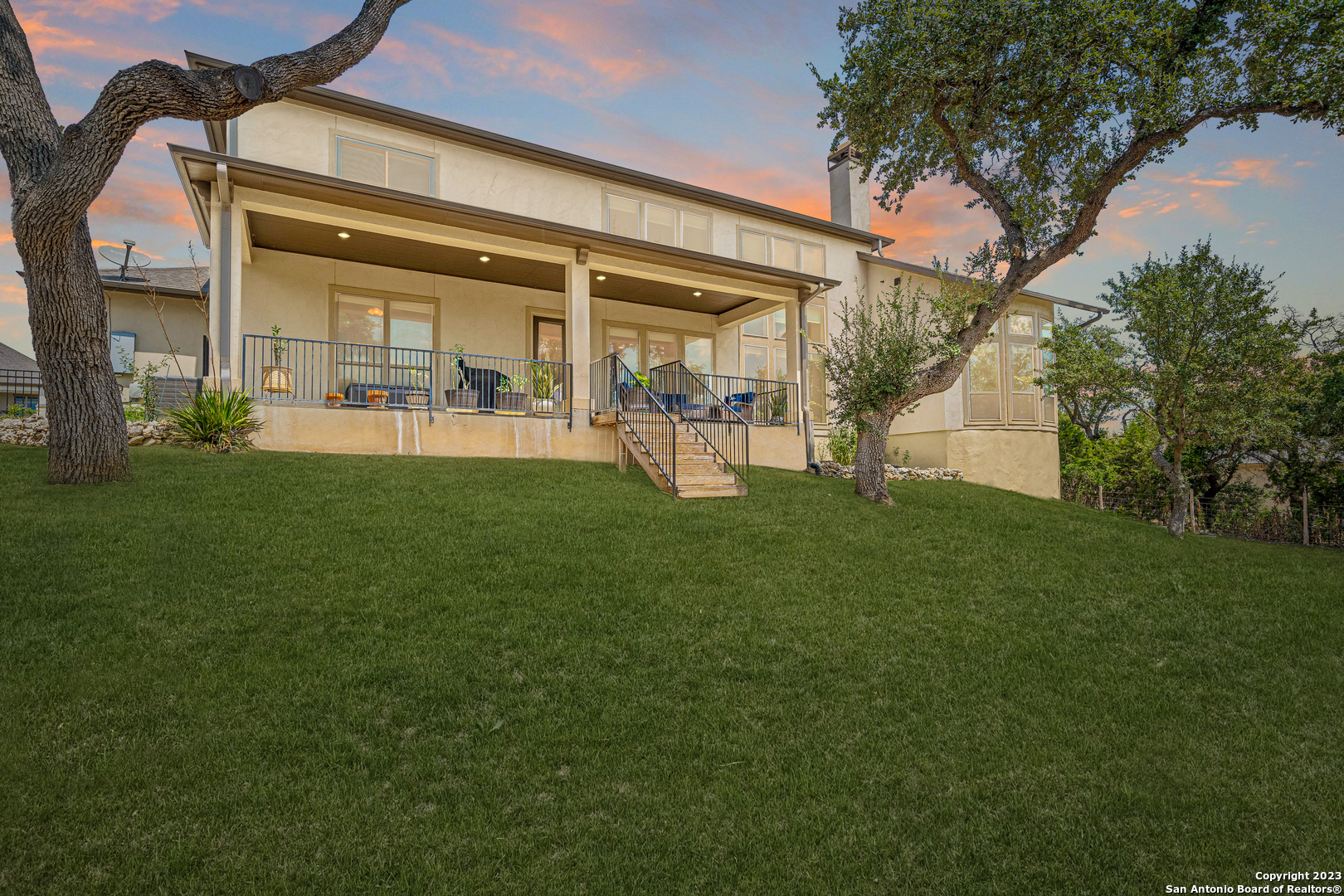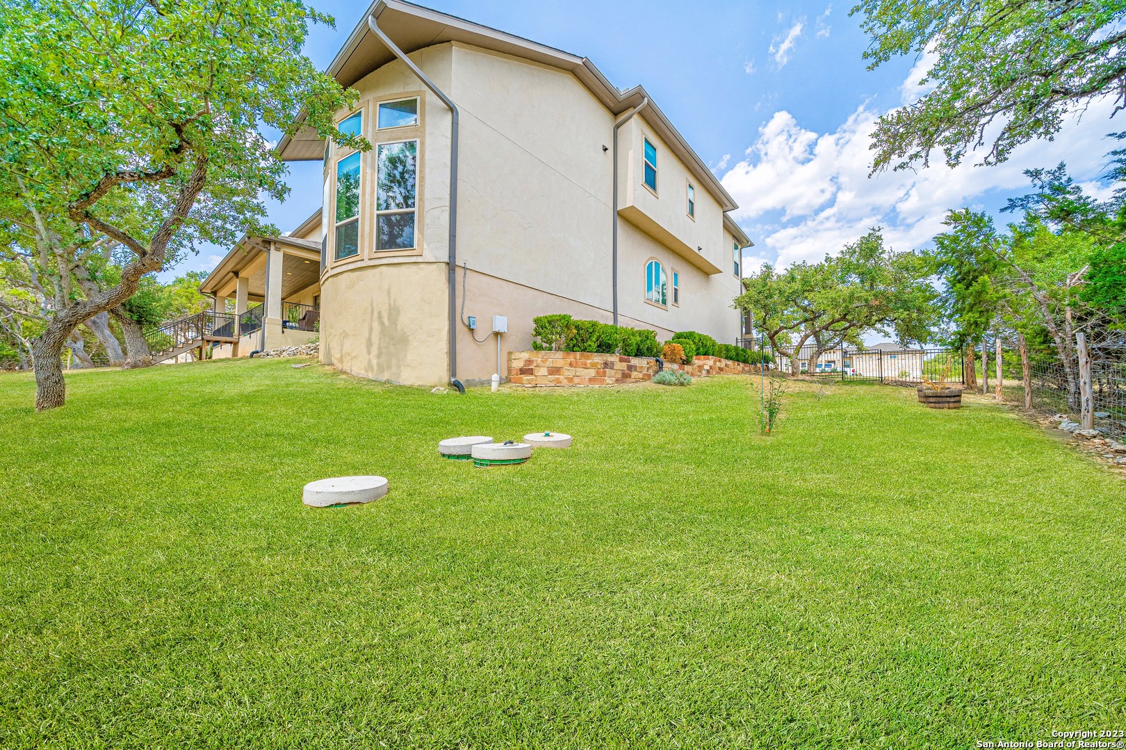 Why wait to build when you can own this meticulously maintained home sooner? Inviting & abundance are the cornerstones of this Gem nestled in the highly desirable community of Vintage Oaks! 1+ acres and Slightly shy of 5000 sqft, with 5 bedrooms and 4.5 baths & 4-Car Garage, there's plenty of space for your whole family to spread out & enjoy. As you enter the home, you'll be greeted by a Grand Mahogany front door and stunning hardwood floors. The Rotunda foyer & curved staircase w/ iron balusters add elegance while the study/library w/French doors and the formal dining room provide space for work & fine dining. The various arched entries throughout the home are intrinsic to the soaring ceilings, open floorplan, and exquisite features creating a spacious welcoming atmosphere. Whether for relaxation or socializing, the living room exudes a sense of refined aesthetics. The plethora of large windows allows an abundance of natural light to fill the space, highlighting the room's expansive & creative layout. The placement of the cast stone fireplace blends harmoniously, not only providing a functional purpose but also serving as a visually appealing centerpiece. The overall architectural design creates a balance between modern elegance and timeless charm. Not only is this home stunning, but it is also energy-efficient. With features such as a New Water heater, FreshAir Intake system, Techshield radiant barrier, Energy Star appliances, and a PEX plumbing system for water quality, you can enjoy a comfortable eco-friendly lifestyle and savings year-round! The stunning Owner's suite allows for a serene escape after a long day. Thoughtfully located on the first level, offers privacy & elegance w/ its sense of grandeur beveled ceilings & large bay windows, allowing for picturesque views of nature. The bedroom exudes a sense of tranquility w/ an enhanced atmosphere of comfort. Indulge in luxurious relaxation as you step into this spa-like oasis -where a gorgeous walk-in shower & the enchanting garden tub awaits beneath the gentle glow of natural light. The Guest suite also located on the first level offers convenience & privacy for your guests, providing the ultimate retreat experience. Entertain family & friends as this home also features a massive game room and a theater room, complete with a built-in state-of-the-art surround sound speaker system, elevated flooring, & ambient changing hue lighting. Bringing the unparalleled cinematic experience home & enjoying endless entertainment options! Ignite your culinary creativity in the bold & vibrant kitchen, where the warm embrace of crimson walls sets the stage for delicious creations & lively conversations. With granite countertops, a beautiful backsplash, rich cabinetry & stainless-steel appliances including a gas stove, it's a chef's dream! The refrigerator is a special order for a custom fit. 1 of the 2 refrigerators conveys! The Extraordinary arched entry, island w/ built-in seating space, and butler's pantry add to its opulence & beauty. Take in the beauty of nature & deer from the large extended covered patio which is perfect for enjoying a cup of coffee or engaging in conversations with/ loved ones. The lot boasts mature trees & includes planted lemon & lime trees, cherry blossom, fragrant lavender, and Fully Covered Gutters to help eliminate leaf cleaning. A spectacular Pool plan w/ extended decking & concrete is also available for review. Let your imagination soar as you picture yourself in this luxurious abode, enjoying all that the Historic Hill Country of New Braunfels has to offer. Located w/in a convenient commute to the neighboring cities of San Antonio & Austin, as well as the historic town of Gruene & Canyon Lake. The List goes on! Definitely a MUST SEE!! **A seller's Concession to assist with Closing costs, Interest Rate buy-downs, etc. may be available with an acceptable offer**