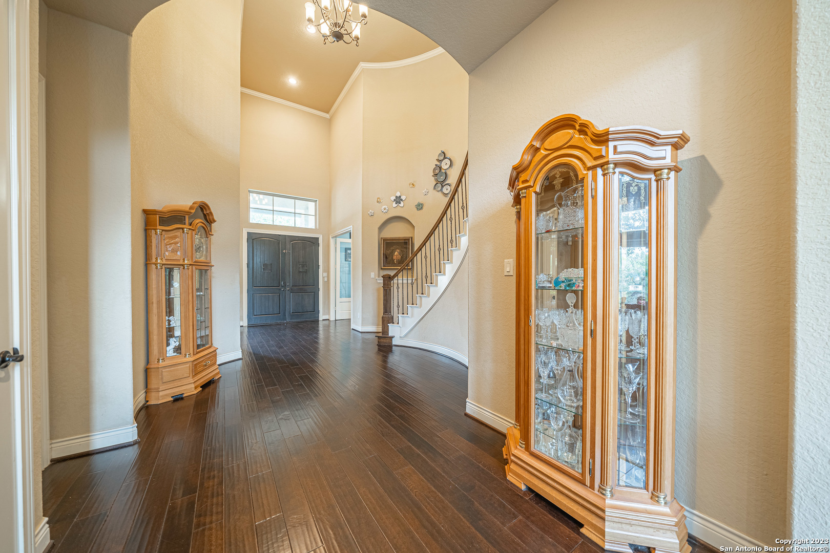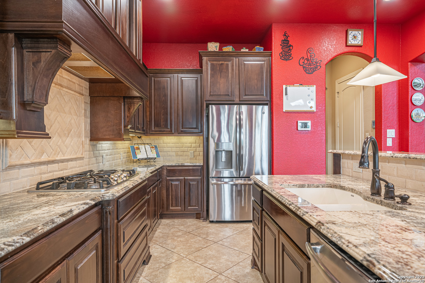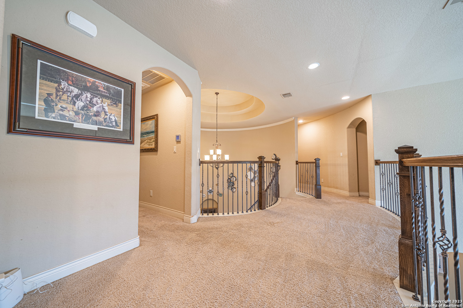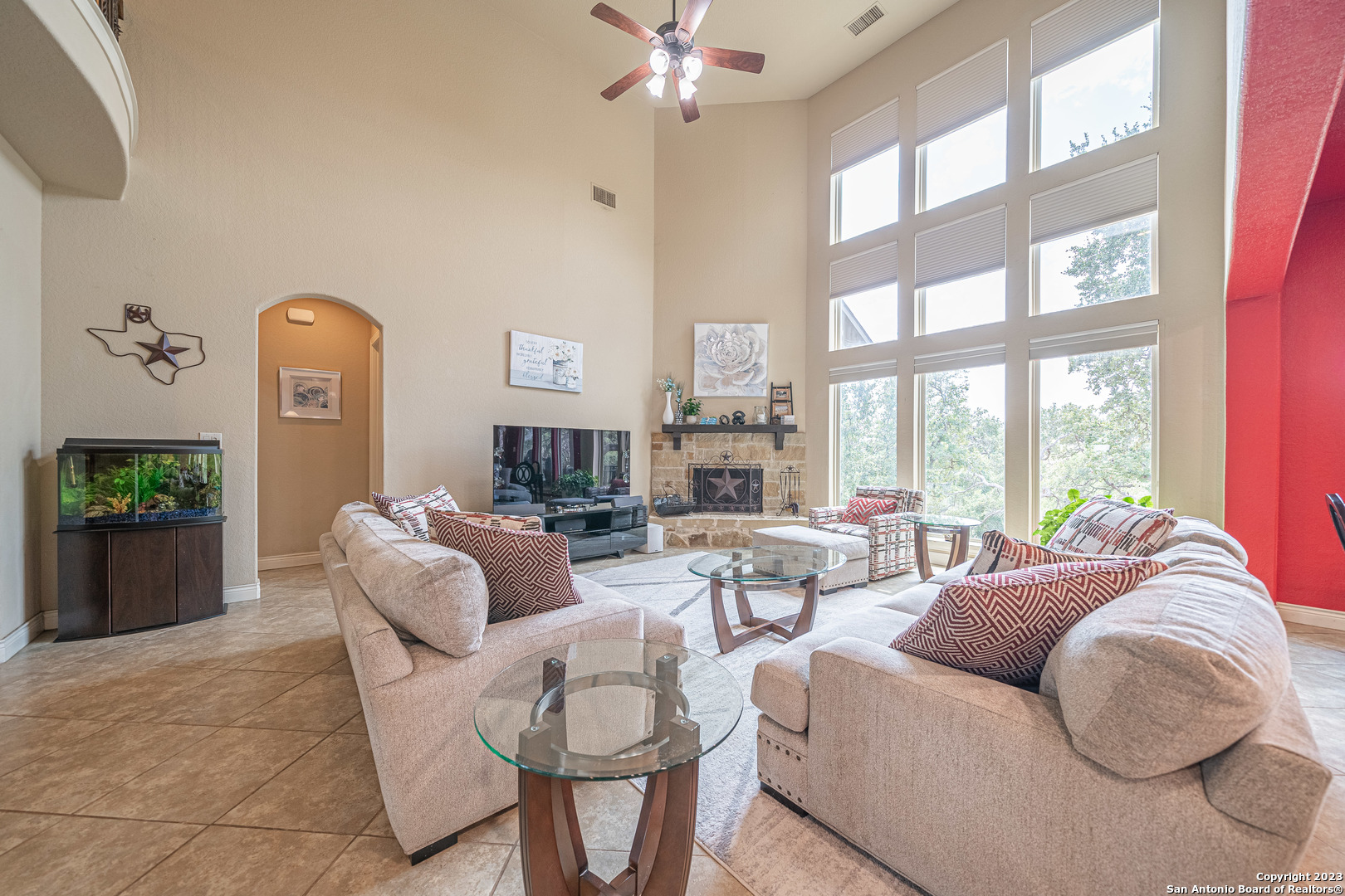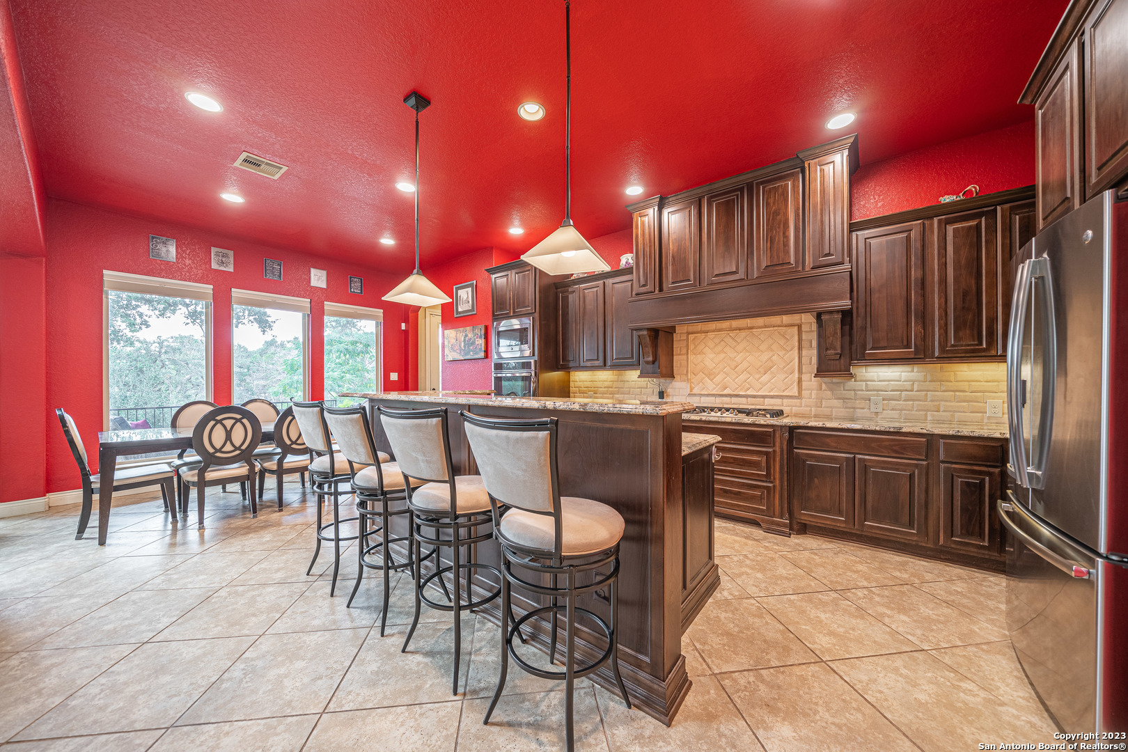 Why wait to build when you can own this meticulously maintained home sooner? Inviting & abundance are the cornerstones of this Gem nestled in the highly desirable community of Vintage Oaks! 1+ acres and Slightly shy of 5000 sqft, with 5 bedrooms and 4.5 baths & 4-Car Garage, there's plenty of space for your whole family to spread out & enjoy. As you enter the home, you'll be greeted by a Grand Mahogany front door and stunning hardwood floors. The Rotunda foyer & curved staircase w/ iron balusters add elegance while the study/library w/French doors and the formal dining room provide space for work & fine dining. The various arched entries throughout the home are intrinsic to the soaring ceilings, open floorplan, and exquisite features creating a spacious welcoming atmosphere. Whether for relaxation or socializing, the living room exudes a sense of refined aesthetics. The plethora of large windows allows an abundance of natural light to fill the space, highlighting the room's expansive & creative layout. The placement of the cast stone fireplace blends harmoniously, not only providing a functional purpose but also serving as a visually appealing centerpiece. The overall architectural design creates a balance between modern elegance and timeless charm. Not only is this home stunning, but it is also energy-efficient. With features such as a New Water heater, FreshAir Intake system, Techshield radiant barrier, Energy Star appliances, and a PEX plumbing system for water quality, you can enjoy a comfortable eco-friendly lifestyle and savings year-round! The stunning Owner's suite allows for a serene escape after a long day. Thoughtfully located on the first level, offers privacy & elegance w/ its sense of grandeur beveled ceilings & large bay windows, allowing for picturesque views of nature. The bedroom exudes a sense of tranquility w/ an enhanced atmosphere of comfort. Indulge in luxurious relaxation as you step into this spa-like oasis -where a gorgeous walk-in shower & the enchanting garden tub awaits beneath the gentle glow of natural light. The Guest suite also located on the first level offers convenience & privacy for your guests, providing the ultimate retreat experience. Entertain family & friends as this home also features a massive game room and a theater room, complete with a built-in state-of-the-art surround sound speaker system, elevated flooring, & ambient changing hue lighting. Bringing the unparalleled cinematic experience home & enjoying endless entertainment options! Ignite your culinary creativity in the bold & vibrant kitchen, where the warm embrace of crimson walls sets the stage for delicious creations & lively conversations. With granite countertops, a beautiful backsplash, rich cabinetry & stainless-steel appliances including a gas stove, it's a chef's dream! The refrigerator is a special order for a custom fit. 1 of the 2 refrigerators conveys! The Extraordinary arched entry, island w/ built-in seating space, and butler's pantry add to its opulence & beauty. Take in the beauty of nature & deer from the large extended covered patio which is perfect for enjoying a cup of coffee or engaging in conversations with/ loved ones. The lot boasts mature trees & includes planted lemon & lime trees, cherry blossom, fragrant lavender, and Fully Covered Gutters to help eliminate leaf cleaning. A spectacular Pool plan w/ extended decking & concrete is also available for review. Let your imagination soar as you picture yourself in this luxurious abode, enjoying all that the Historic Hill Country of New Braunfels has to offer. Located w/in a convenient commute to the neighboring cities of San Antonio & Austin, as well as the historic town of Gruene & Canyon Lake. The List goes on! Definitely a MUST SEE!! **A seller's Concession to assist with Closing costs, Interest Rate buy-downs, etc. may be available with an acceptable offer**