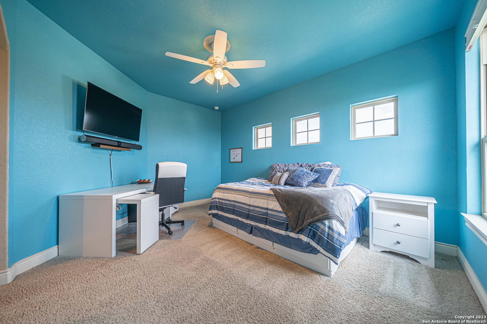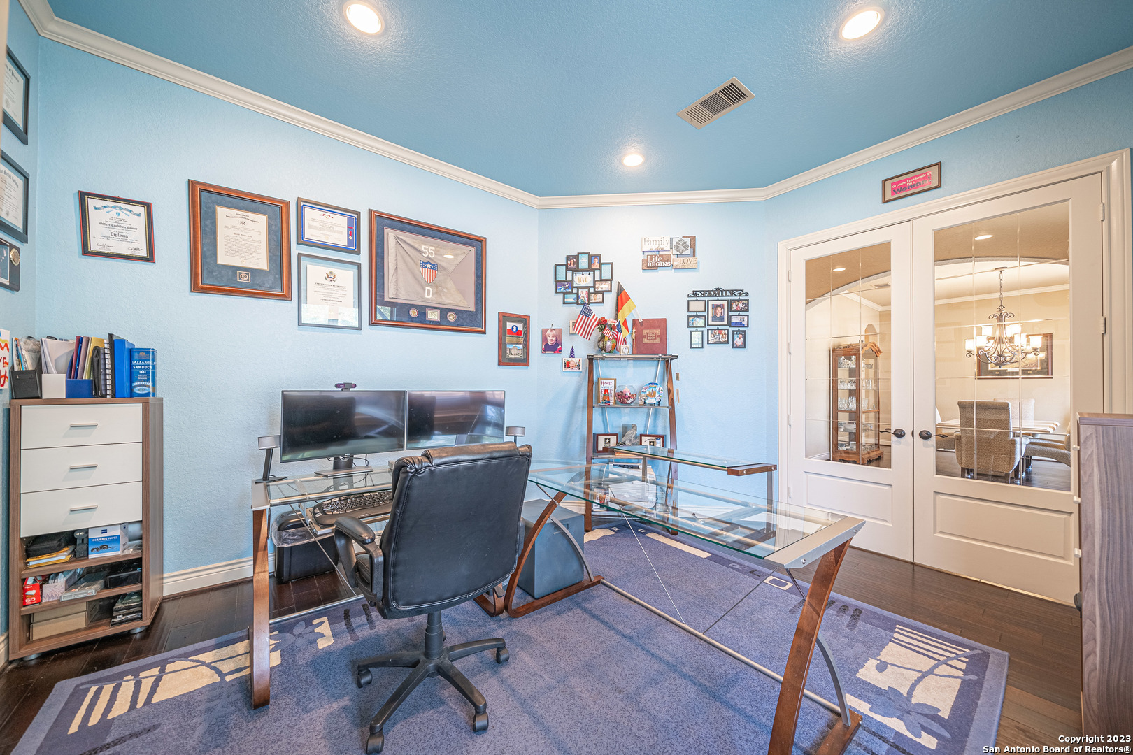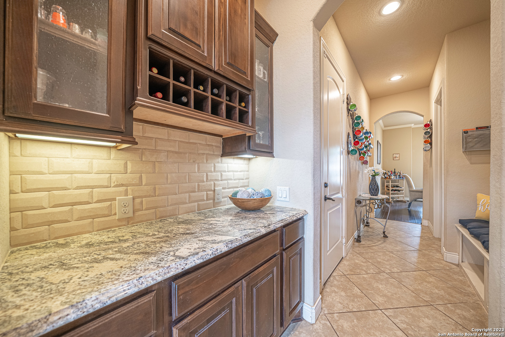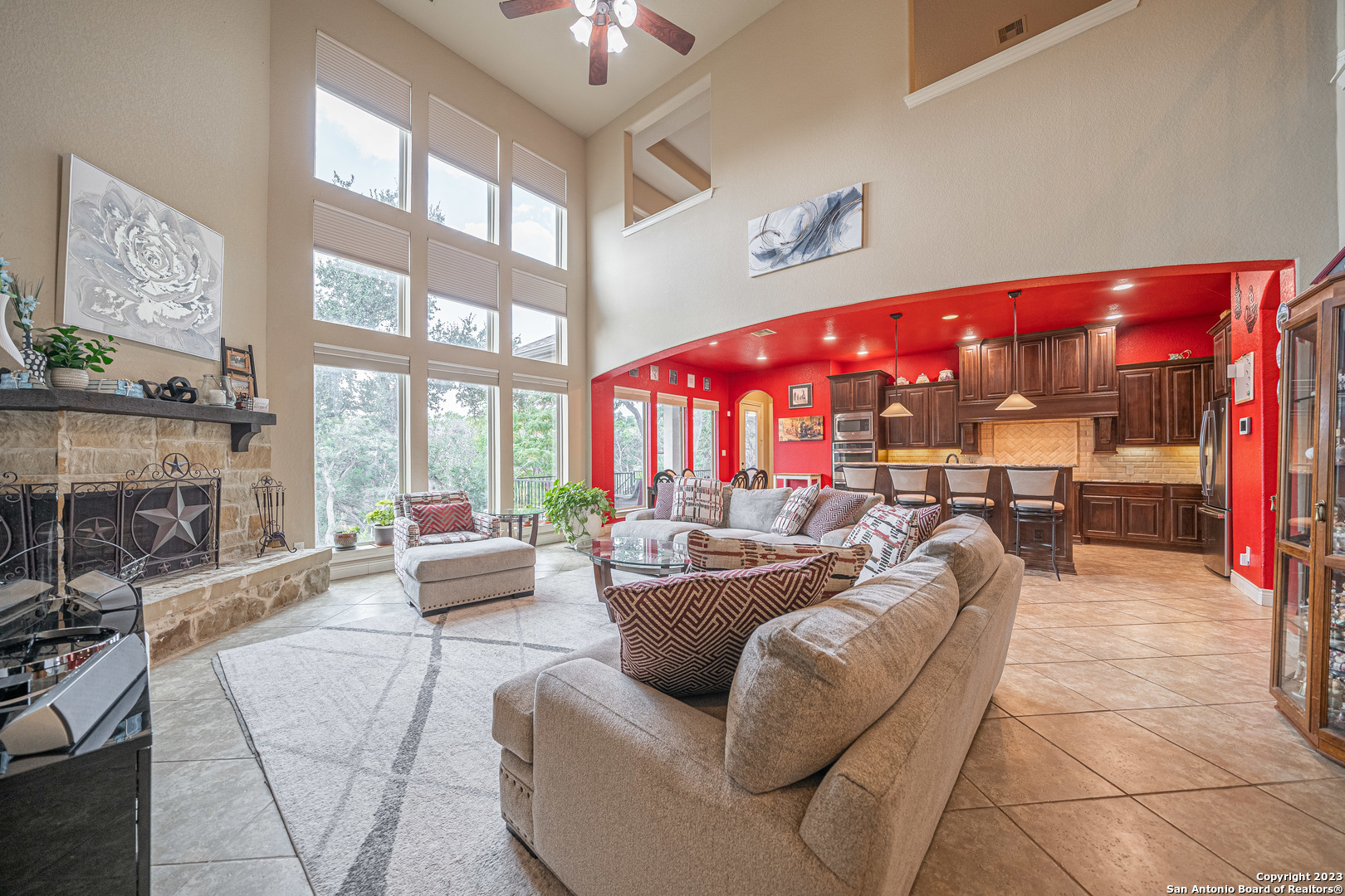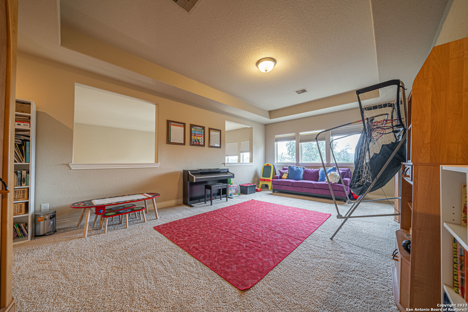 Why wait to build when you can own this meticulously maintained home sooner? Inviting & abundance are the cornerstones of this Gem nestled in the highly desirable community of Vintage Oaks! 1+ acres and Slightly shy of 5000 sqft, with 5 bedrooms and 4.5 baths & 4-Car Garage, there's plenty of space for your whole family to spread out & enjoy. As you enter the home, you'll be greeted by a Grand Mahogany front door and stunning hardwood floors. The Rotunda foyer & curved staircase w/ iron balusters add elegance while the study/library w/French doors and the formal dining room provide space for work & fine dining. The various arched entries throughout the home are intrinsic to the soaring ceilings, open floorplan, and exquisite features creating a spacious welcoming atmosphere. Whether for relaxation or socializing, the living room exudes a sense of refined aesthetics. The plethora of large windows allows an abundance of natural light to fill the space, highlighting the room's expansive & creative layout. The placement of the cast stone fireplace blends harmoniously, not only providing a functional purpose but also serving as a visually appealing centerpiece. The overall architectural design creates a balance between modern elegance and timeless charm. Not only is this home stunning, but it is also energy-efficient. With features such as a New Water heater, FreshAir Intake system, Techshield radiant barrier, Energy Star appliances, and a PEX plumbing system for water quality, you can enjoy a comfortable eco-friendly lifestyle and savings year-round! The stunning Owner's suite allows for a serene escape after a long day. Thoughtfully located on the first level, offers privacy & elegance w/ its sense of grandeur beveled ceilings & large bay windows, allowing for picturesque views of nature. The bedroom exudes a sense of tranquility w/ an enhanced atmosphere of comfort. Indulge in luxurious relaxation as you step into this spa-like oasis -where a gorgeous walk-in shower & the enchanting garden tub awaits beneath the gentle glow of natural light. The Guest suite also located on the first level offers convenience & privacy for your guests, providing the ultimate retreat experience. Entertain family & friends as this home also features a massive game room and a theater room, complete with a built-in state-of-the-art surround sound speaker system, elevated flooring, & ambient changing hue lighting. Bringing the unparalleled cinematic experience home & enjoying endless entertainment options! Ignite your culinary creativity in the bold & vibrant kitchen, where the warm embrace of crimson walls sets the stage for delicious creations & lively conversations. With granite countertops, a beautiful backsplash, rich cabinetry & stainless-steel appliances including a gas stove, it's a chef's dream! The refrigerator is a special order for a custom fit. 1 of the 2 refrigerators conveys! The Extraordinary arched entry, island w/ built-in seating space, and butler's pantry add to its opulence & beauty. Take in the beauty of nature & deer from the large extended covered patio which is perfect for enjoying a cup of coffee or engaging in conversations with/ loved ones. The lot boasts mature trees & includes planted lemon & lime trees, cherry blossom, fragrant lavender, and Fully Covered Gutters to help eliminate leaf cleaning. A spectacular Pool plan w/ extended decking & concrete is also available for review. Let your imagination soar as you picture yourself in this luxurious abode, enjoying all that the Historic Hill Country of New Braunfels has to offer. Located w/in a convenient commute to the neighboring cities of San Antonio & Austin, as well as the historic town of Gruene & Canyon Lake. The List goes on! Definitely a MUST SEE!! **A seller's Concession to assist with Closing costs, Interest Rate buy-downs, etc. may be available with an acceptable offer**