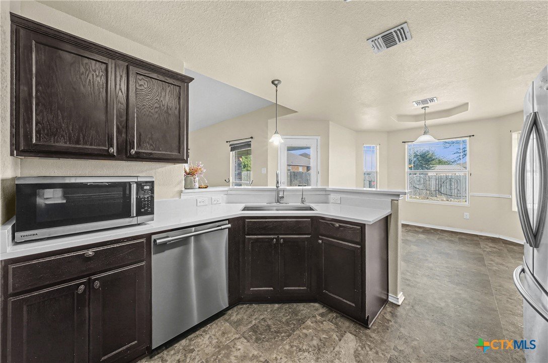 Picture coming home to a space that feels both comfortable and easy to live in. This warm and welcoming 4-bedroom, 2-bath home offers a layout that just makes sense, with a private primary suite tucked away from the secondary bedrooms, perfect for quiet evenings and a little extra breathing room. The kitchen is a natural gathering place, featuring quartz countertops, stainless steel appliances, a new sink, and an updated look that blends style with everyday functionality. New flooring throughout most of the home gives it a fresh, clean feel and ties each space together beautifully. Out back, enjoy a larger backyard with a covered patio, ideal for slow mornings, relaxed evenings, and weekend get-togethers. Whether you’re hosting friends or simply enjoying the outdoors, this space invites you to linger. With quick access to Loop 121, I-35, and I-14, getting where you need to go is simple and efficient, and you’re just minutes from the Cadence Bank Center, dining, and entertainment. And with no HOA, you’ll appreciate the freedom to truly settle in and make this home your own.