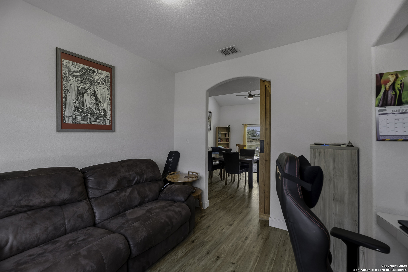 Come explore Hidden Ranch where country privacy meets modern comfort! Tucked away on a quiet cul-de-sac, this one-acre country retreat offers peaceful seclusion and scenic rural views while delivering the class and function of a modern home. Built in 2021, the 2,088 square foot residence blends country charm with thoughtful design and contemporary comfort. The flexible floor plan features four bedrooms and two-and-a-half baths, or alternatively three bedrooms with a dedicated office, study, nursery, playroom, or den to suit your lifestyle. An open-concept layout with vaulted ceilings creates a spacious, airy feel-ideal for everyday living and entertaining, while the durable vinyl and laminate flooring throughout the home ensure both style and low-maintenance care. The entire garage has been fully insulated and equipped with a mini-split system providing year-round comfort and has been thoughtfully reconfigured to include an enclosed office space while still allowing for a single parking space. Step outside to enjoy the tranquil setting from the outdoor gazebo, perfect for daily relaxing or hosting gatherings. Take advantage of the included John Deere S110 lawn tractor, making care and upkeep of the yard both efficient and convenient. If you're seeking privacy and space in a serene rural setting without sacrificing modern conveniences, 105 Hidden Haven is an exceptional opportunity!