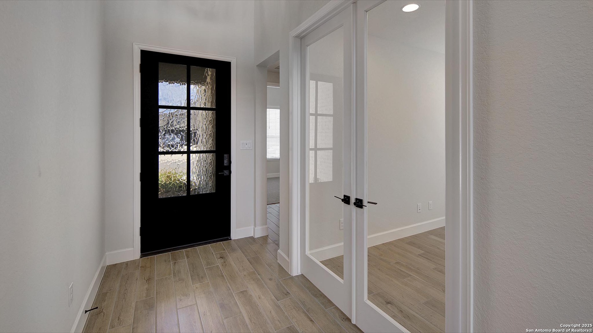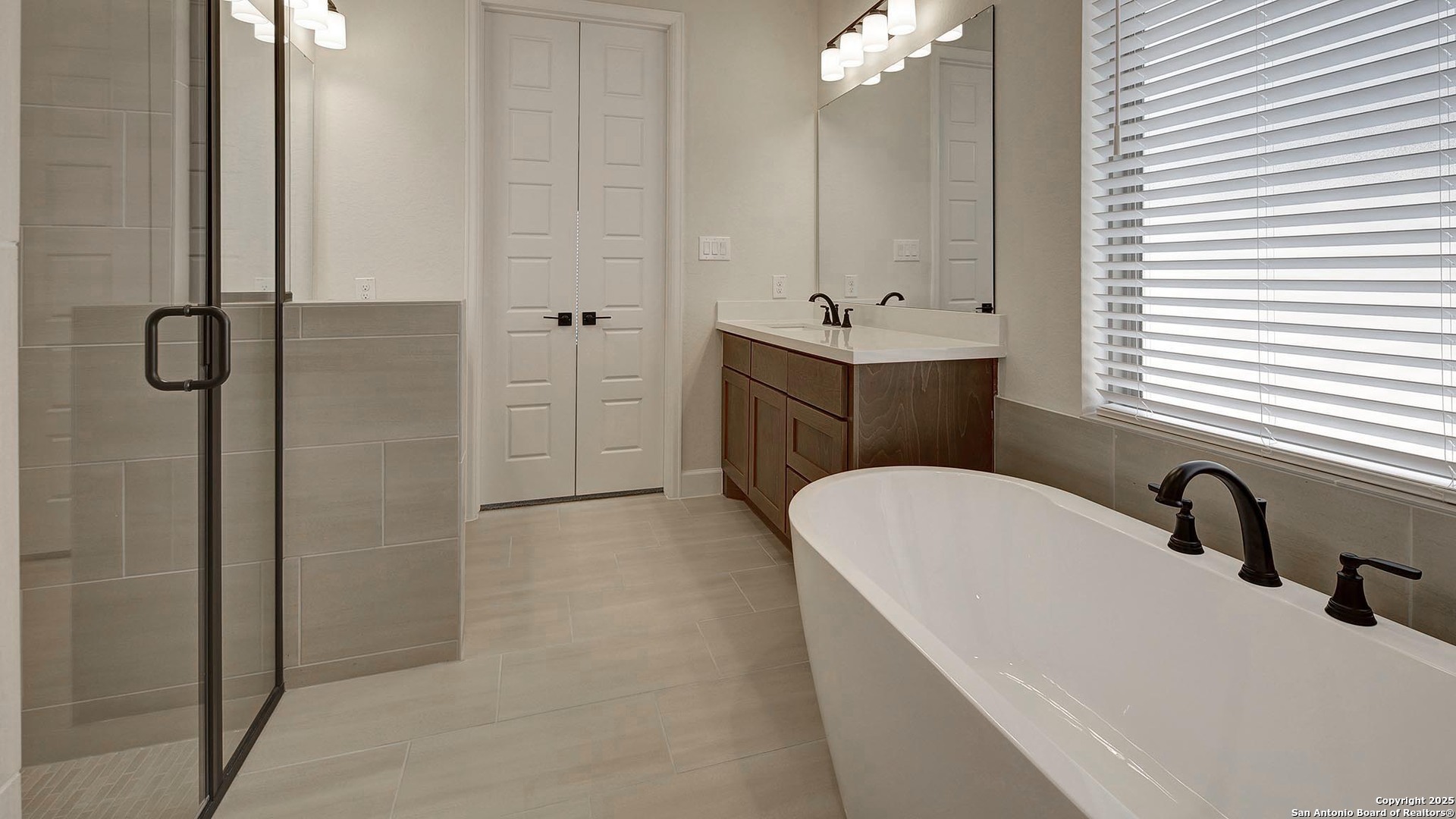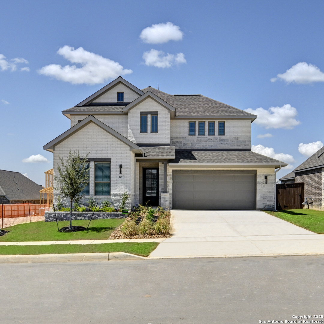 READY FOR MOVE-IN! Home office with French doors set at two-story entry. Two-story family room with a wood mantel fireplace and wall of windows opens to kitchen and dining area. Kitchen hosts inviting island with built-in seating space and 5-burner gas cooktop. First-floor primary suite includes dual vanities, freestanding tub, separate glass-enclosed shower and large walk-in closet in primary bath. A second bedroom is downstairs. Two secondary bedrooms and a game room are upstairs. Extended covered backyard patio. Two-car garage.