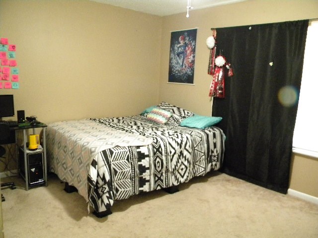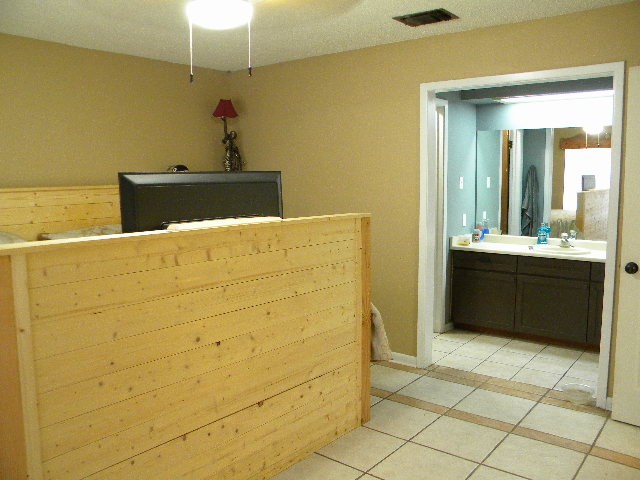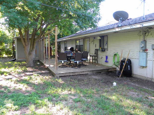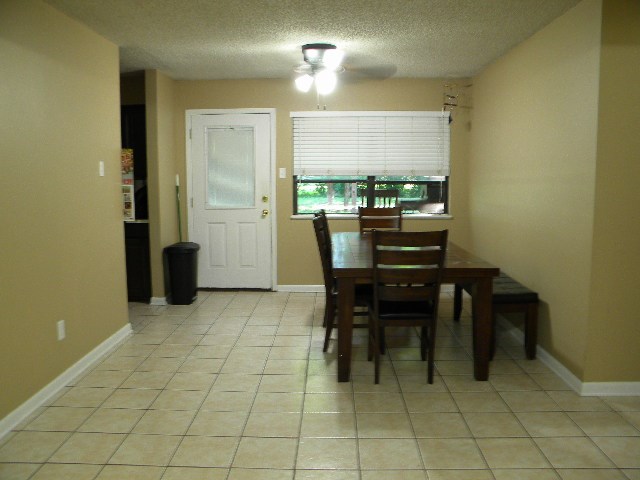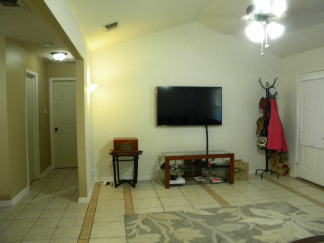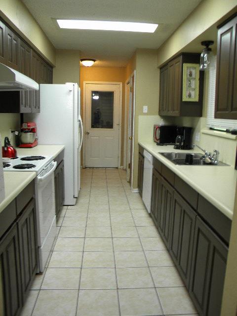 Nice 3/2 Home with High ceilings in living room with split floor plan of bedrooms and Double Galley Kitchen. Tile throughout the living,kitchen and master with carpet in guest bedrooms. Large fenced back yard with Patio and multiple storage sheds. Refrigerator, Dishwasher, and stove will convey.