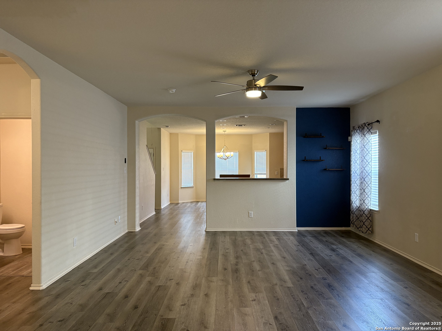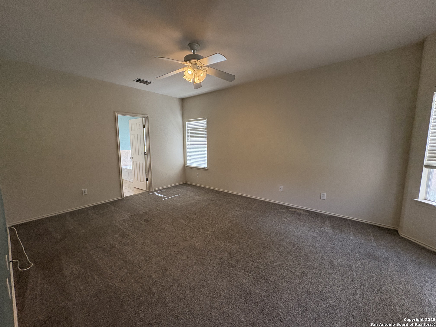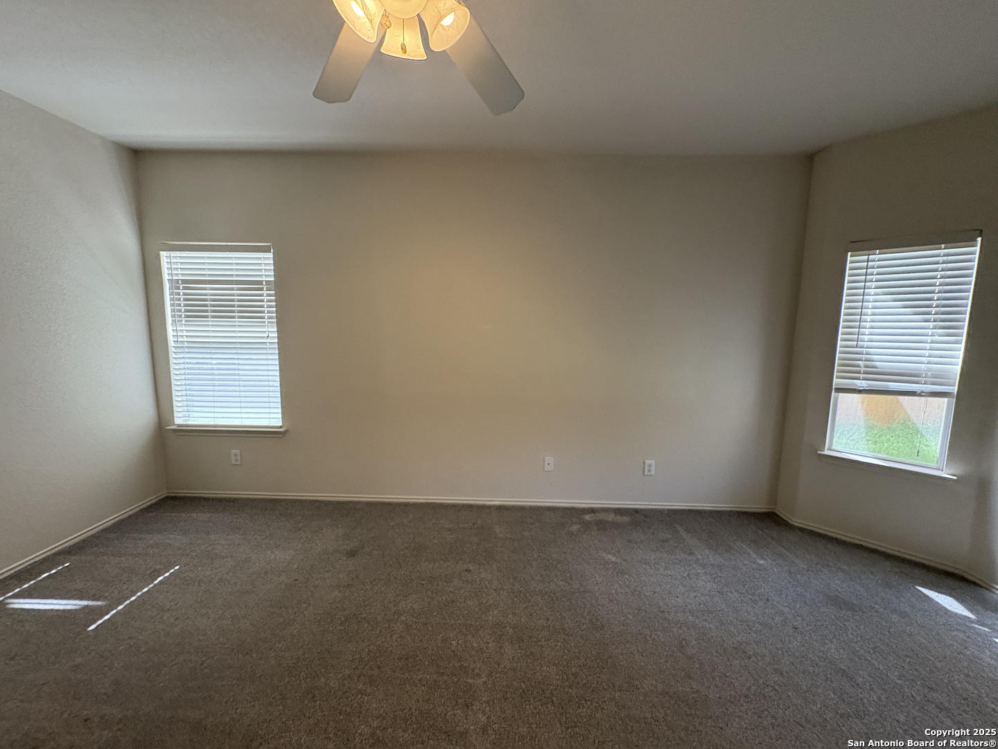 Welcome to this stunning 5-bedroom, 2.5-bathroom home located in the desirable town of Cibolo, TX. This spacious two-story house features a multitude of amenities, including ceiling fans, washer and dryer connections, a dishwasher, a garage door opener, a chandelier, a microwave oven, a refrigerator, and more. The open floorplan boasts dual primary bathroom vanities, large walk-in closets, an island kitchen, and tile throughout. Enjoy the convenience of two living areas, two eating areas, and a huge oversized laundry room. The primary bedroom is located downstairs and includes a garden bathtub. With new plush carpeting, faux wood blinds, and a large, spacious backyard, this home is perfect for entertaining or relaxing. Located in Town Creek Village and near shopping, entertainment, schools, and the newly built H-E-B, this home is a must-see!