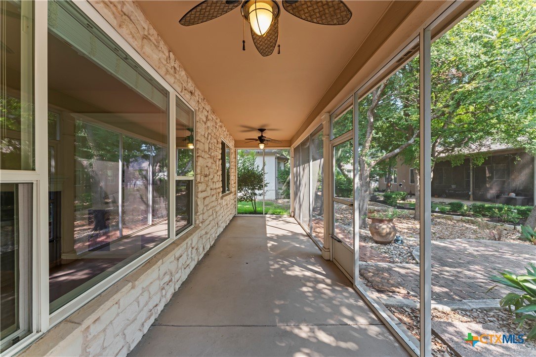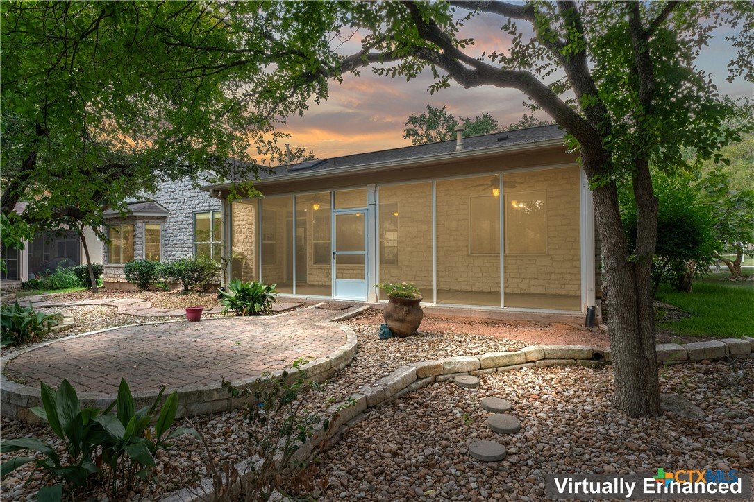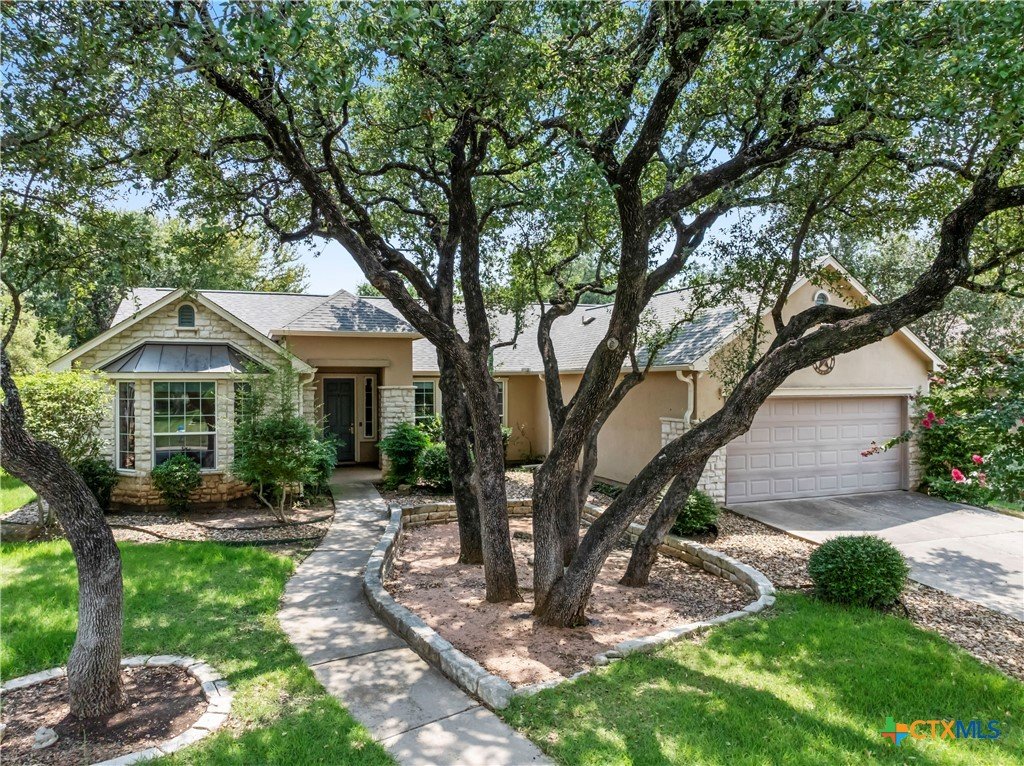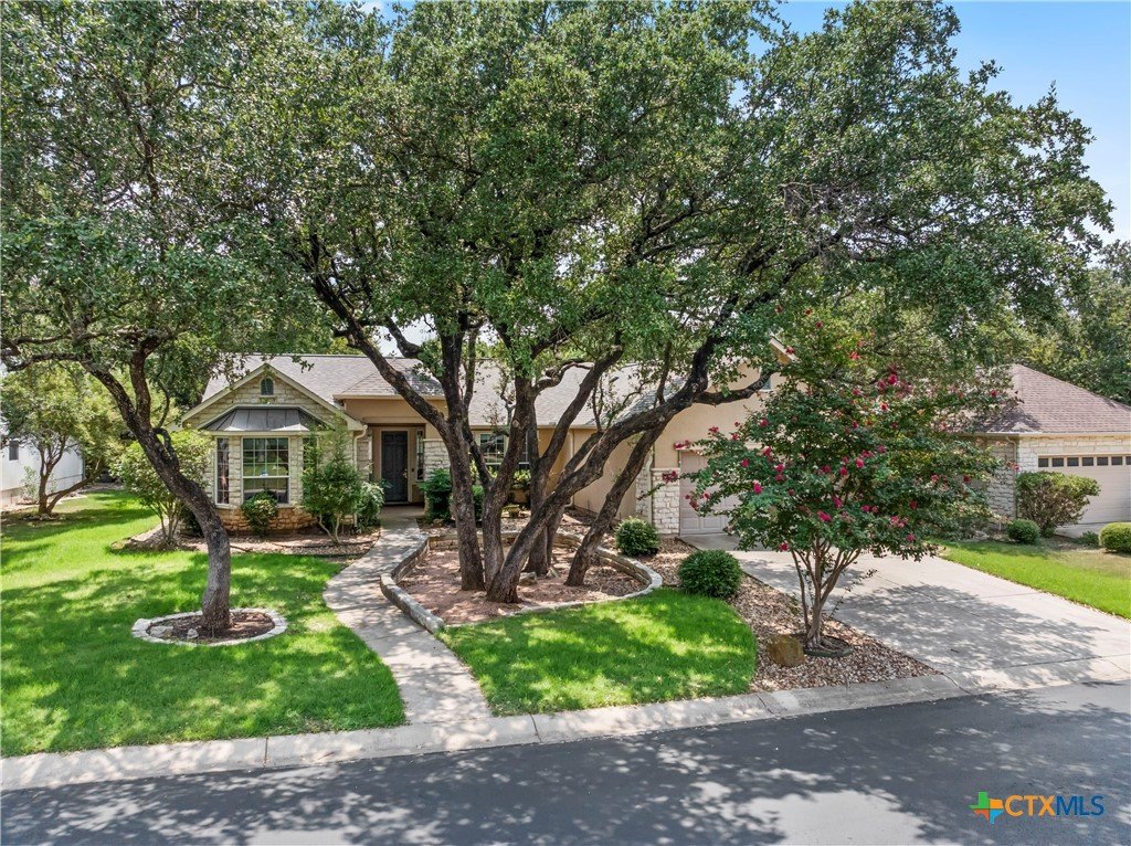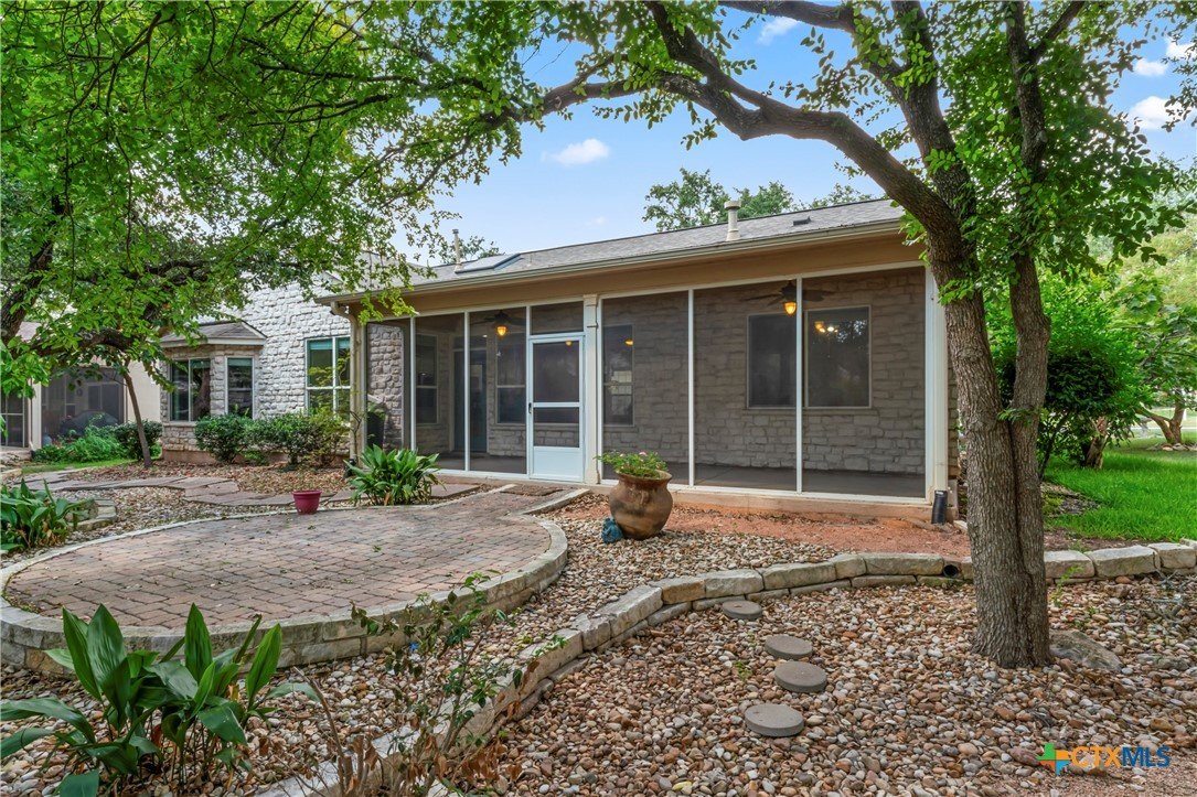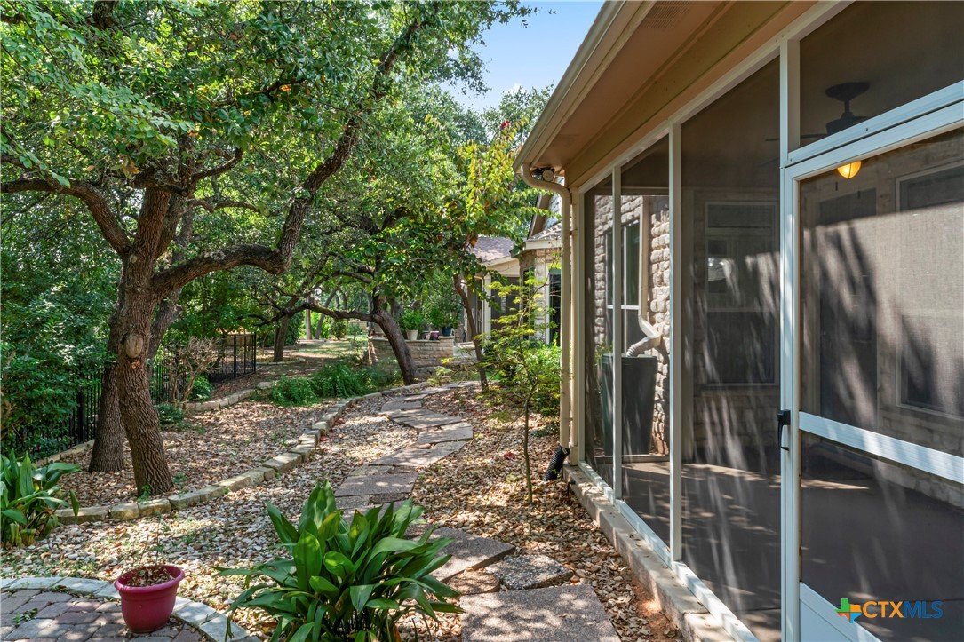 Tucked away on a peaceful street in Sun City, Texas, nestled among gorgeous oaks, your beautiful new home awaits. Featuring numerous upgrades including custom built-in cabinets, privacy blinds, built-in appliances, updated light fixtures and granite countertops. The home boasts relaxation. Make sure to check out its large screened in patio that opens out to the enchanting backyard, shaded by numerous trees. The backyard's low maintenance rock courtyard and zeroscape aesthetic are just one of the home's many added conveniences! The ample storage and Bowie floor plan make this home incredibly functional. Schedule a private showing today!