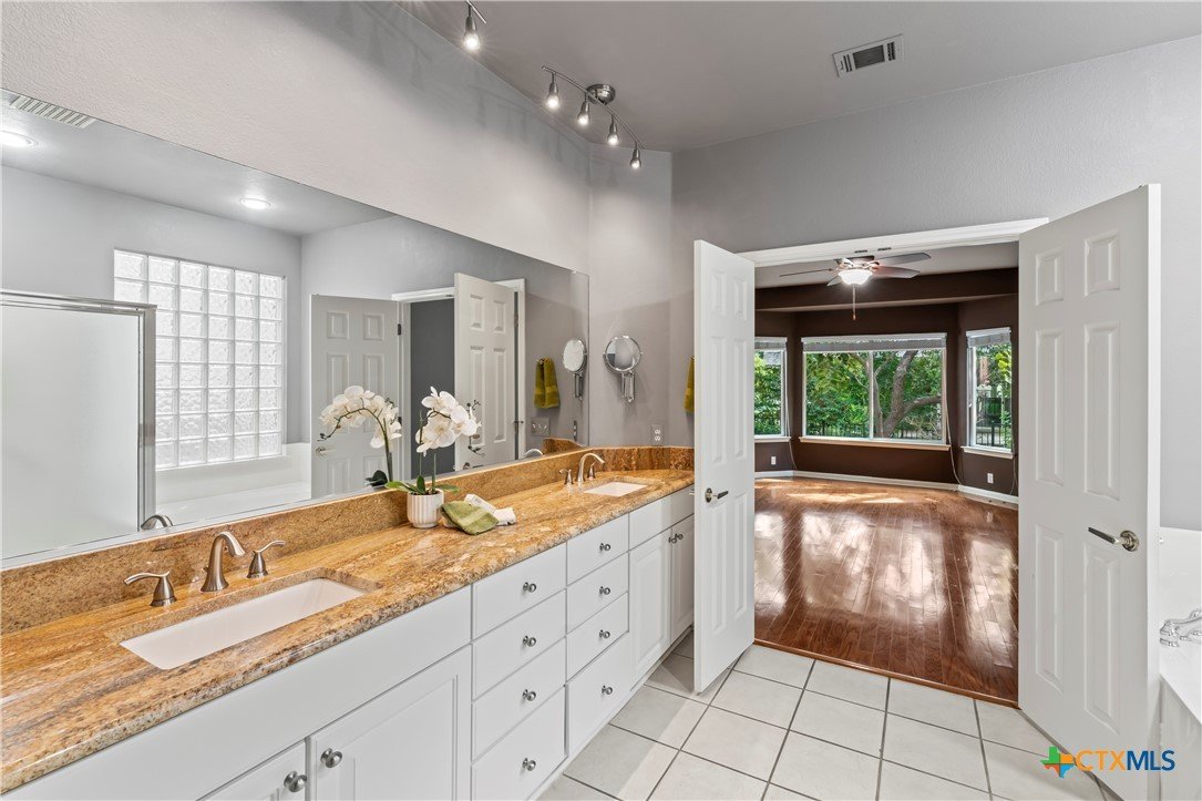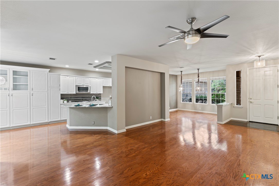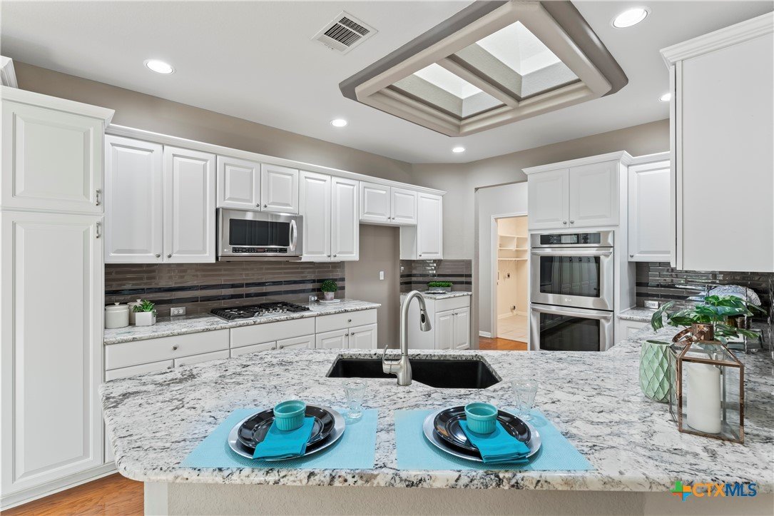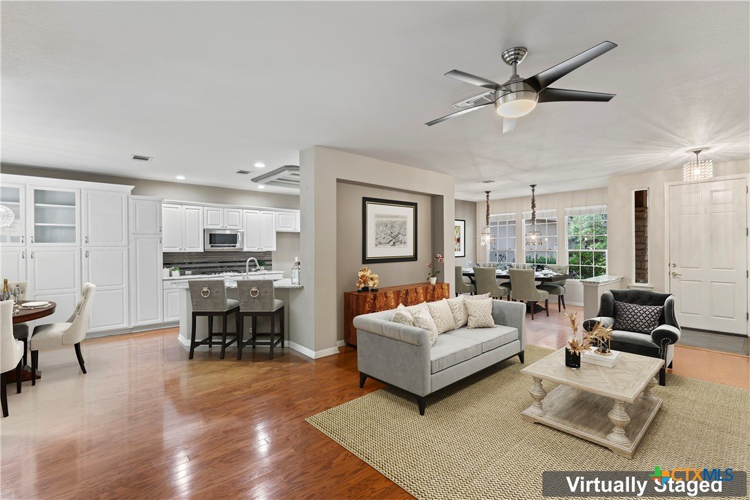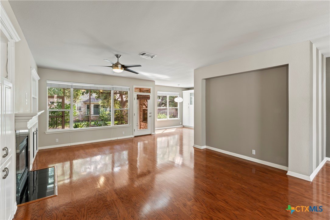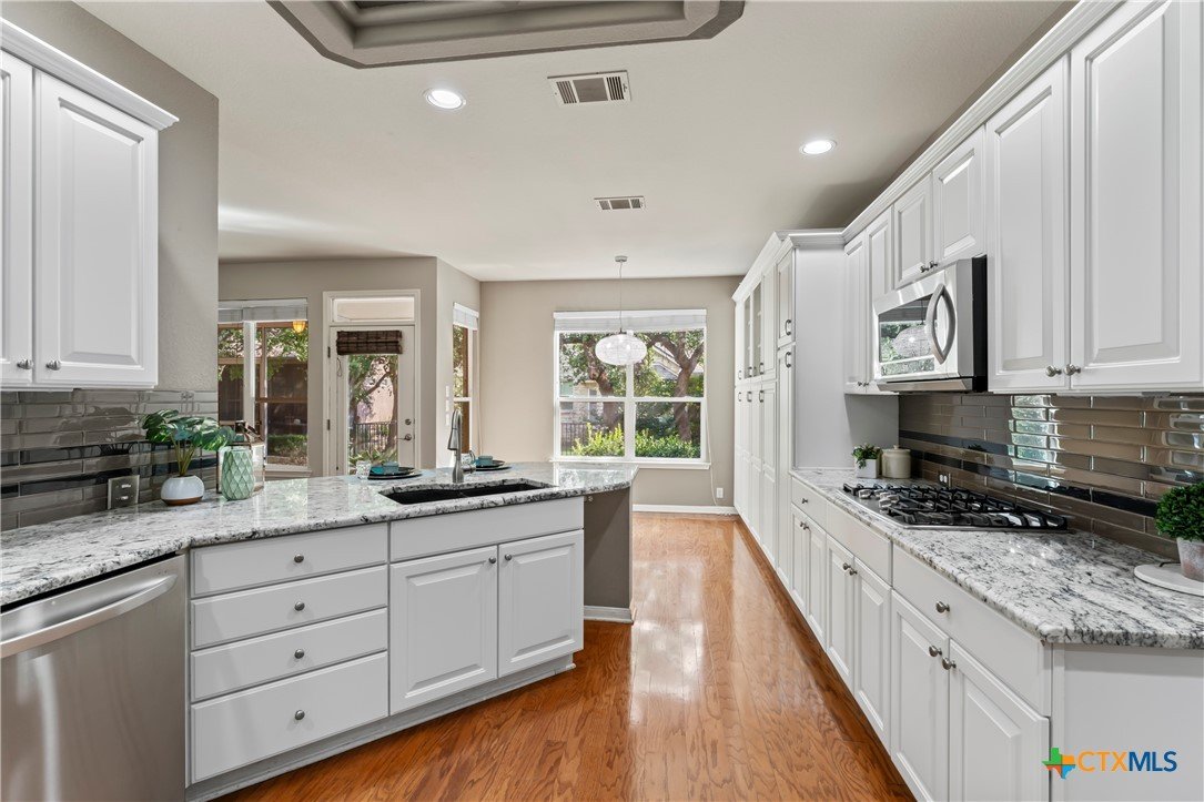 Tucked away on a peaceful street in Sun City, Texas, nestled among gorgeous oaks, your beautiful new home awaits. Featuring numerous upgrades including custom built-in cabinets, privacy blinds, built-in appliances, updated light fixtures and granite countertops. The home boasts relaxation. Make sure to check out its large screened in patio that opens out to the enchanting backyard, shaded by numerous trees. The backyard's low maintenance rock courtyard and zeroscape aesthetic are just one of the home's many added conveniences! The ample storage and Bowie floor plan make this home incredibly functional. Schedule a private showing today!